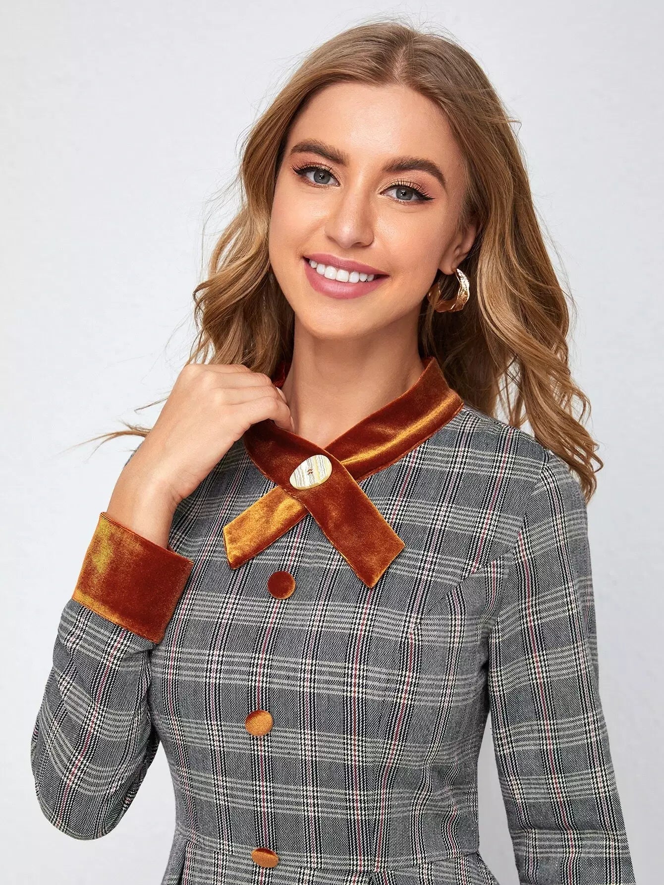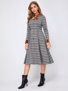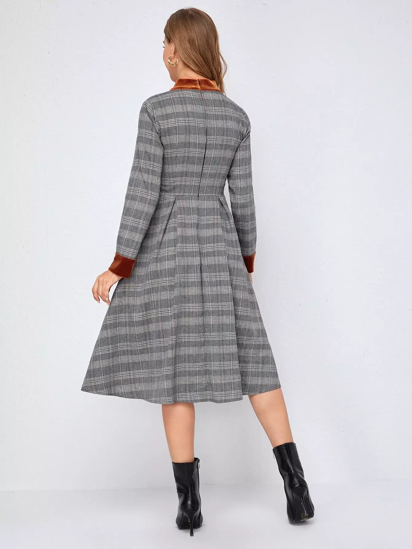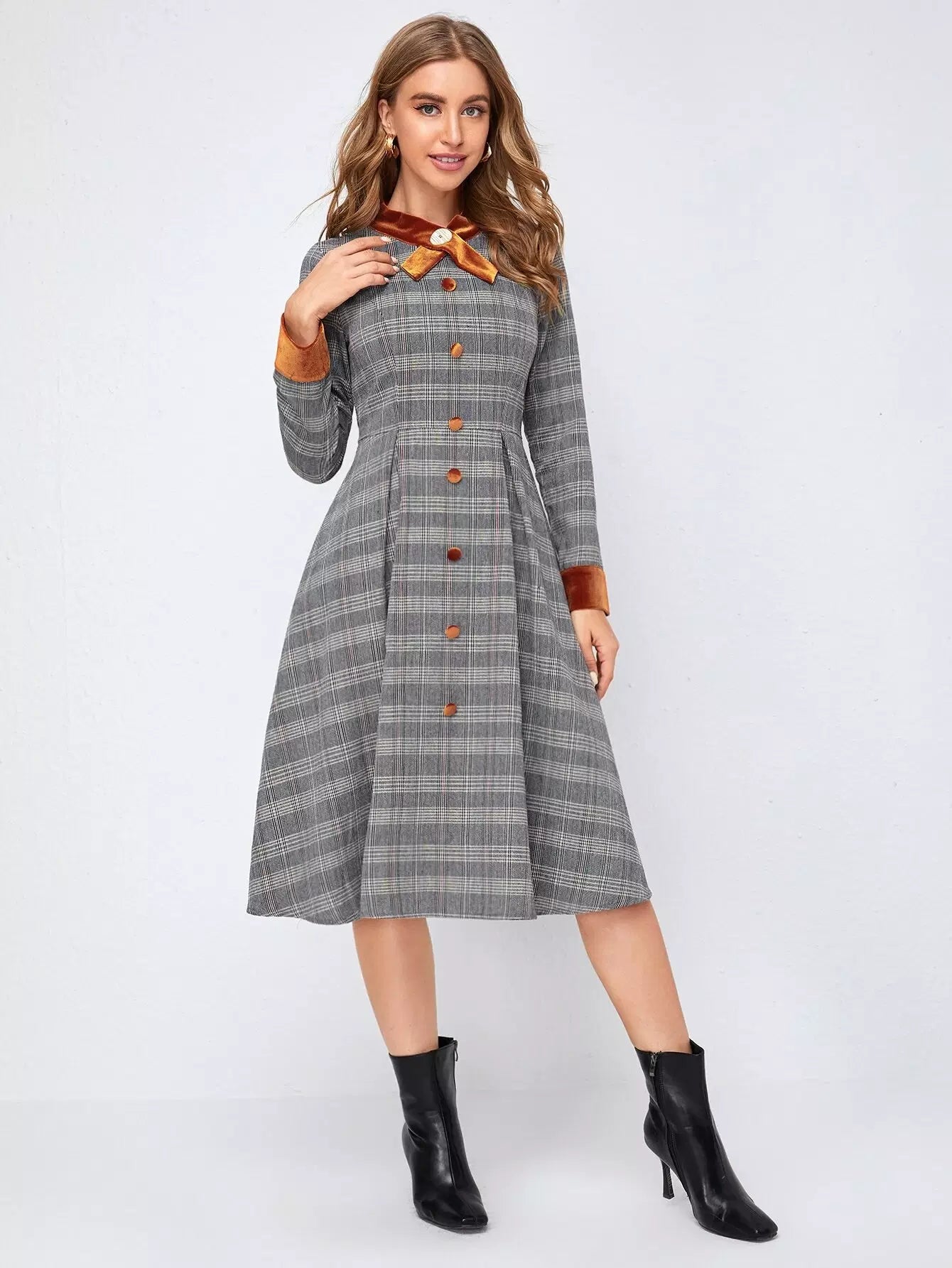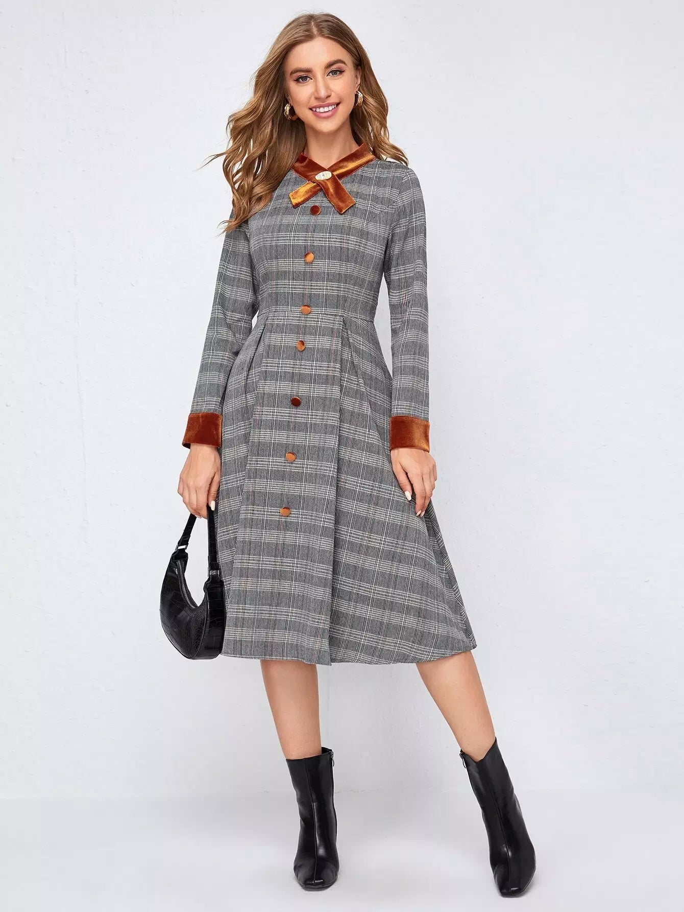 فستان منقوش بطيات أمامية مطوي بأزرار أمامية