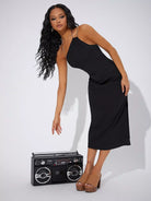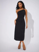 فستان مزين بسلسلة بتفاصيل سادة ذات رسن