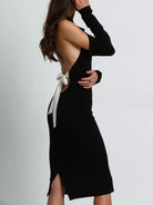 فستان بفتحة رباط على شكل عقدة بلون مغاير بدون ربطة ظهر