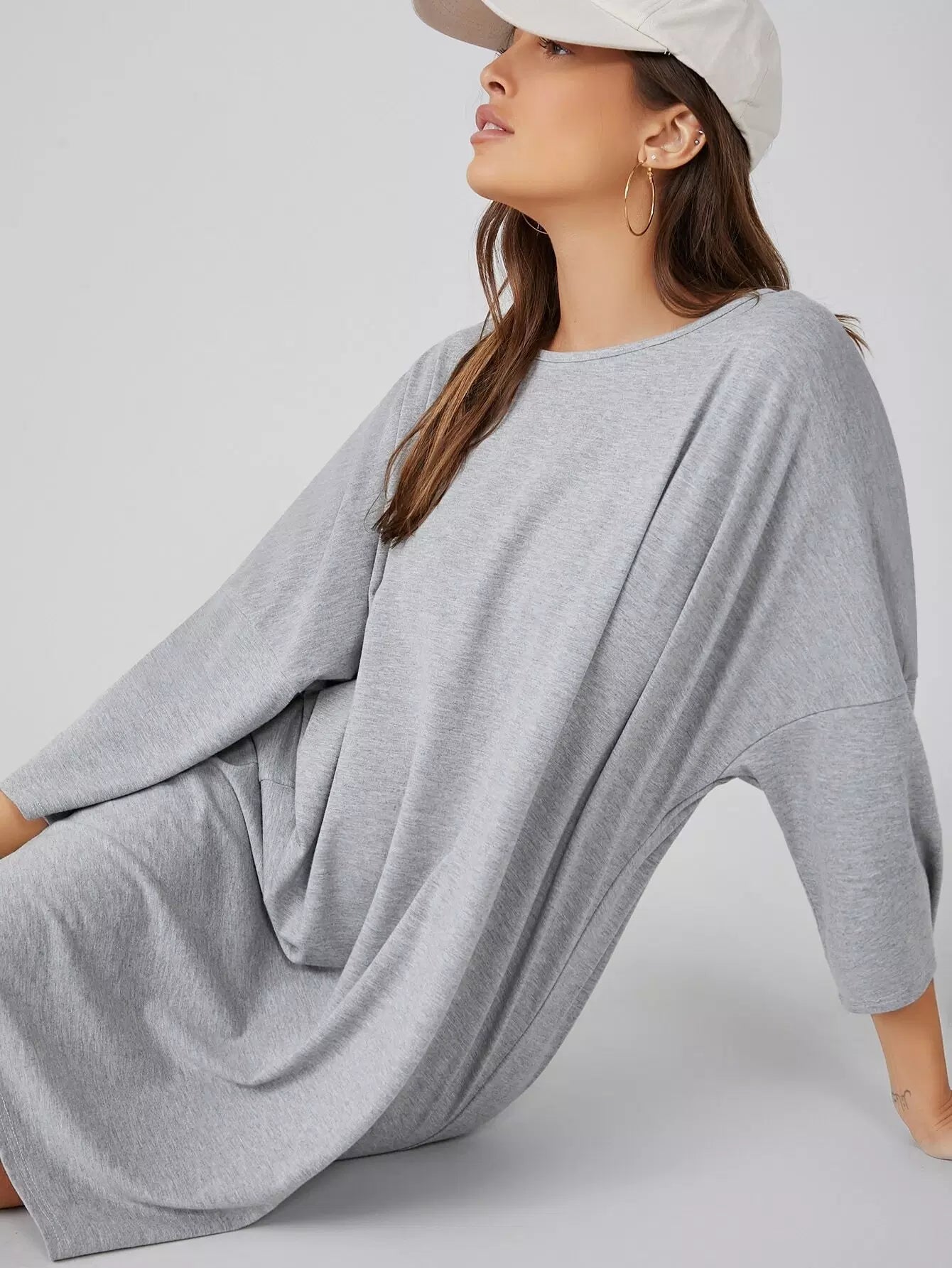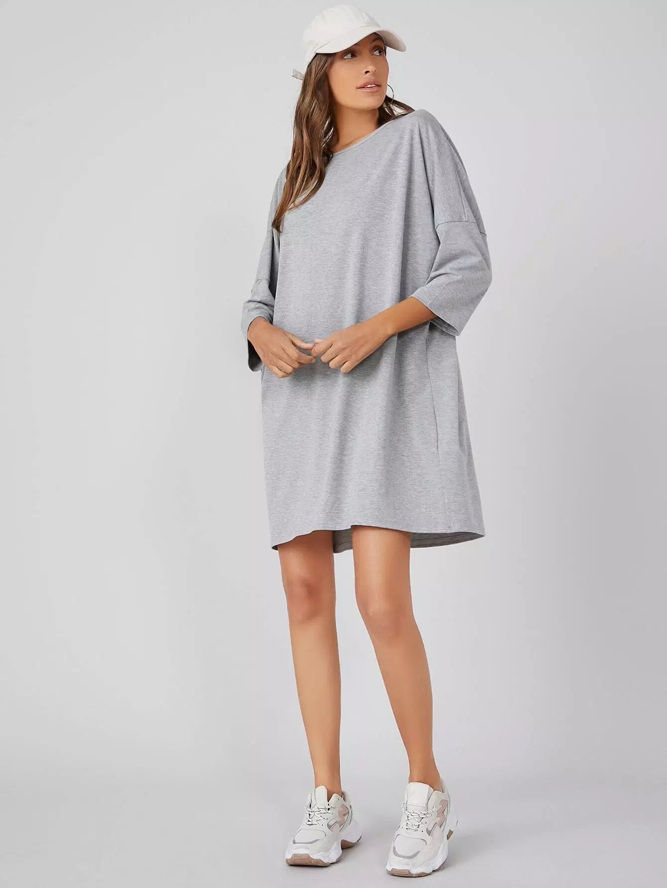 فستان قطني سادة منسدل الكتفين منسدل الكتفين