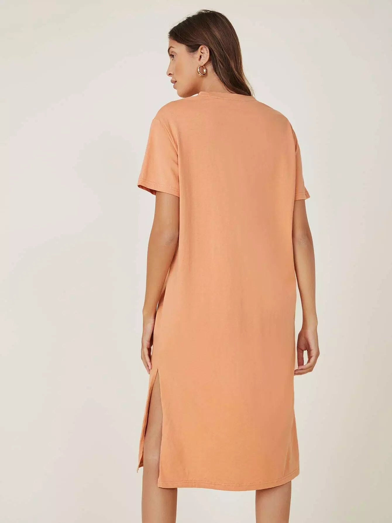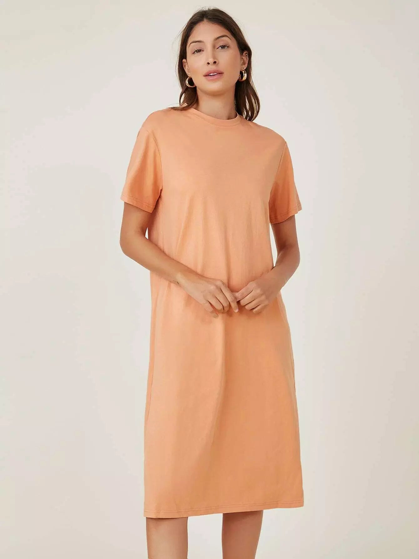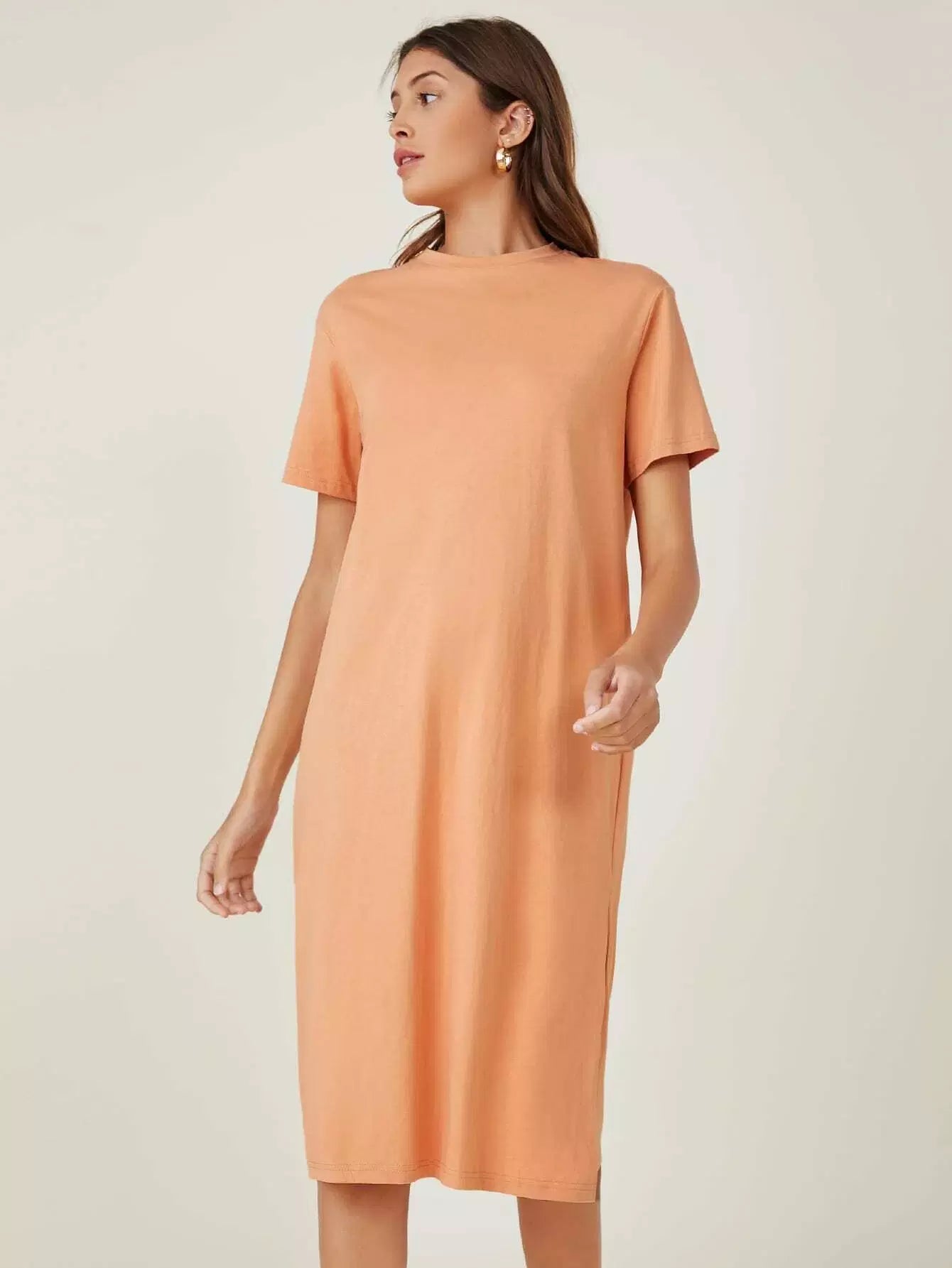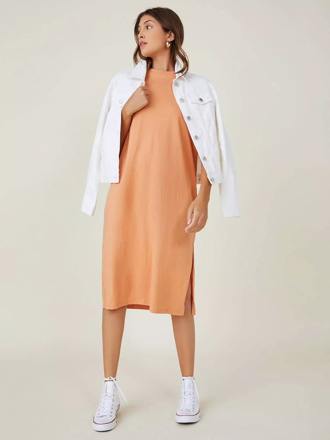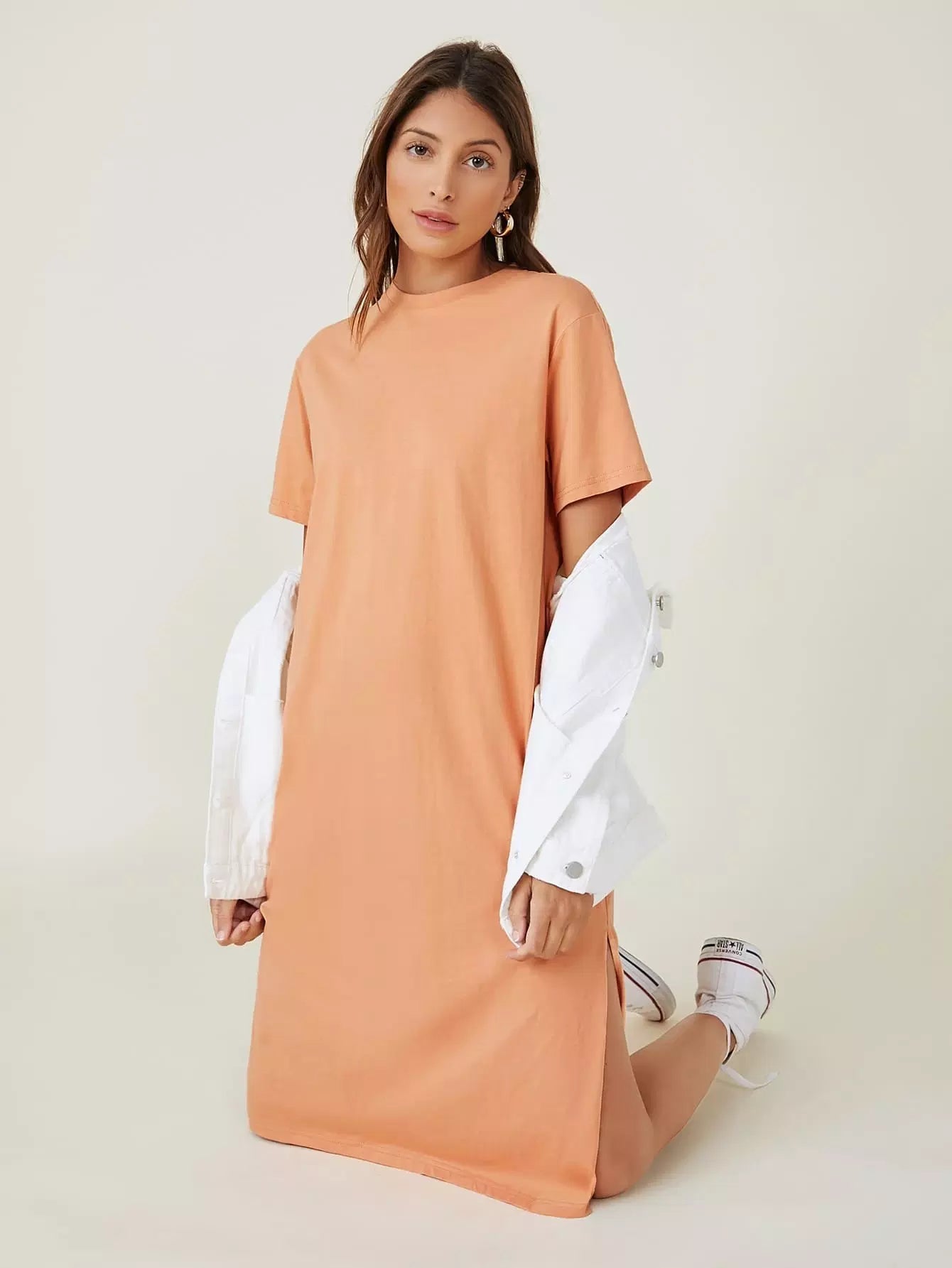 للنساء - فستان تي شيرت سادة بحاشية مقسمة من القطن