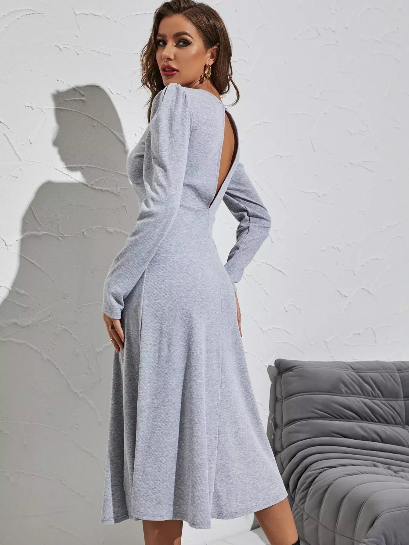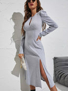 فستان بفتحة عند الفخذ وأكمام منفوخة