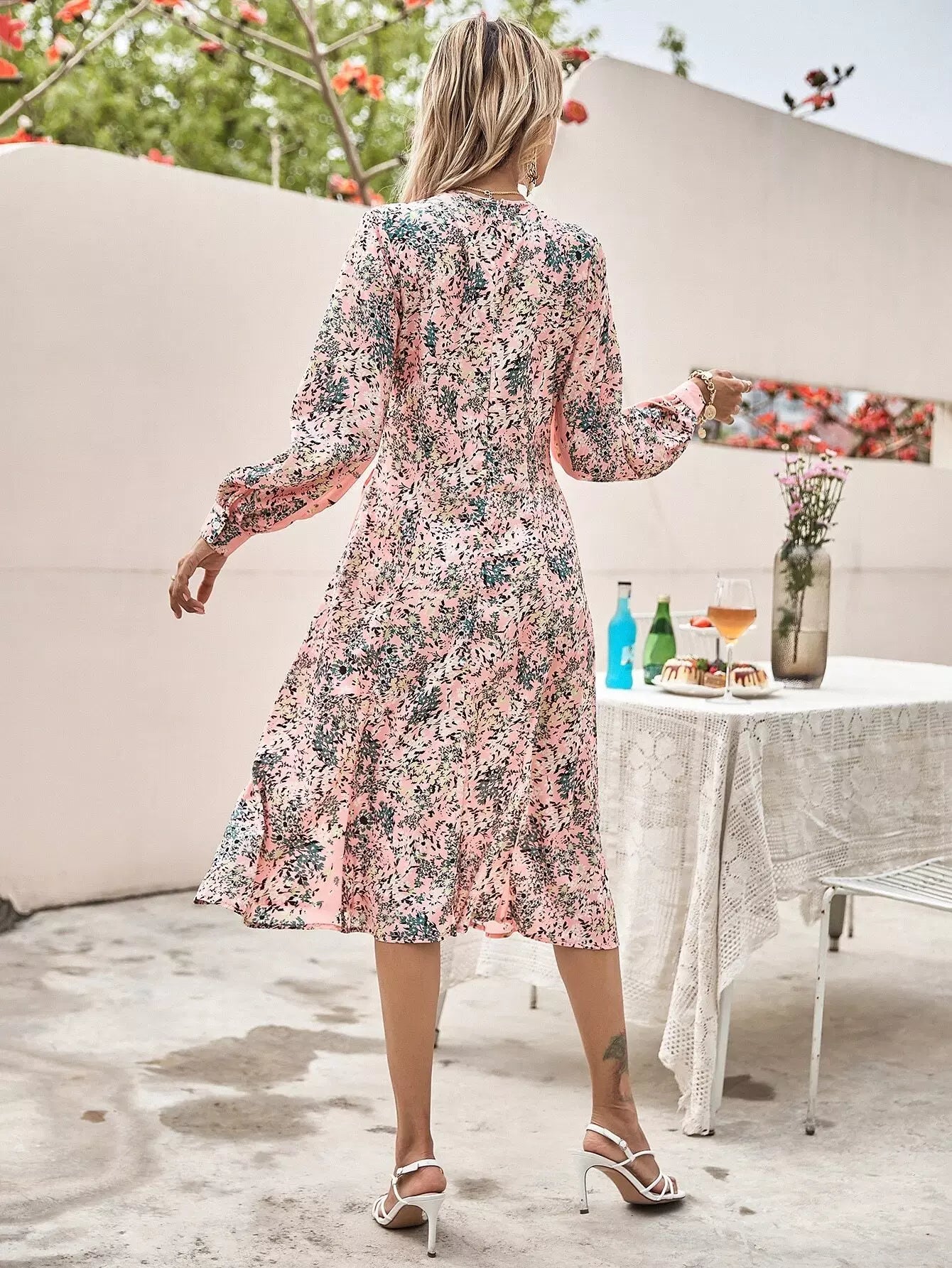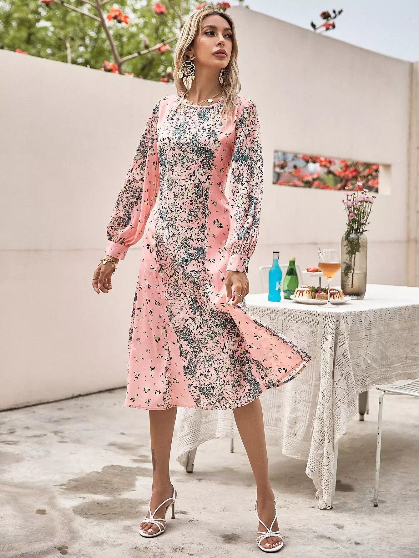 النساء - فستان على شكل حرف A مزين بالزهور