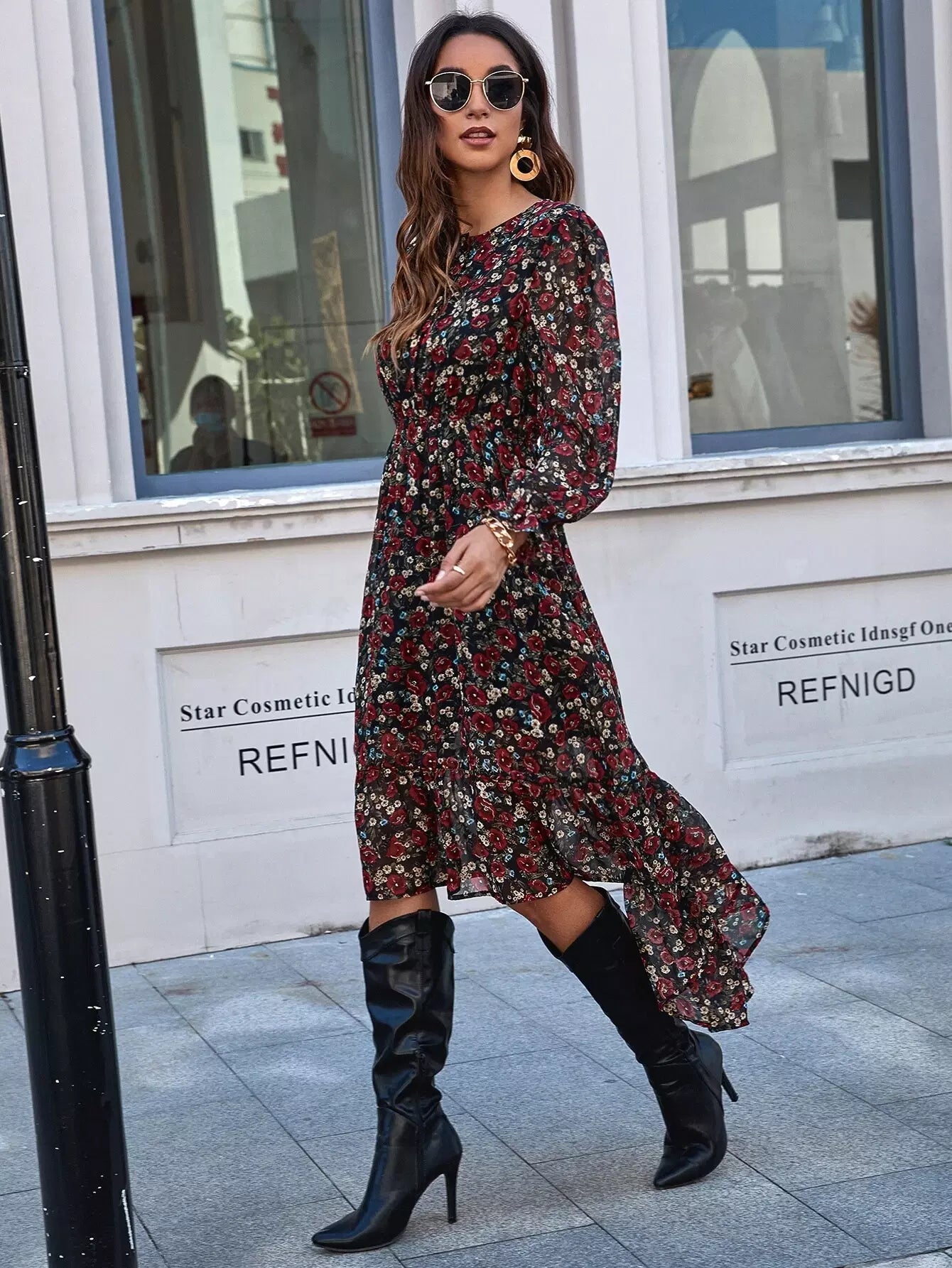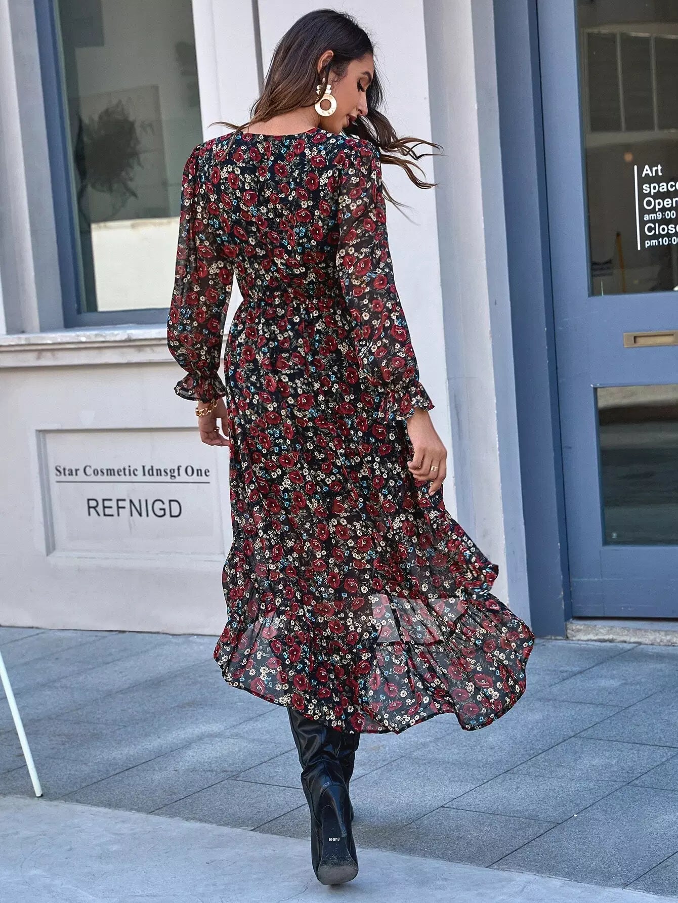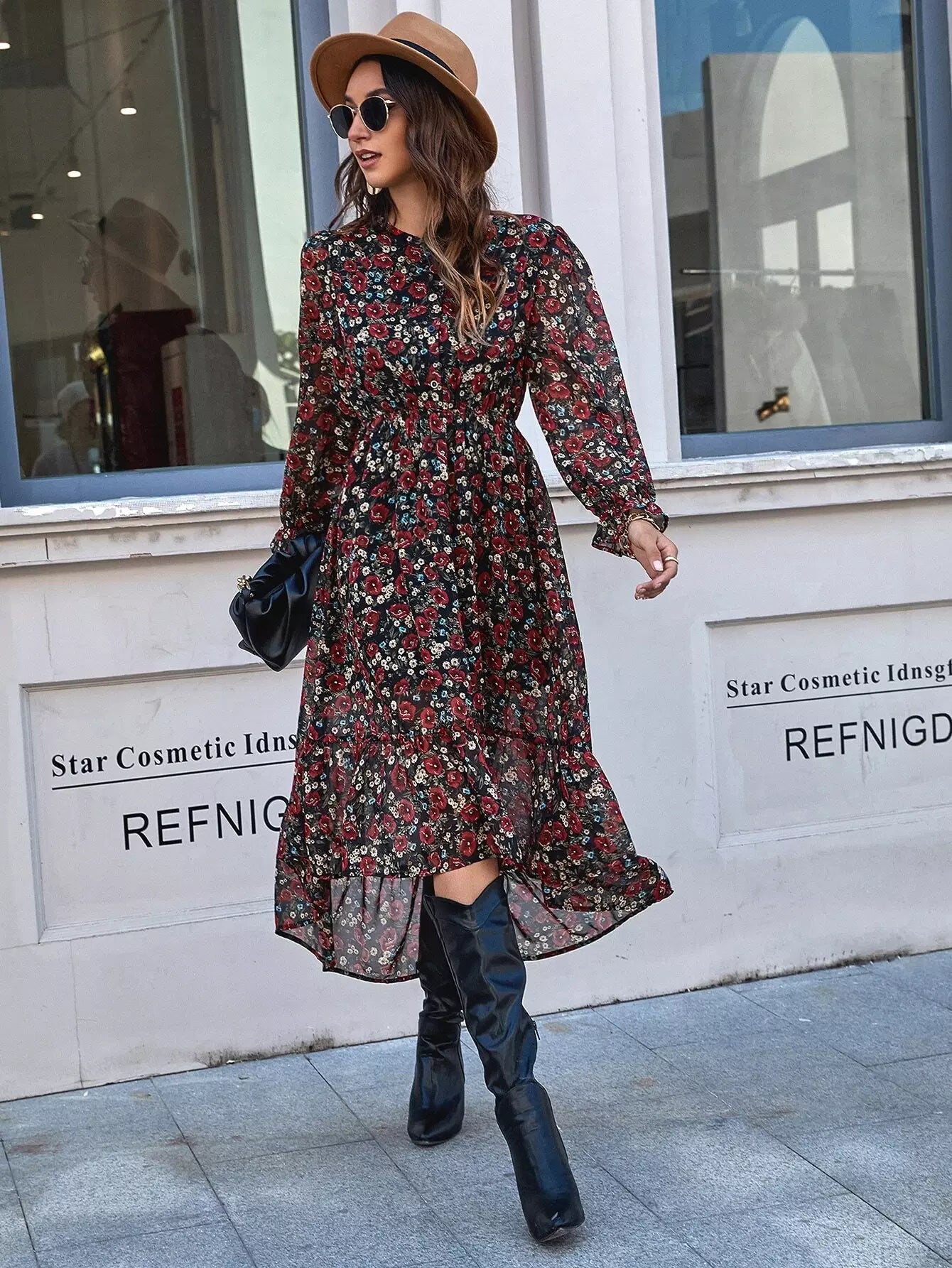 فستان شيفون ديتسي بحافة زهرية من الشيفون