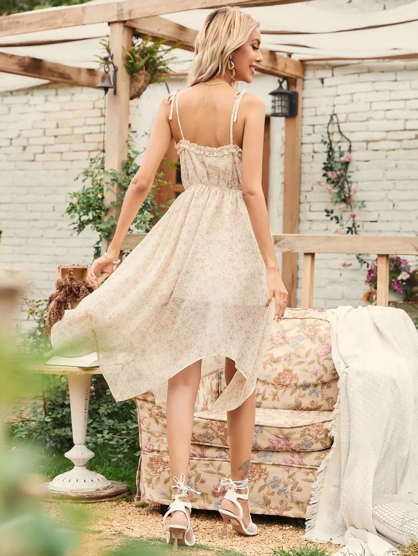 فستان كامي مزين بعقدة زهرية منقوشة بحافة هانكي