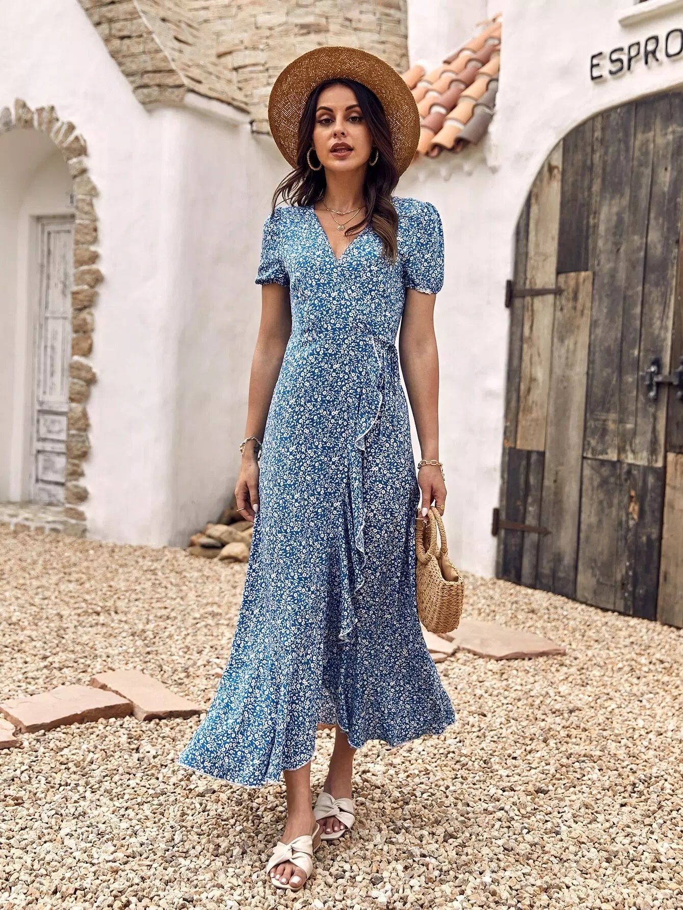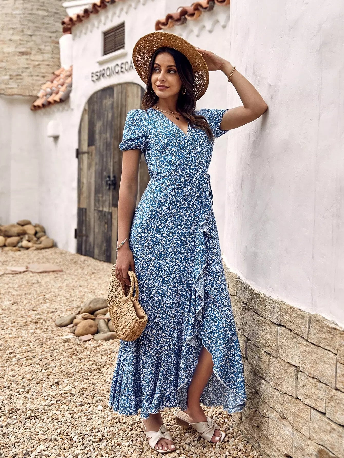 فستان ديتسي مزين بكشكش على شكل حرف A