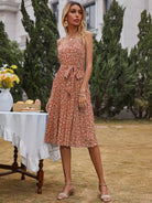 فستان ديتسي مزين بربطة عنق ذات أزهار ذاتي