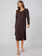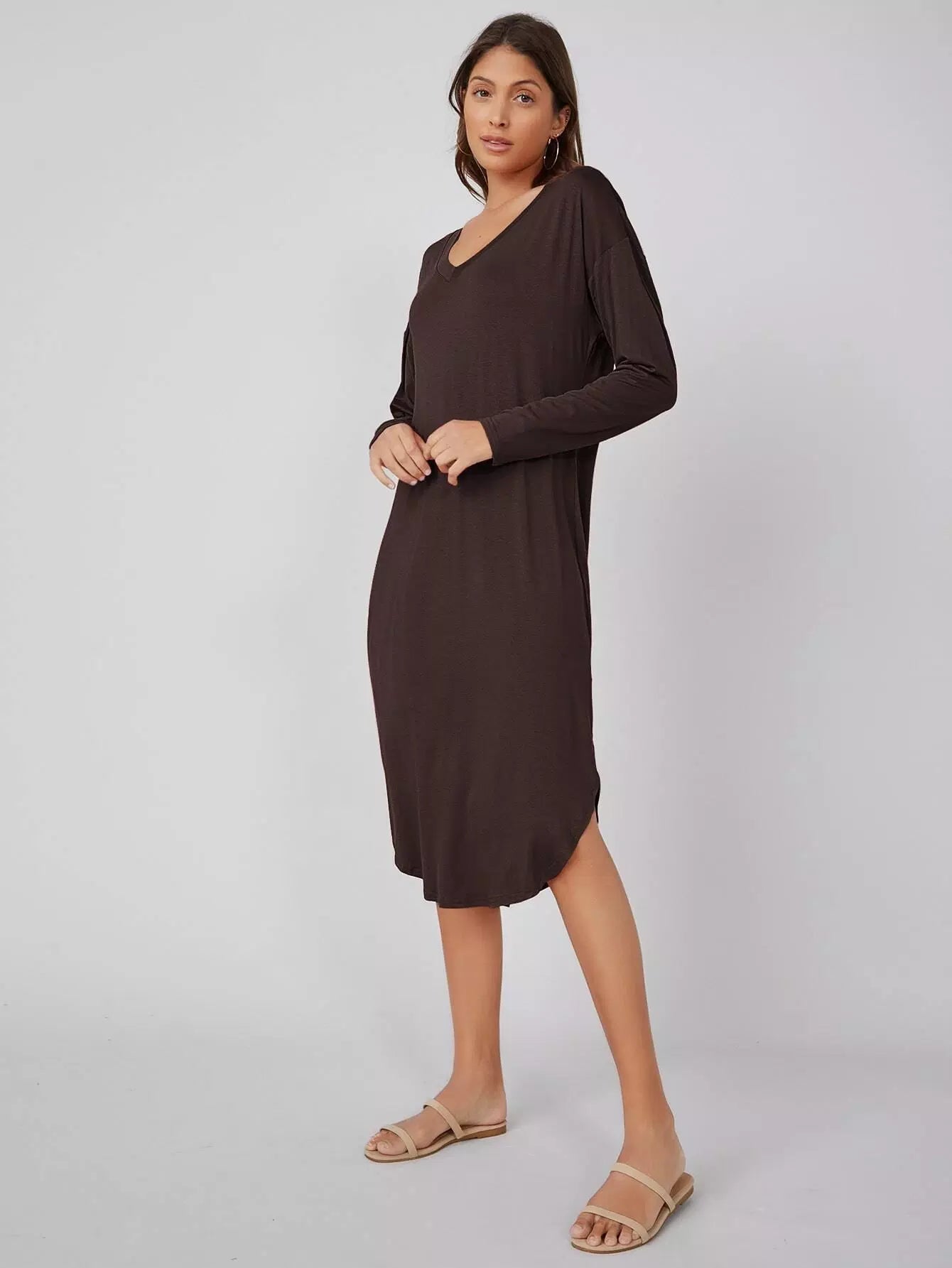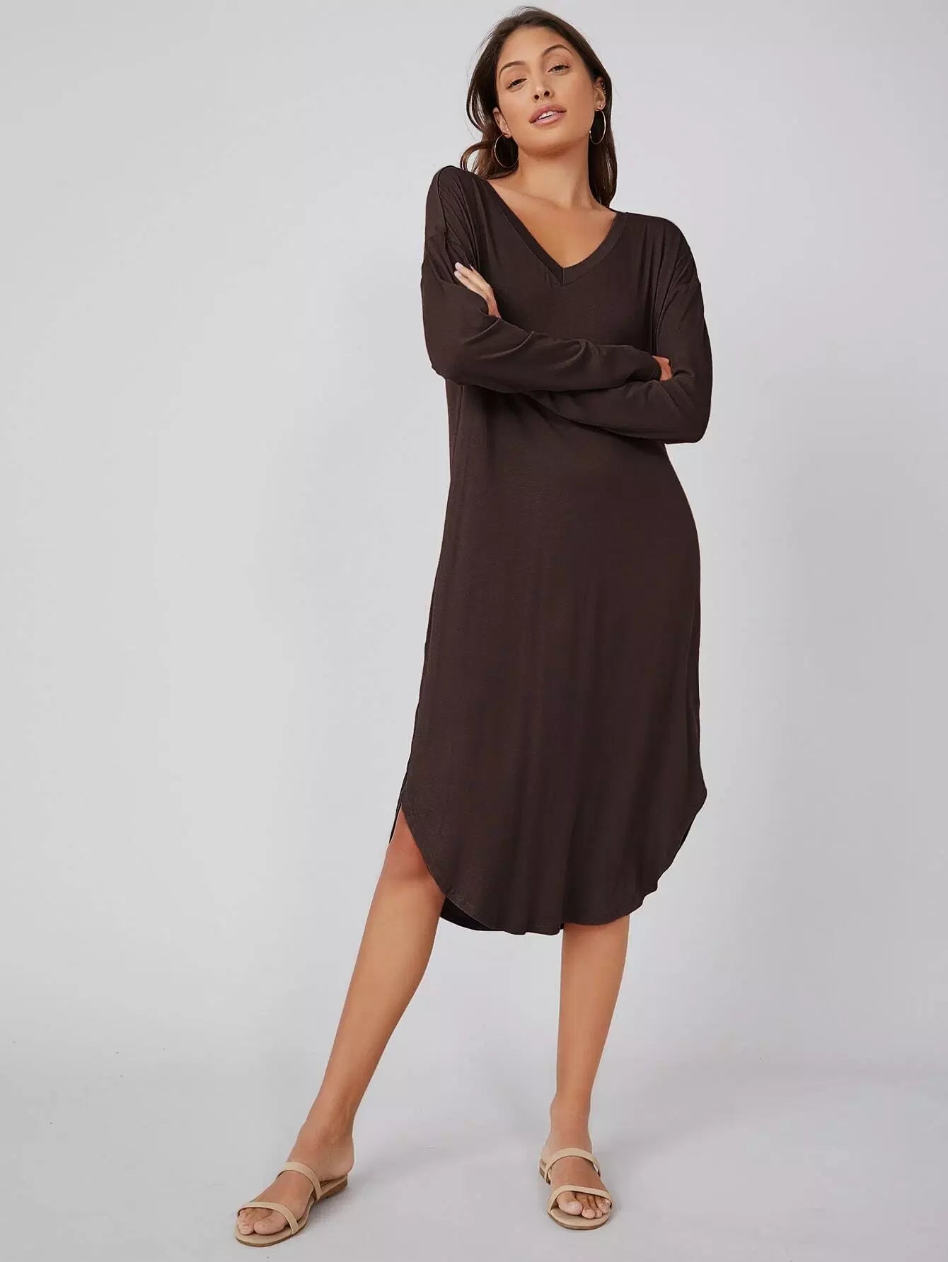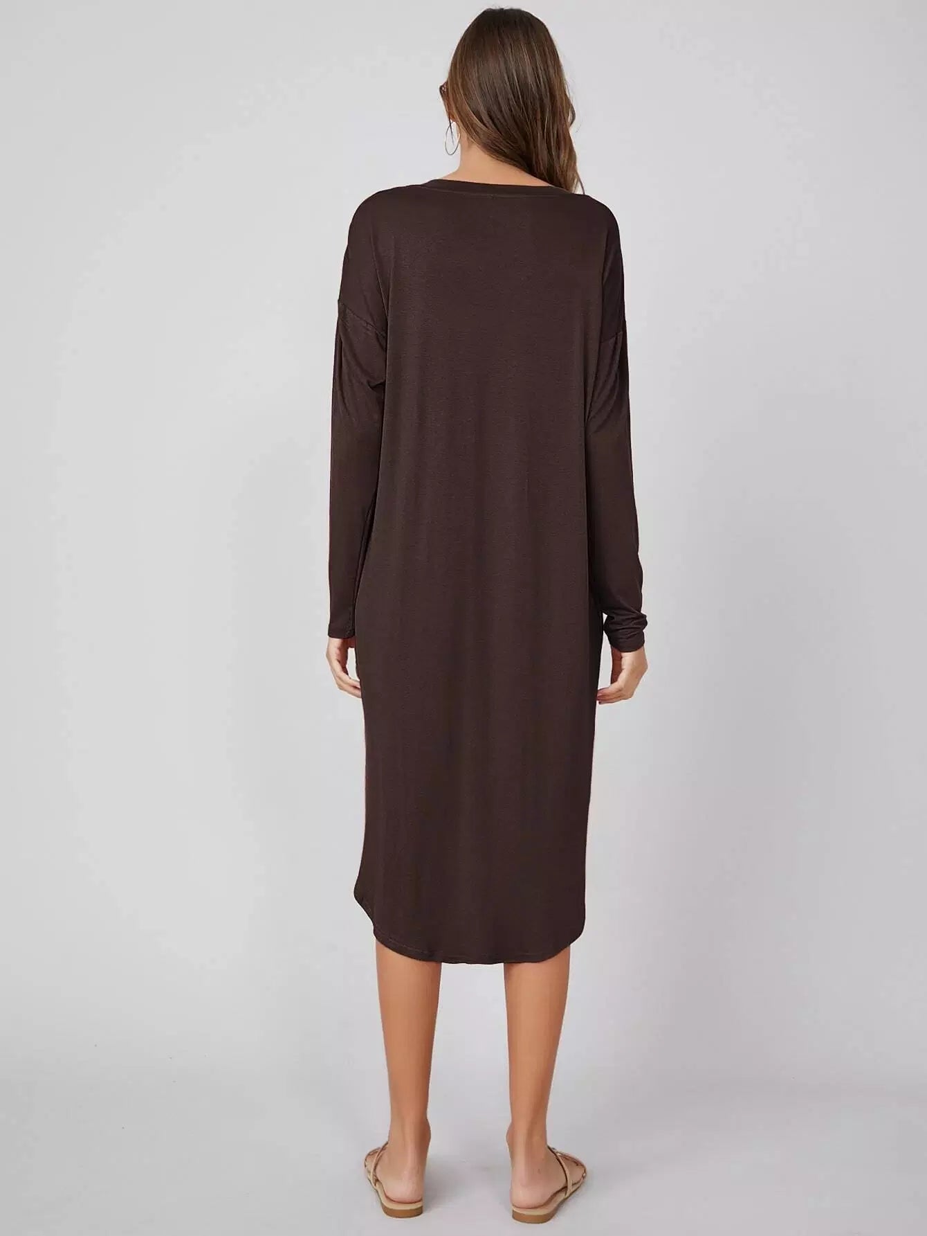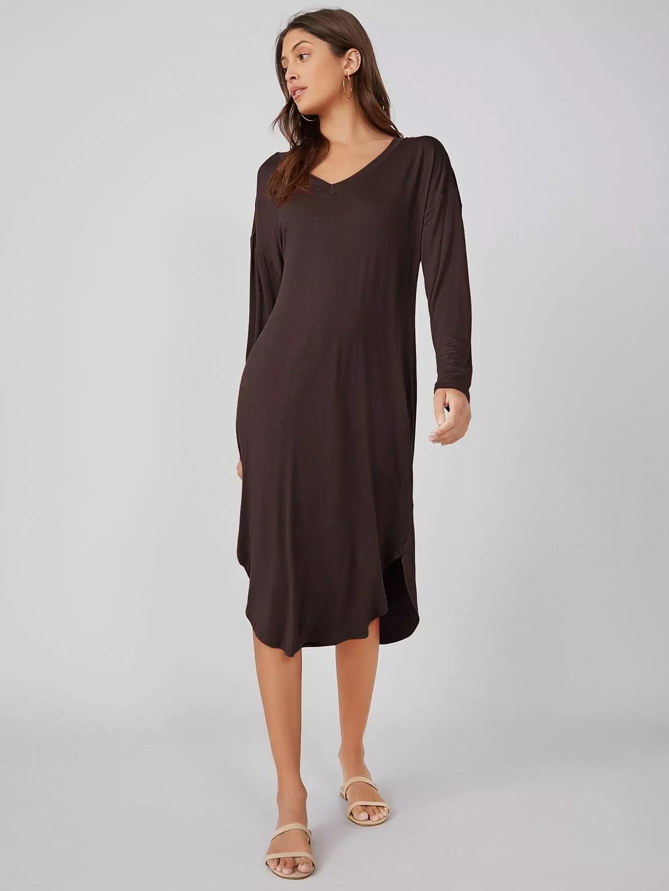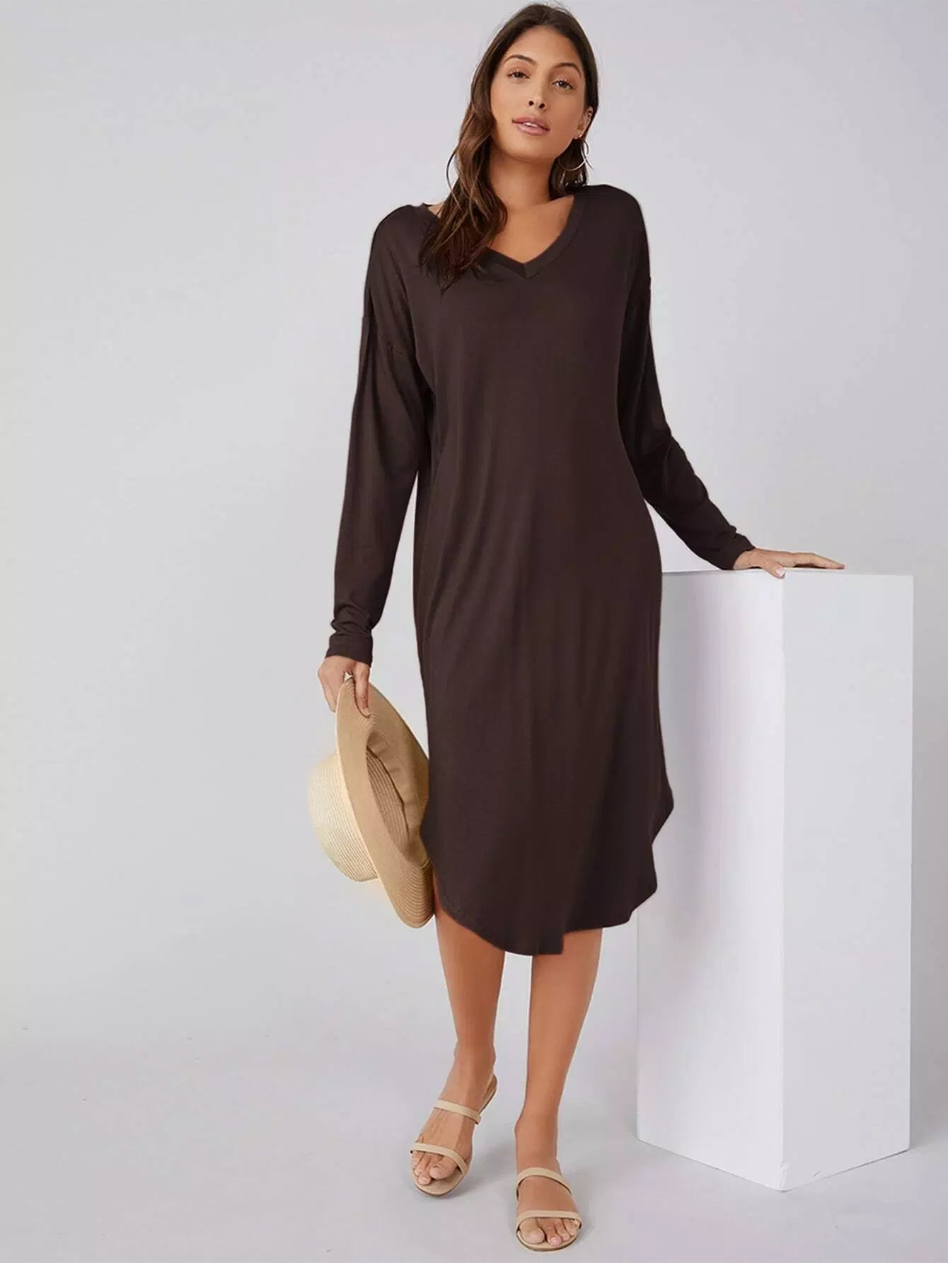 فستان سادة بحافة منحنية منسدلة الكتف منسدلة الكتف