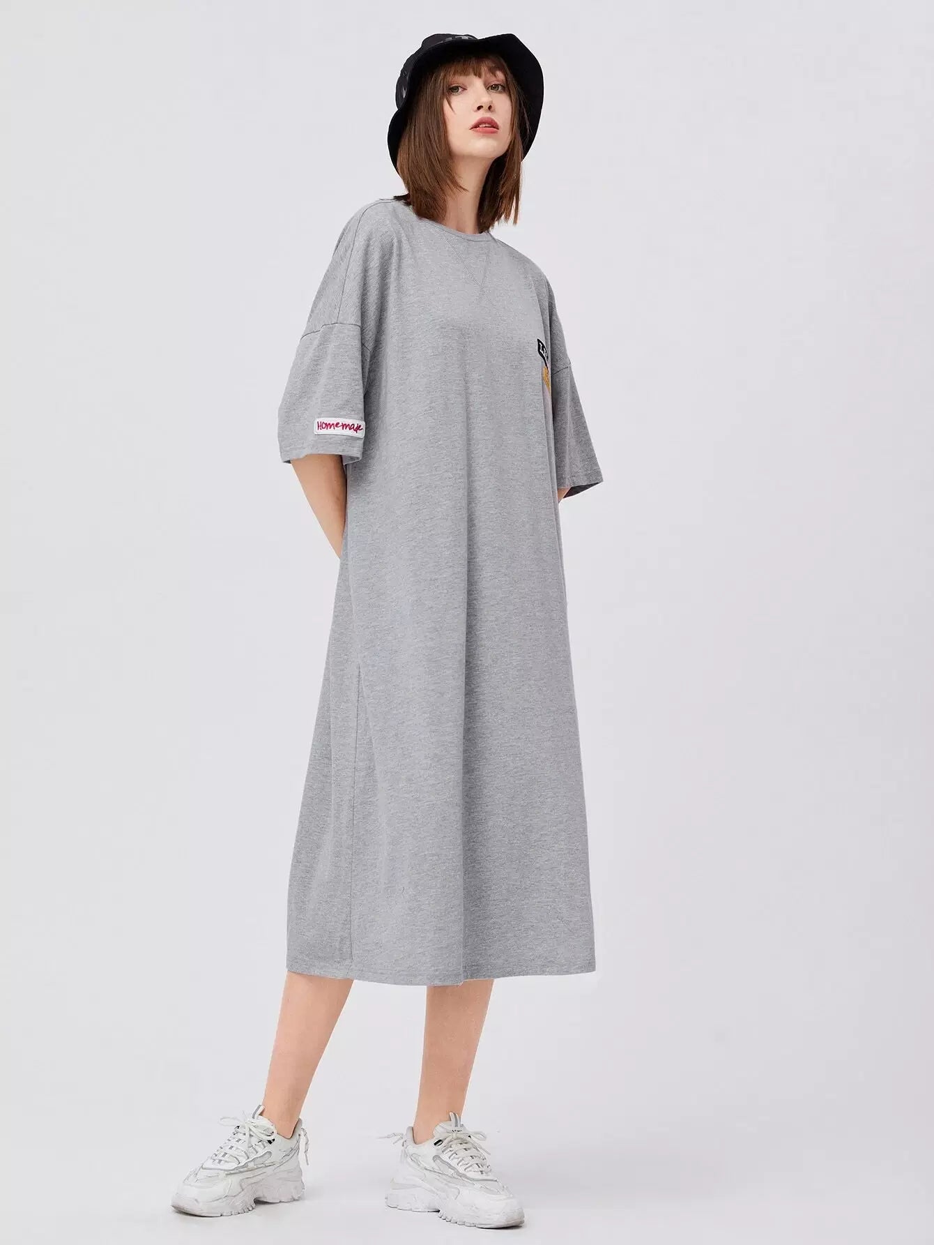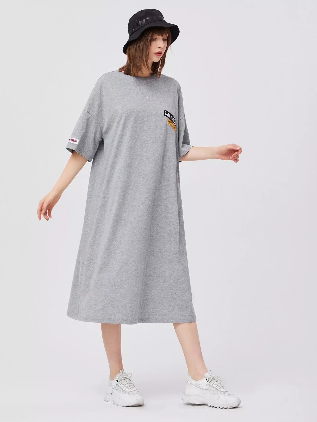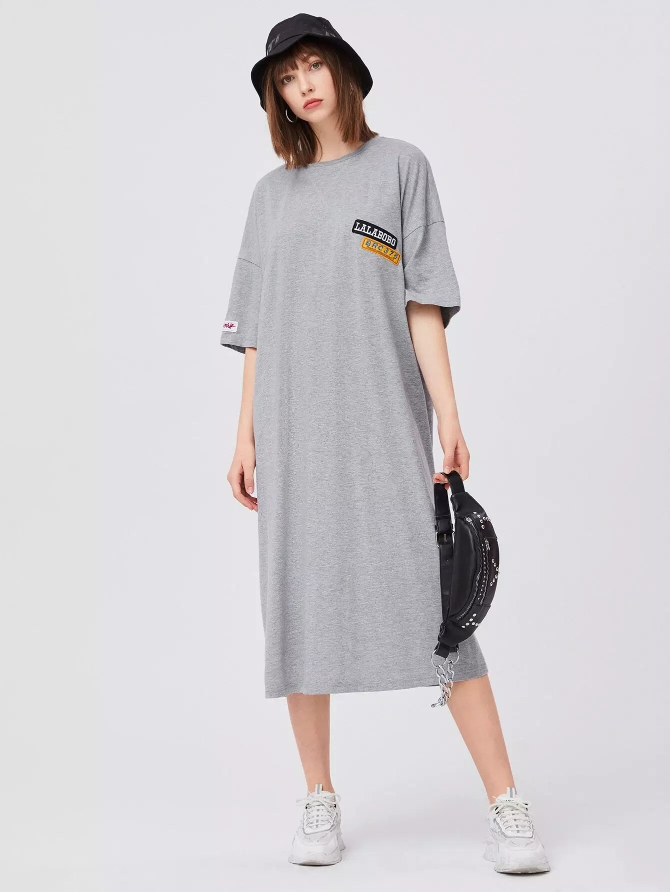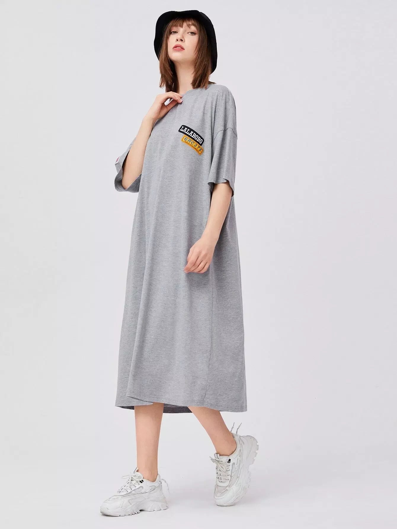 فستان ذو أكتاف منسدلة مرقع التفاصيل