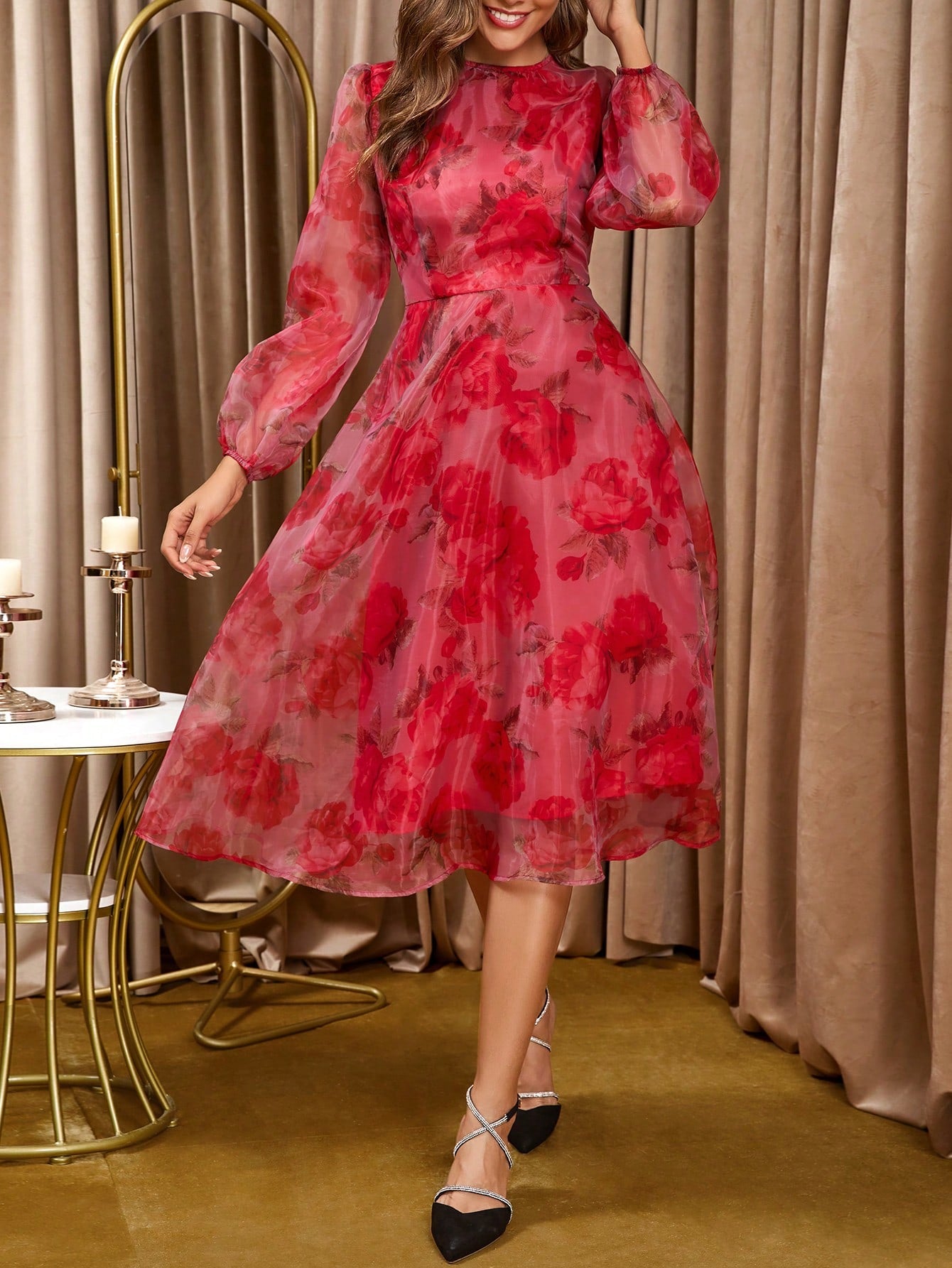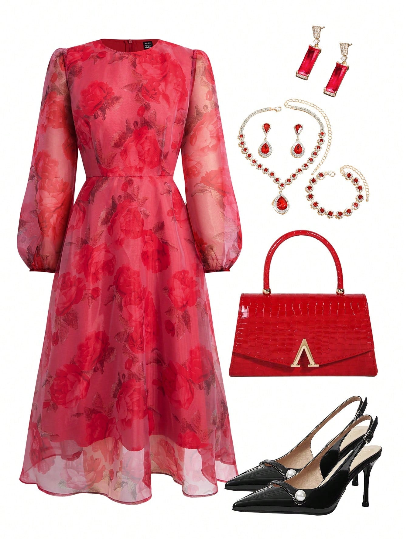Ellevyn Women Elegant Butterfly Pattern Lantern Sleeve Dress For Spring And Autumn Halloween Women Fall