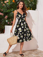 فستان كشكش بحواف مكشكشة ذات خصر إمبراطوري بحاشية زهرية