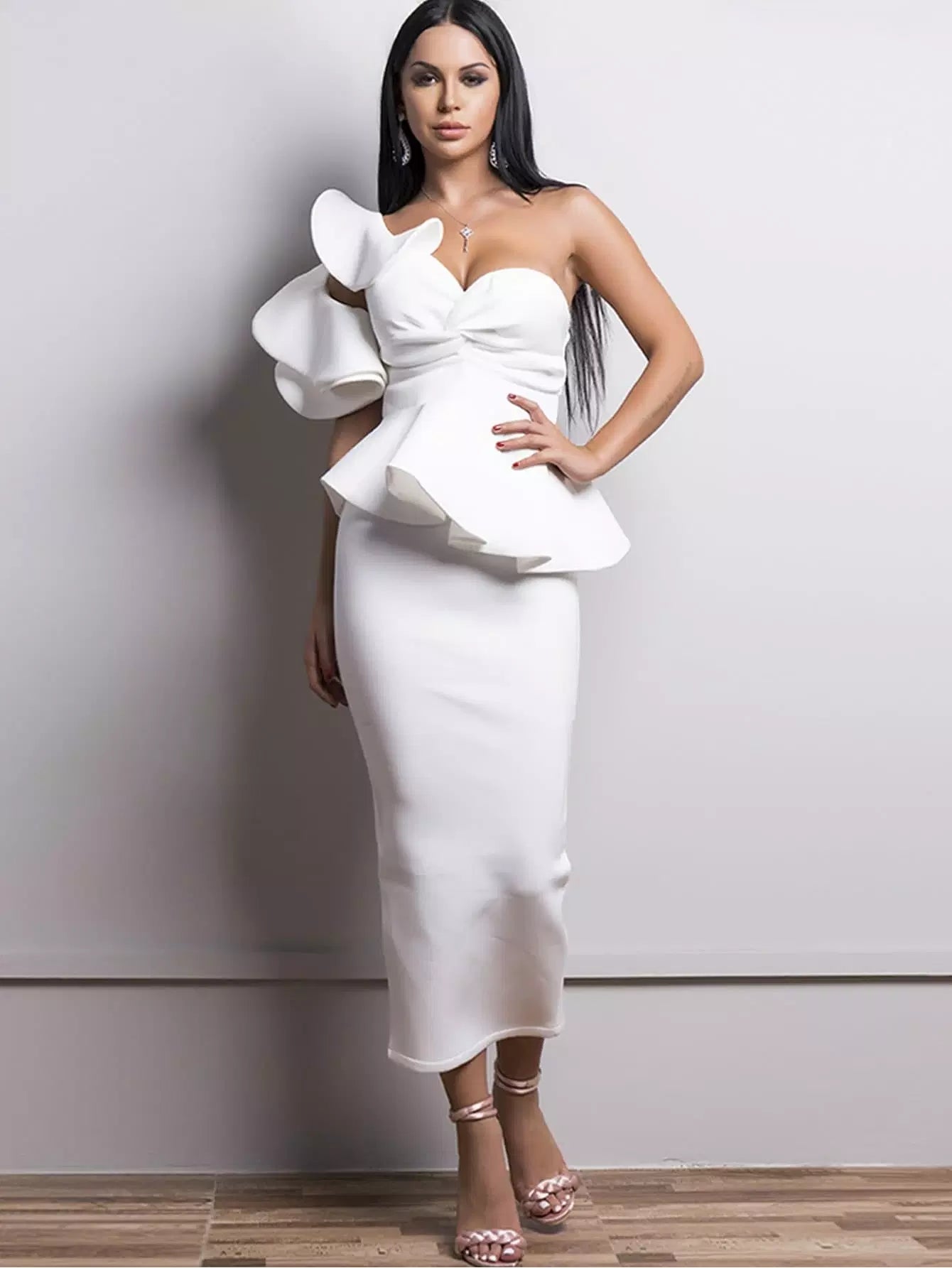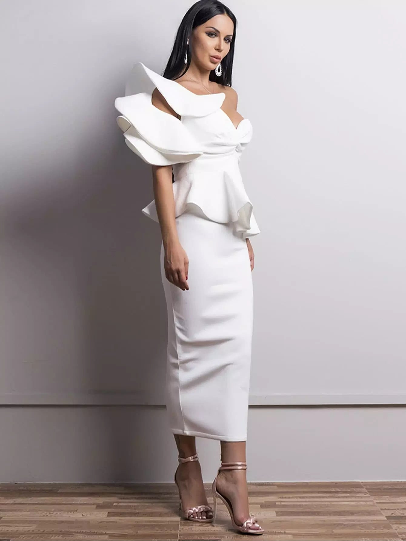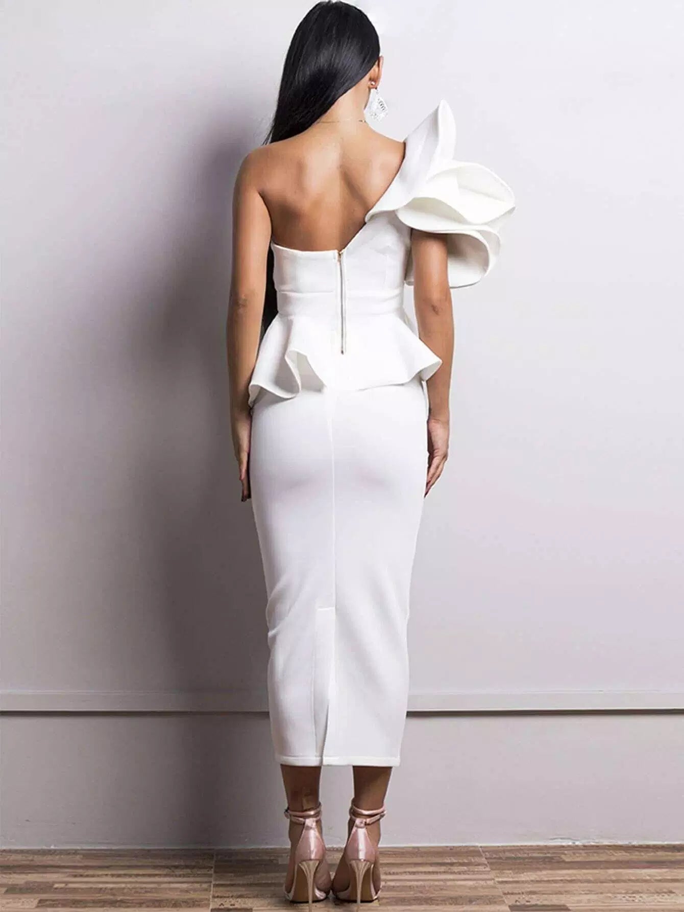 فستان كشكش مبالغ فيه بكتف واحد مكشكش بقصّة بيبلوم