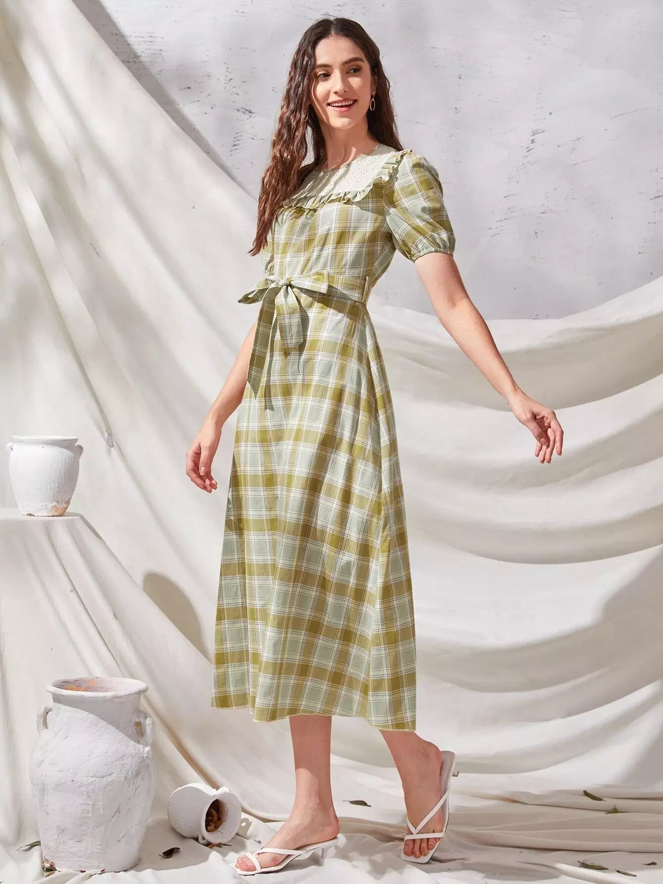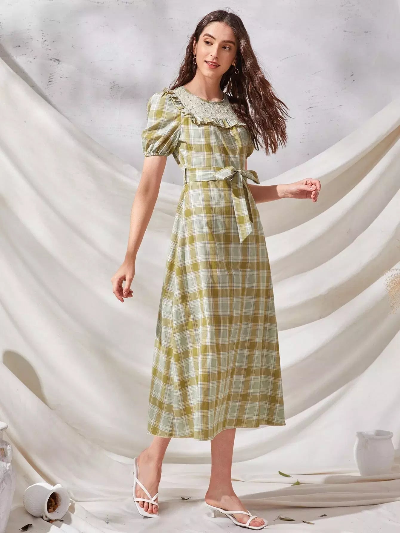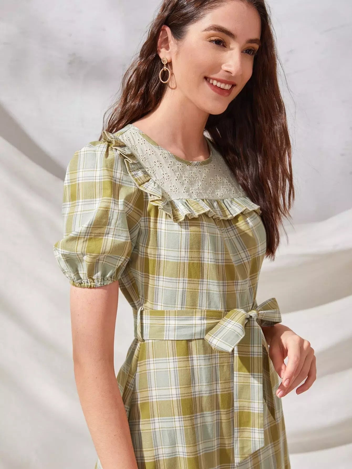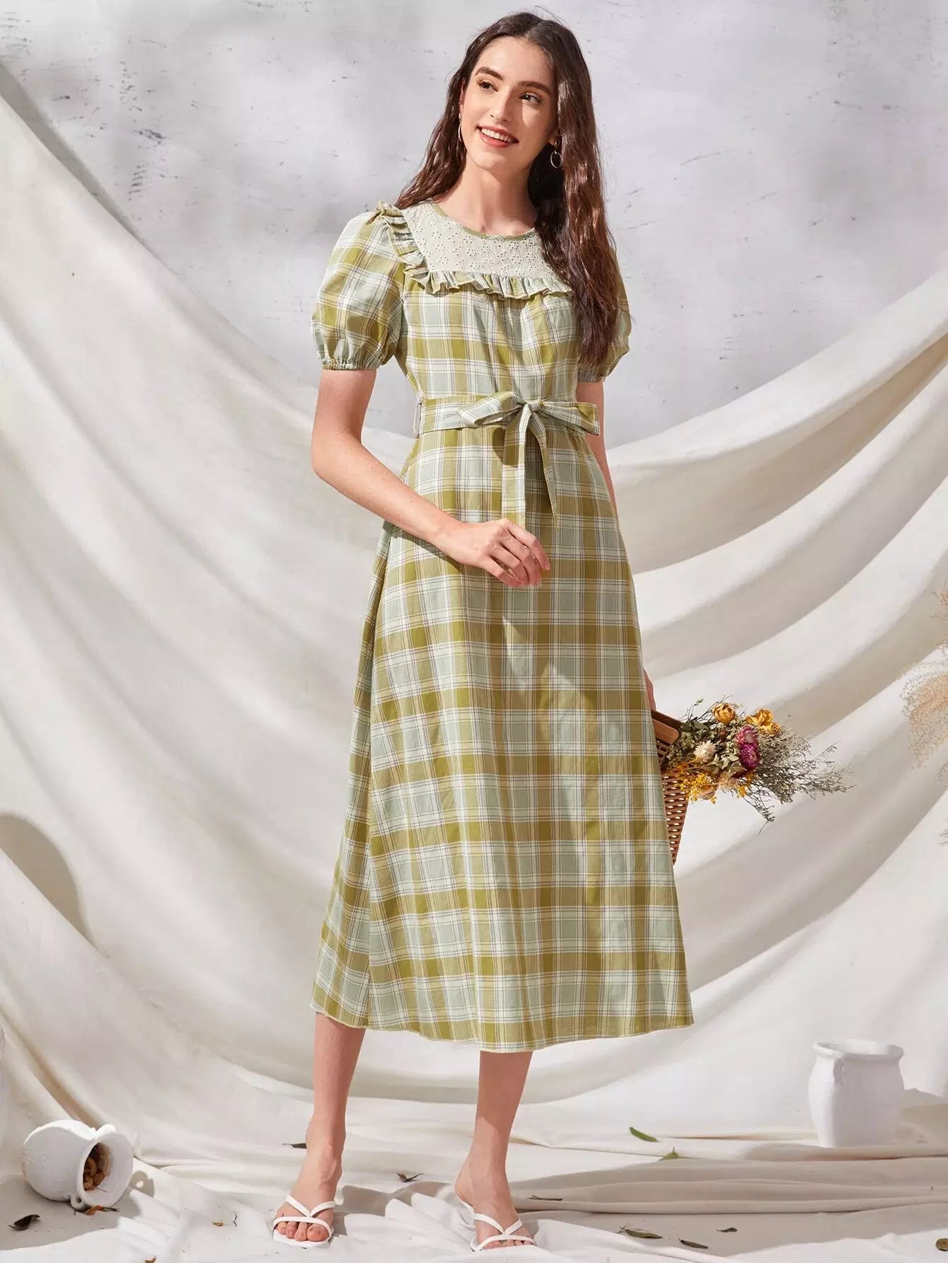 فستان منقوش بلوحة تطريز العيينة بدون حزام