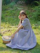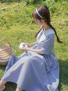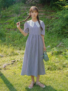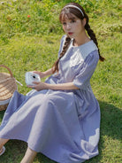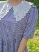 فستان قطني بياقة قطنية مطرز بتطريزات العيينة