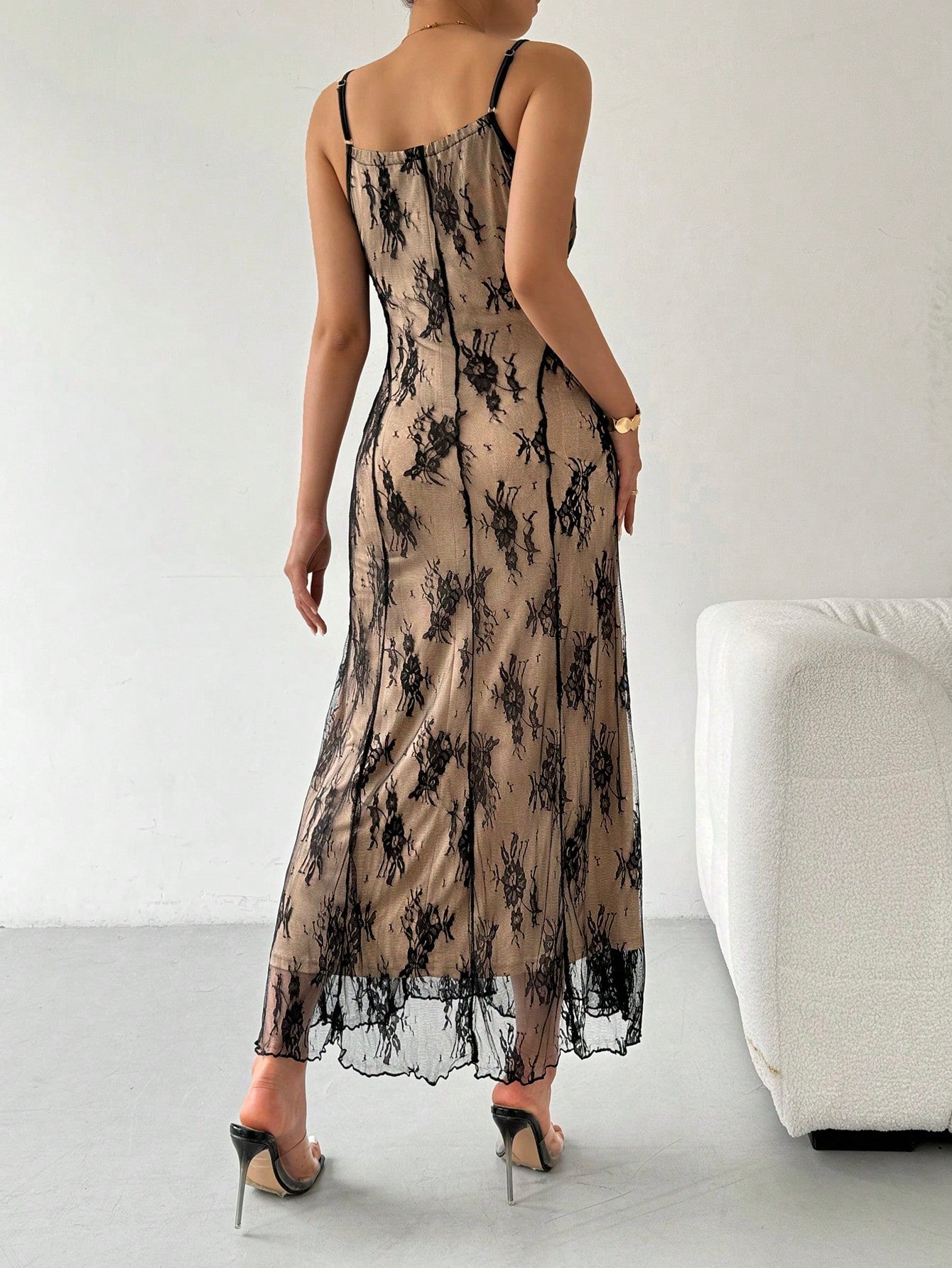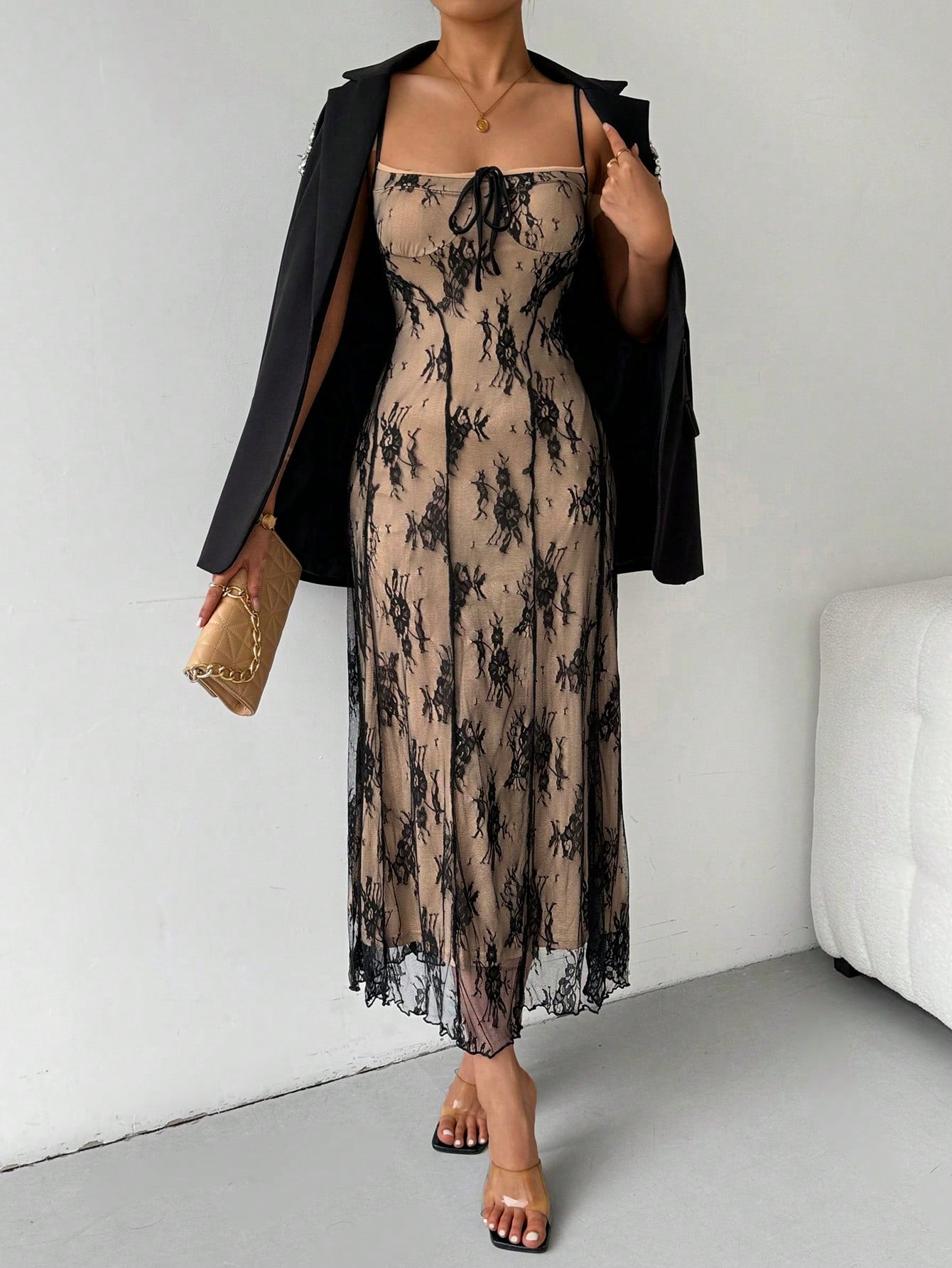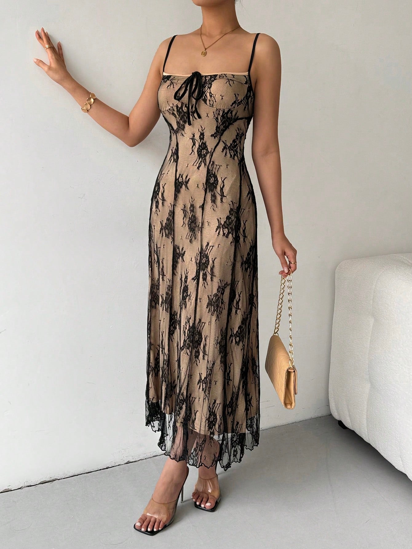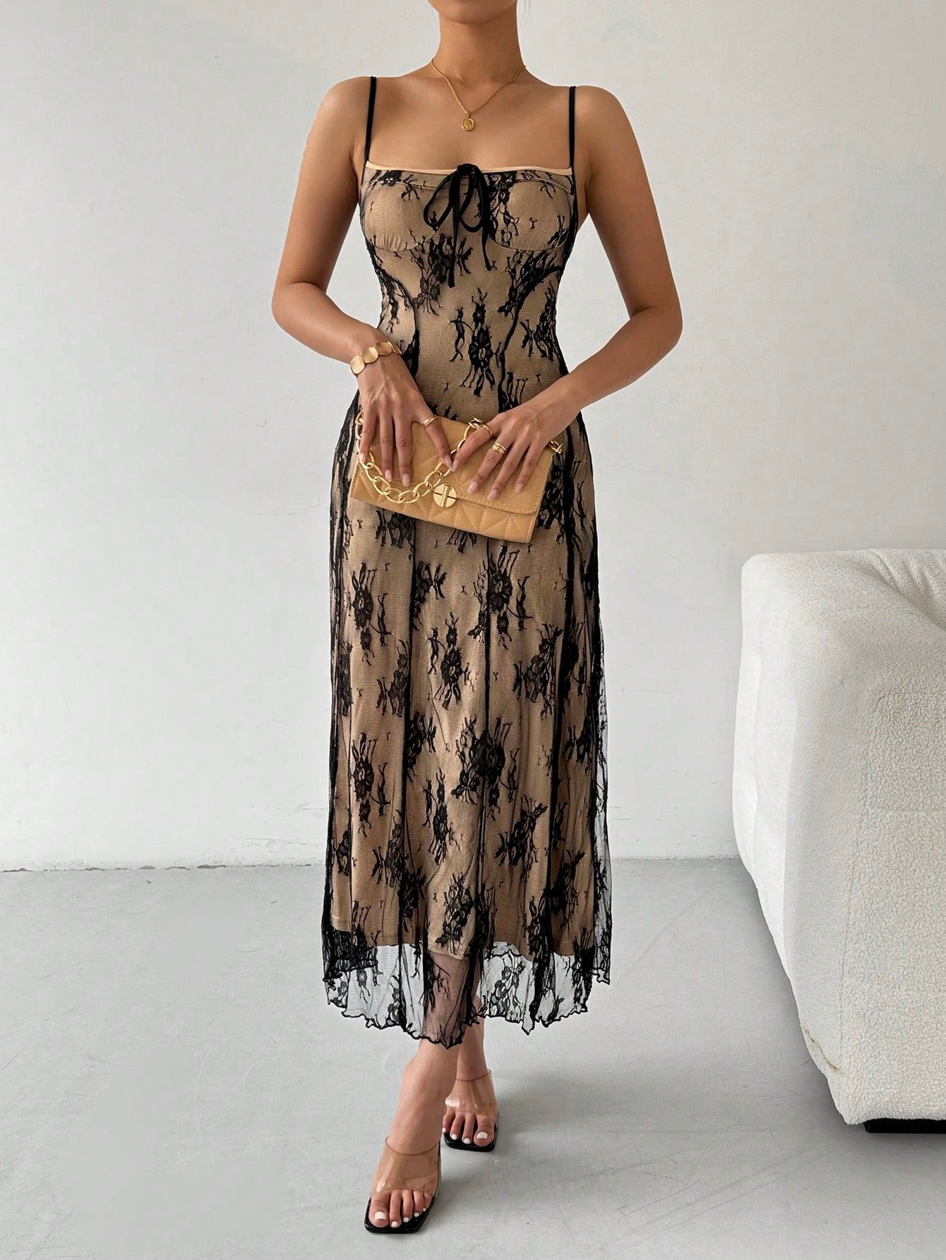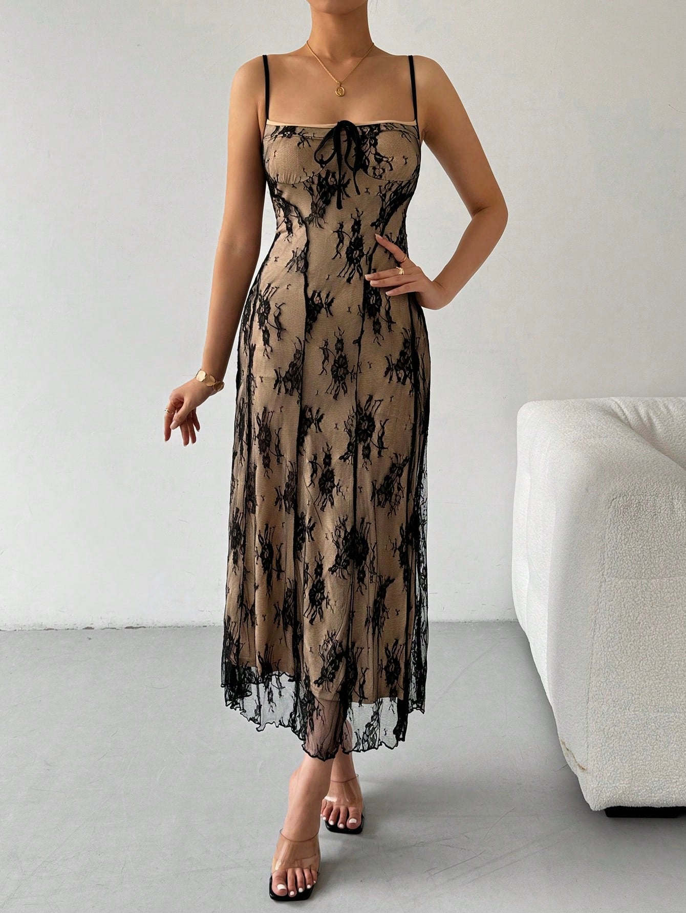Firerie Women Lace-Up Spaghetti Strap A-Line Mid-Length Dress