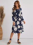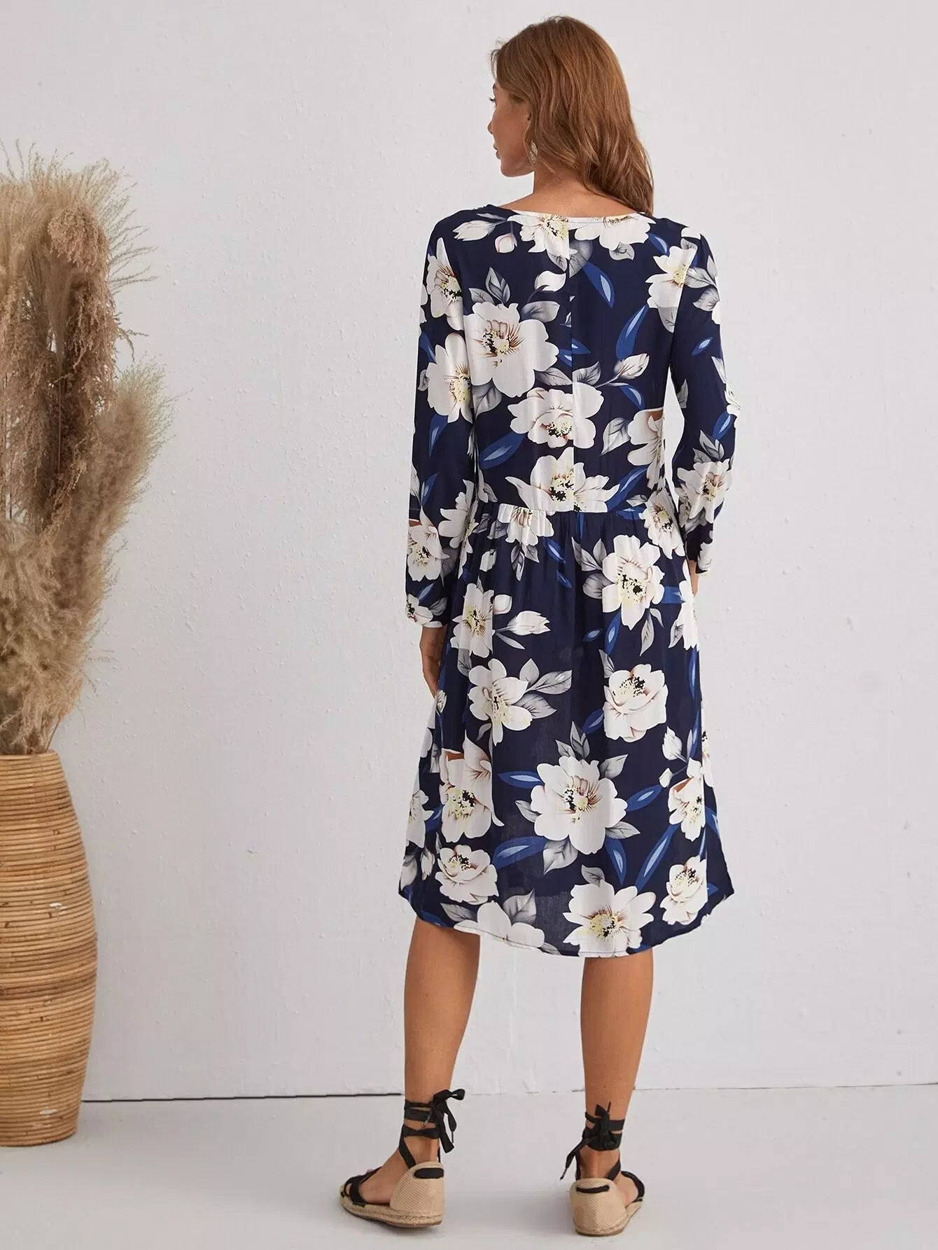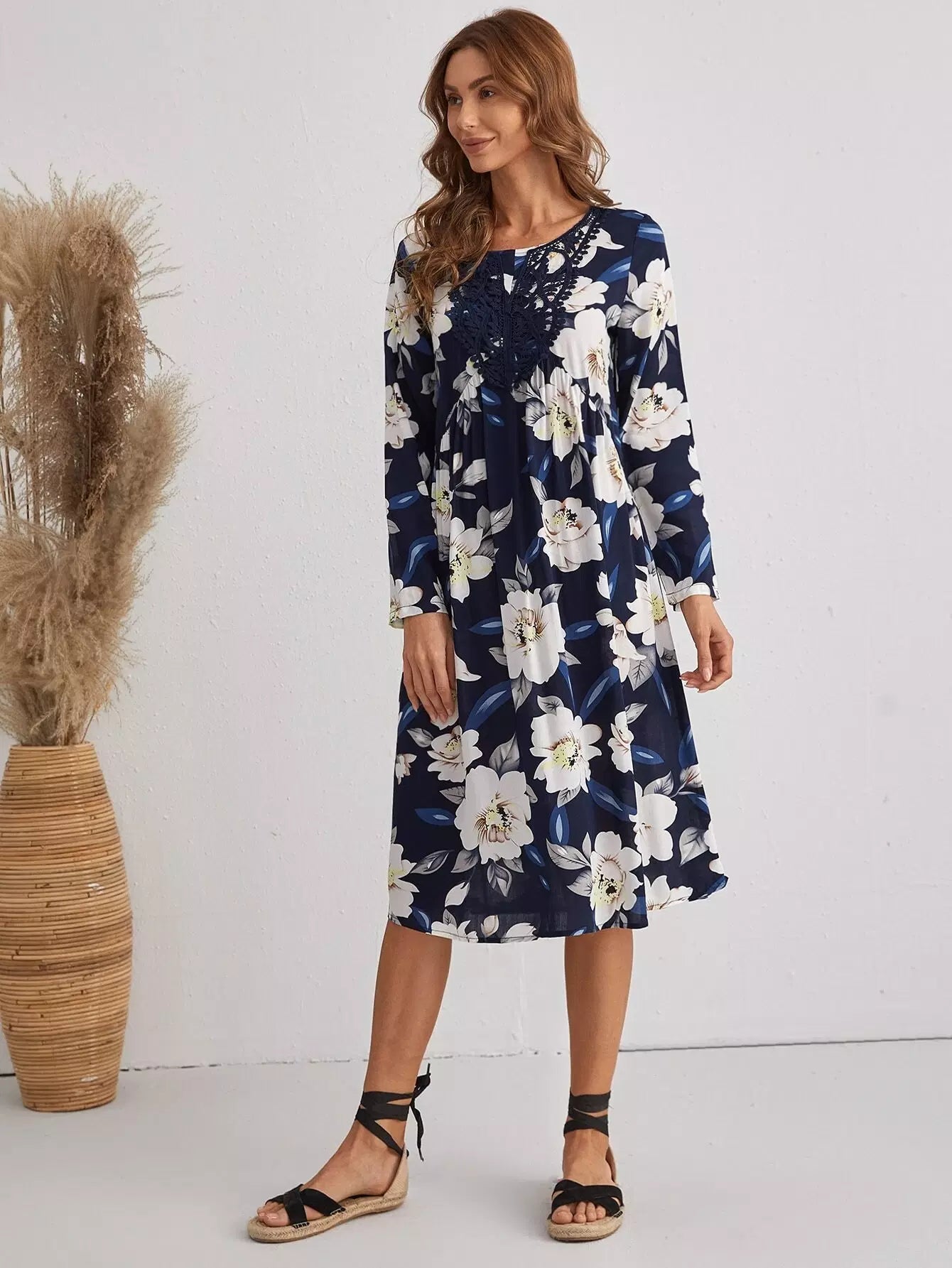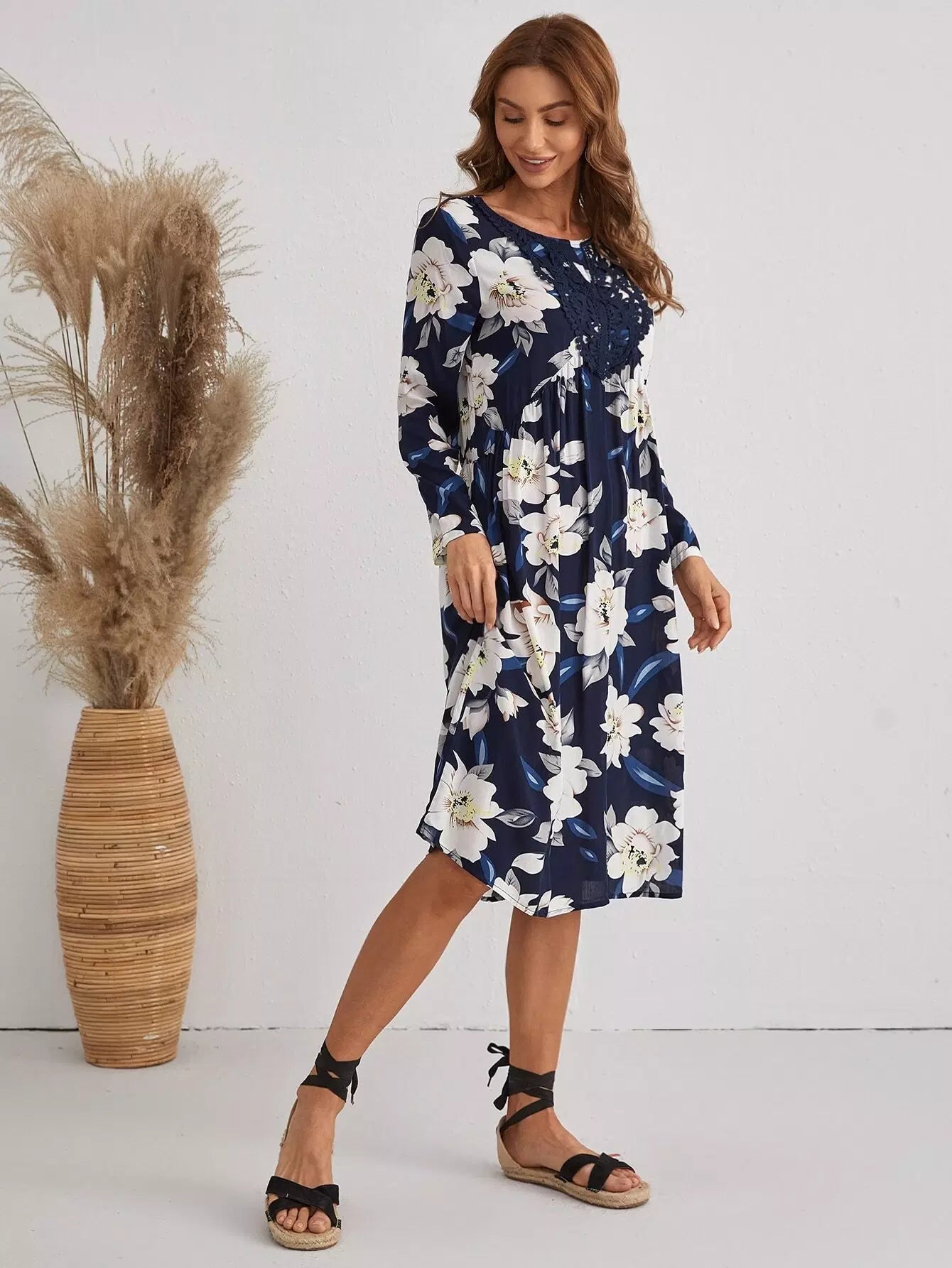فستان دانتيل سموك بطبعة زهور بلون مغاير