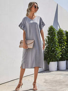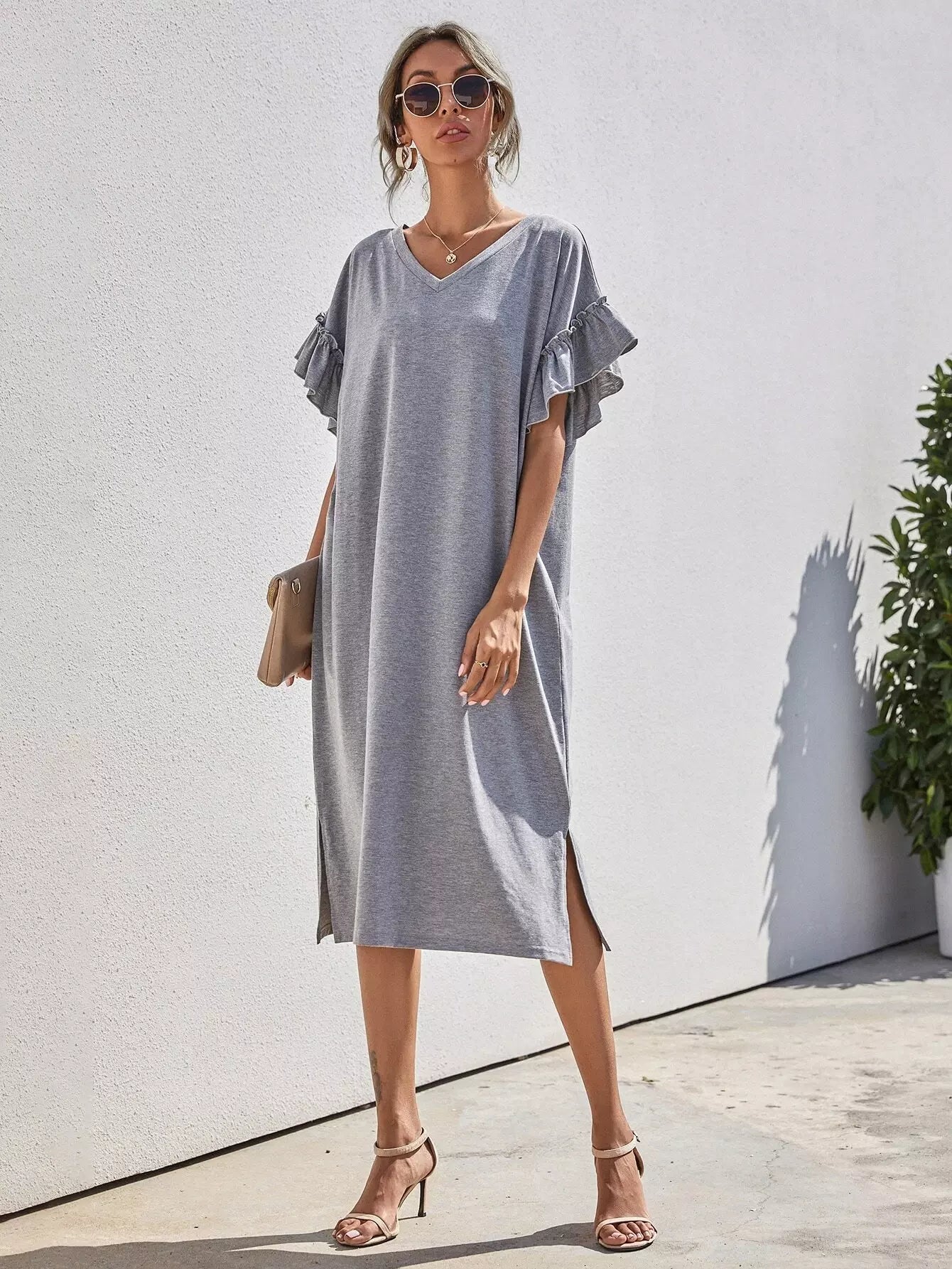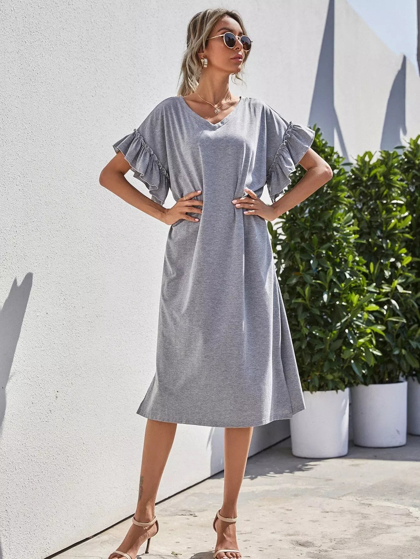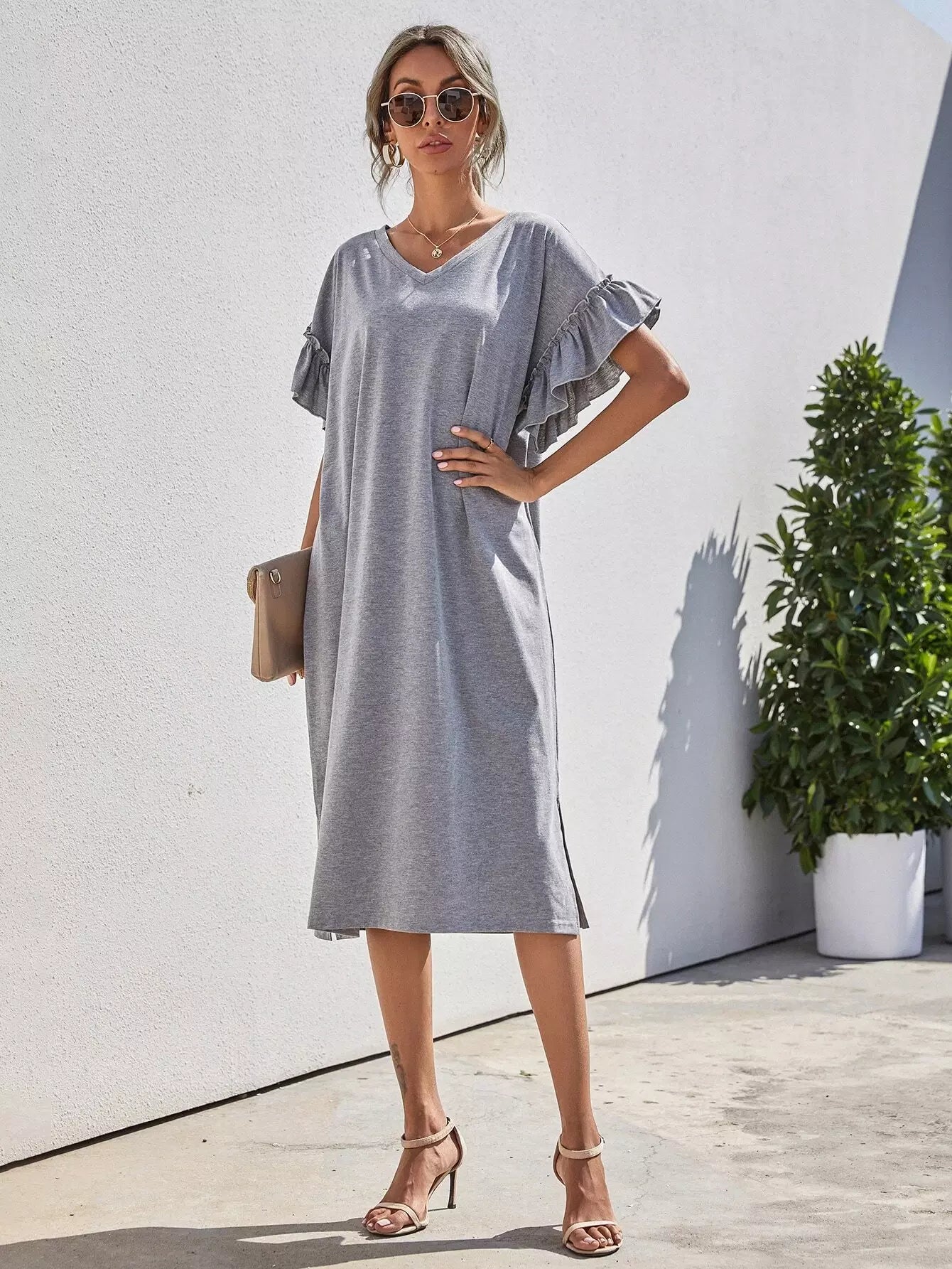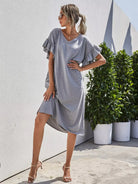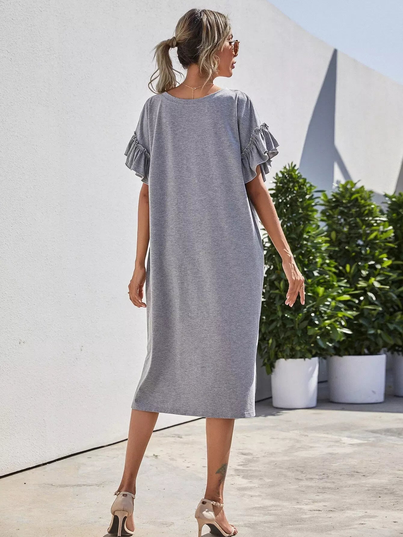 فستان تي شيرت بأكمام مكشكشة