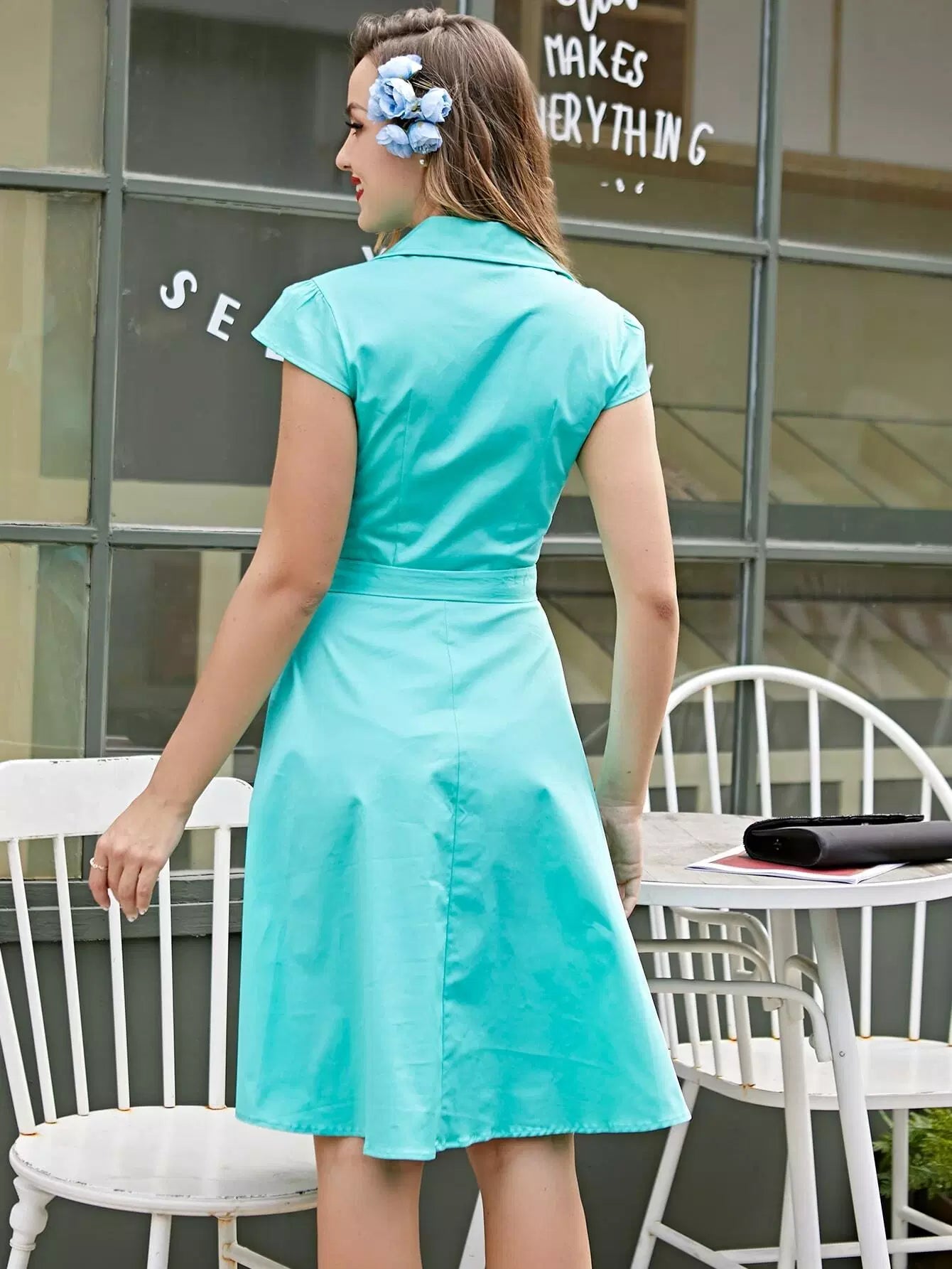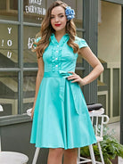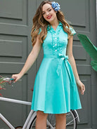 فستان بأزرار أمامية وحواف مكشكشة بدون حزام