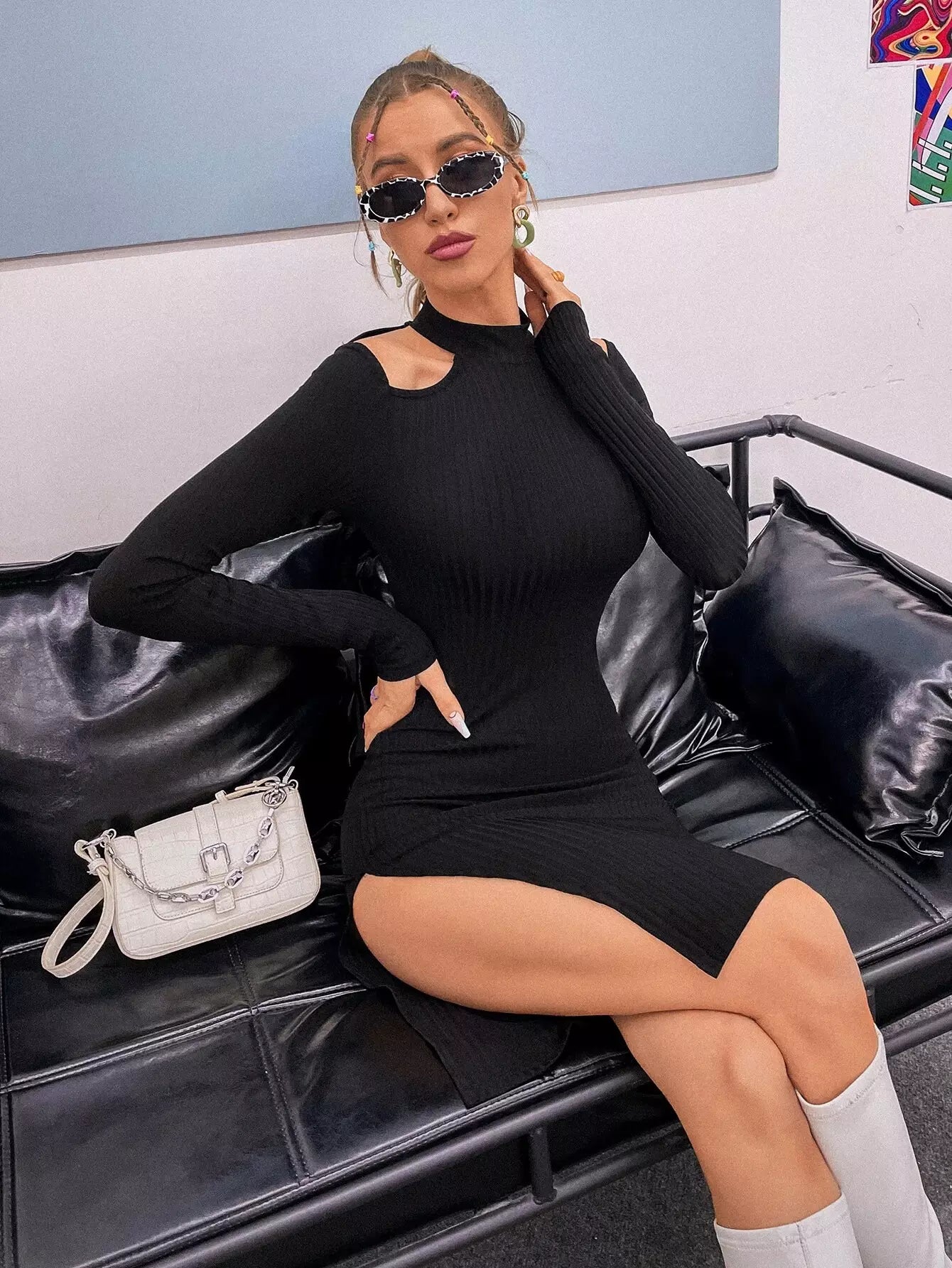 فستان برقبة رقبة رسن بفتحة رقبة مقسمة على الفخذين