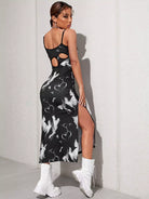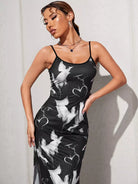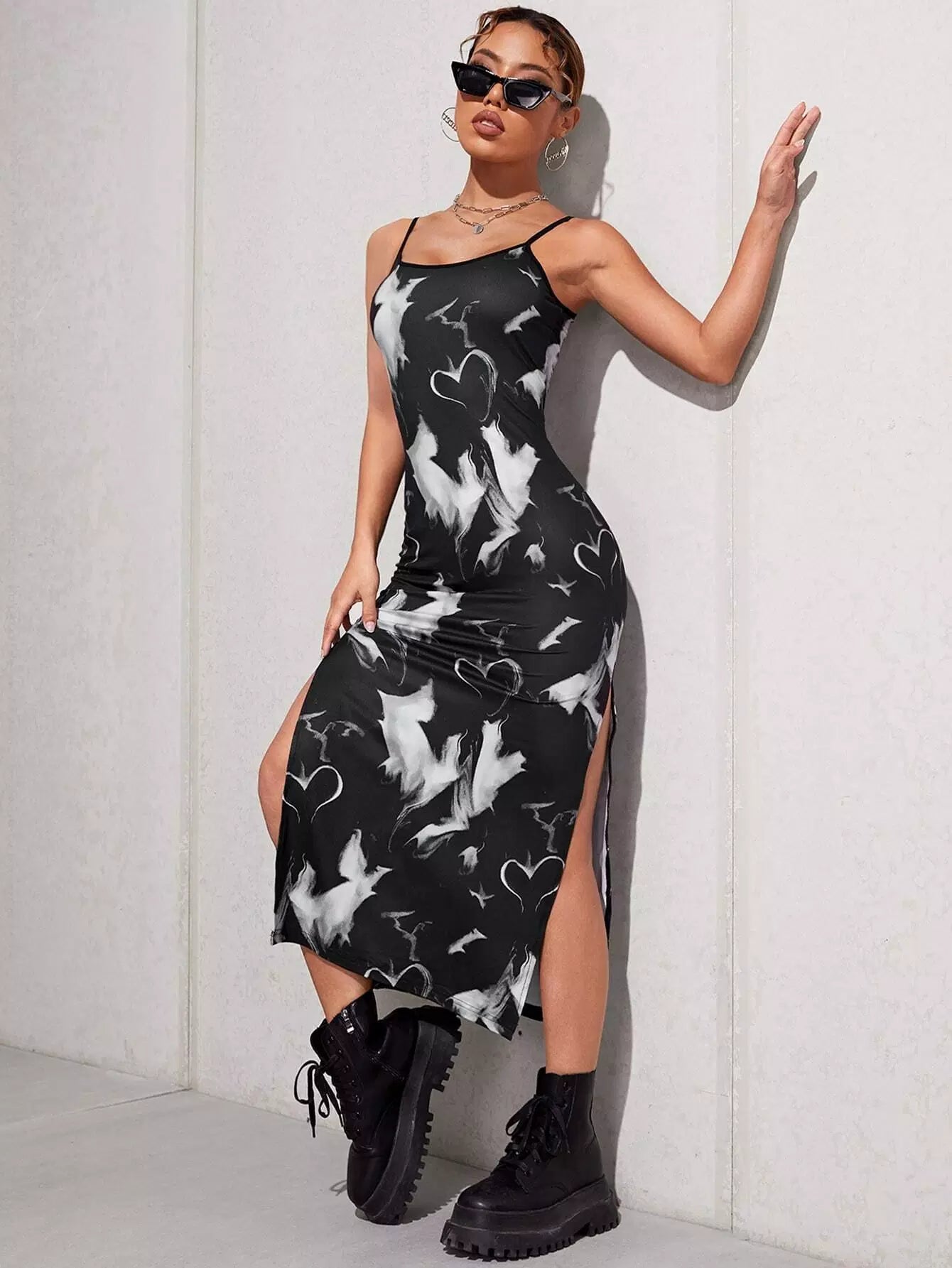 فستان قصير بفتحة منسدلة على الفخذين بطبعة قلب ورسومات
