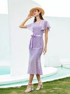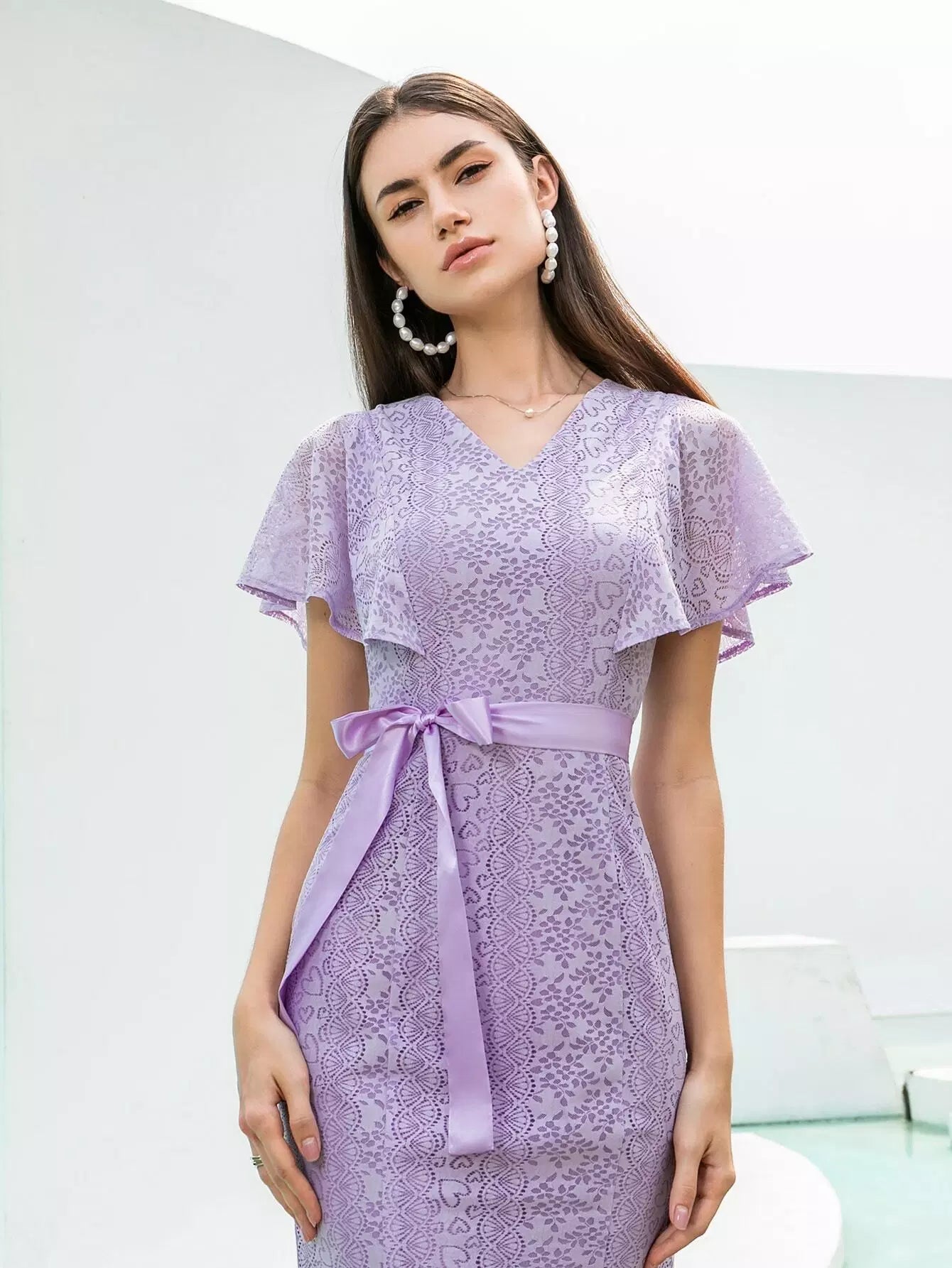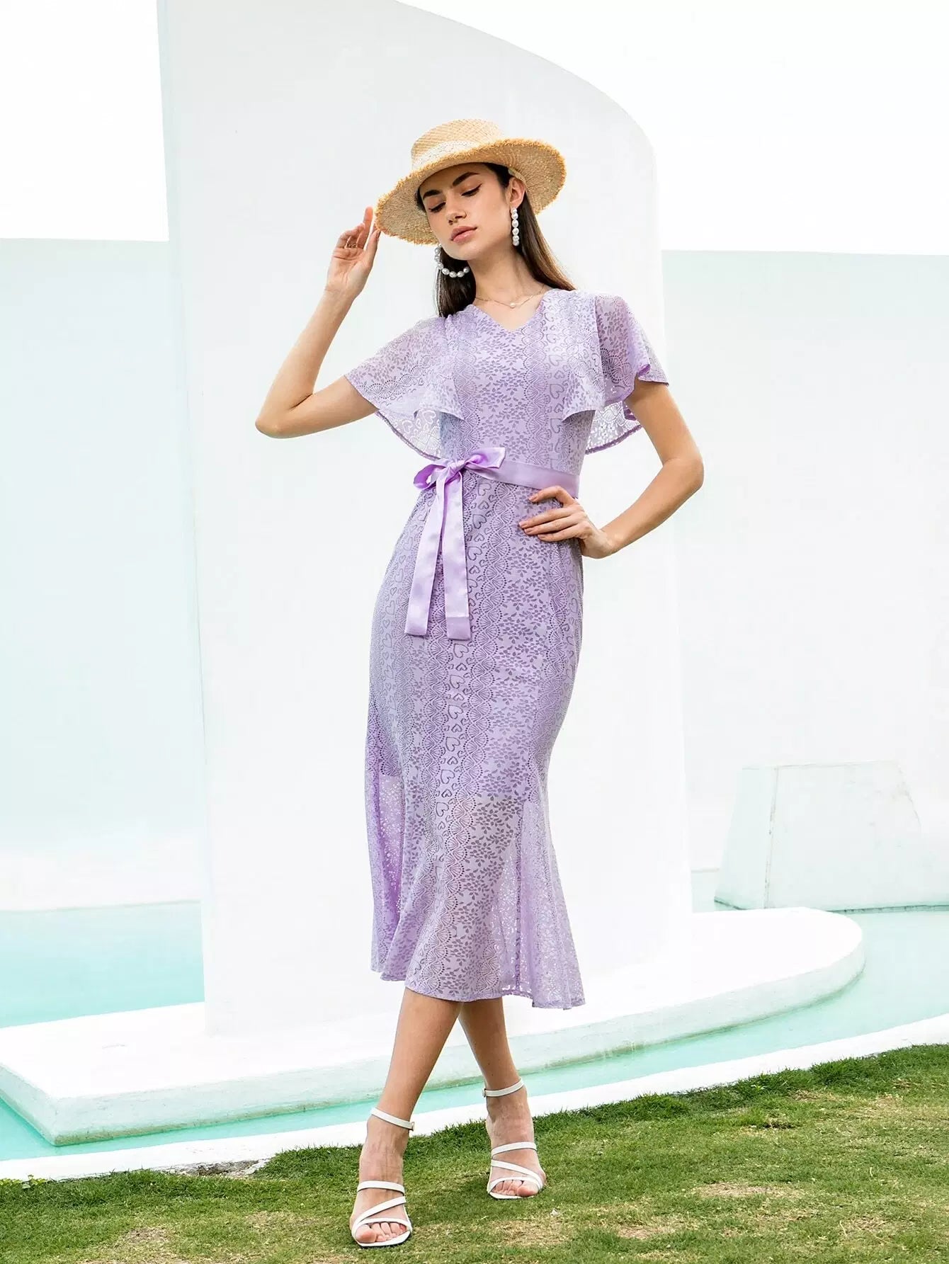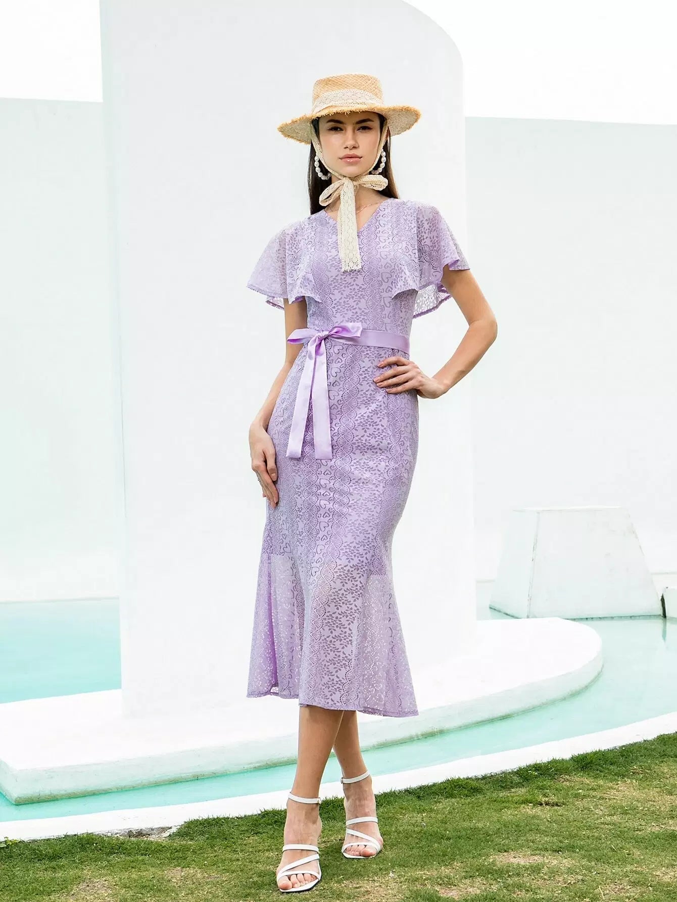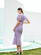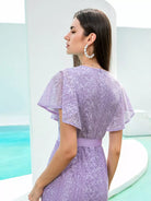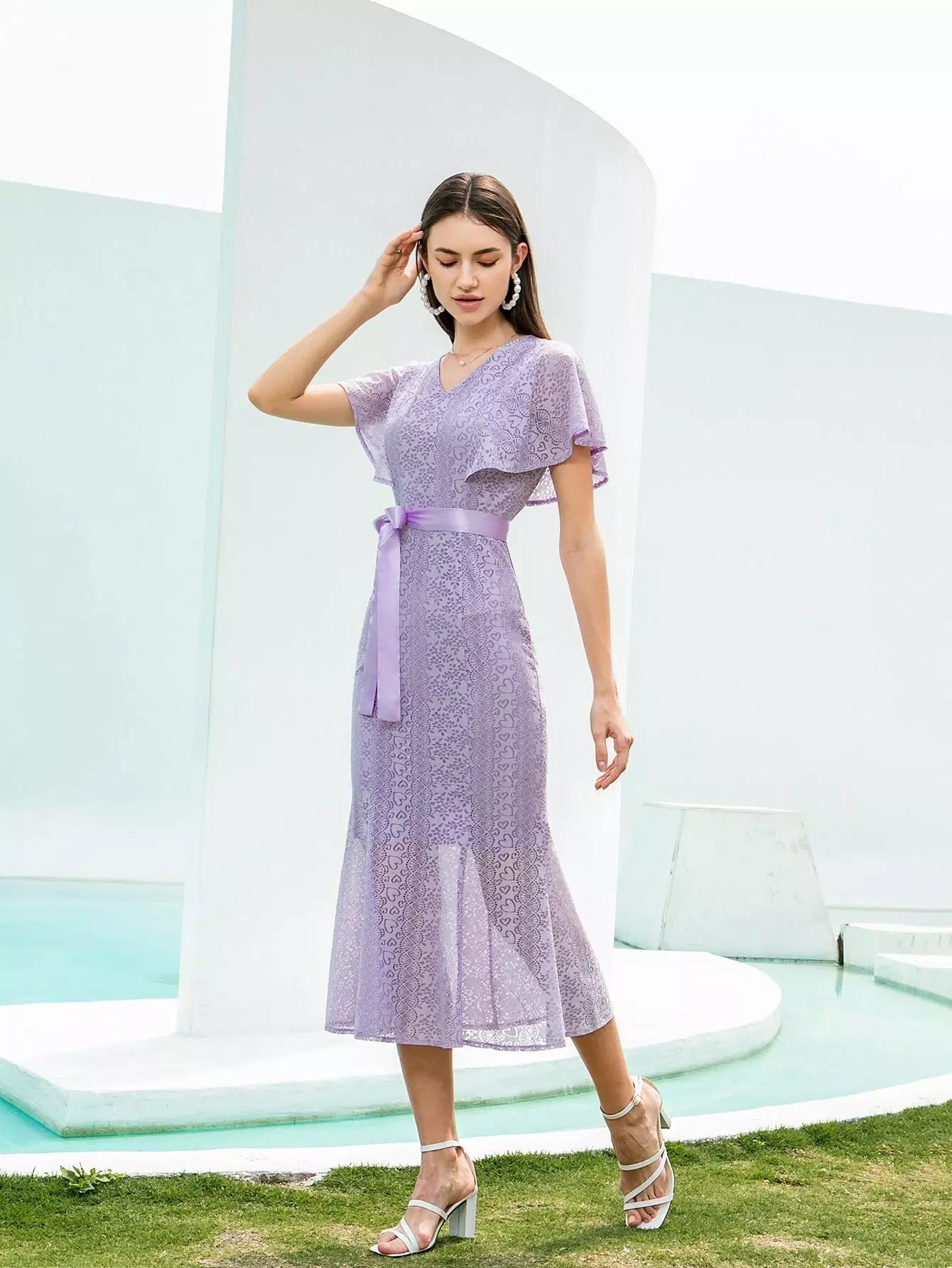 فستان حورية البحر بأكمام فراشة من الدانتيل بدون حزام