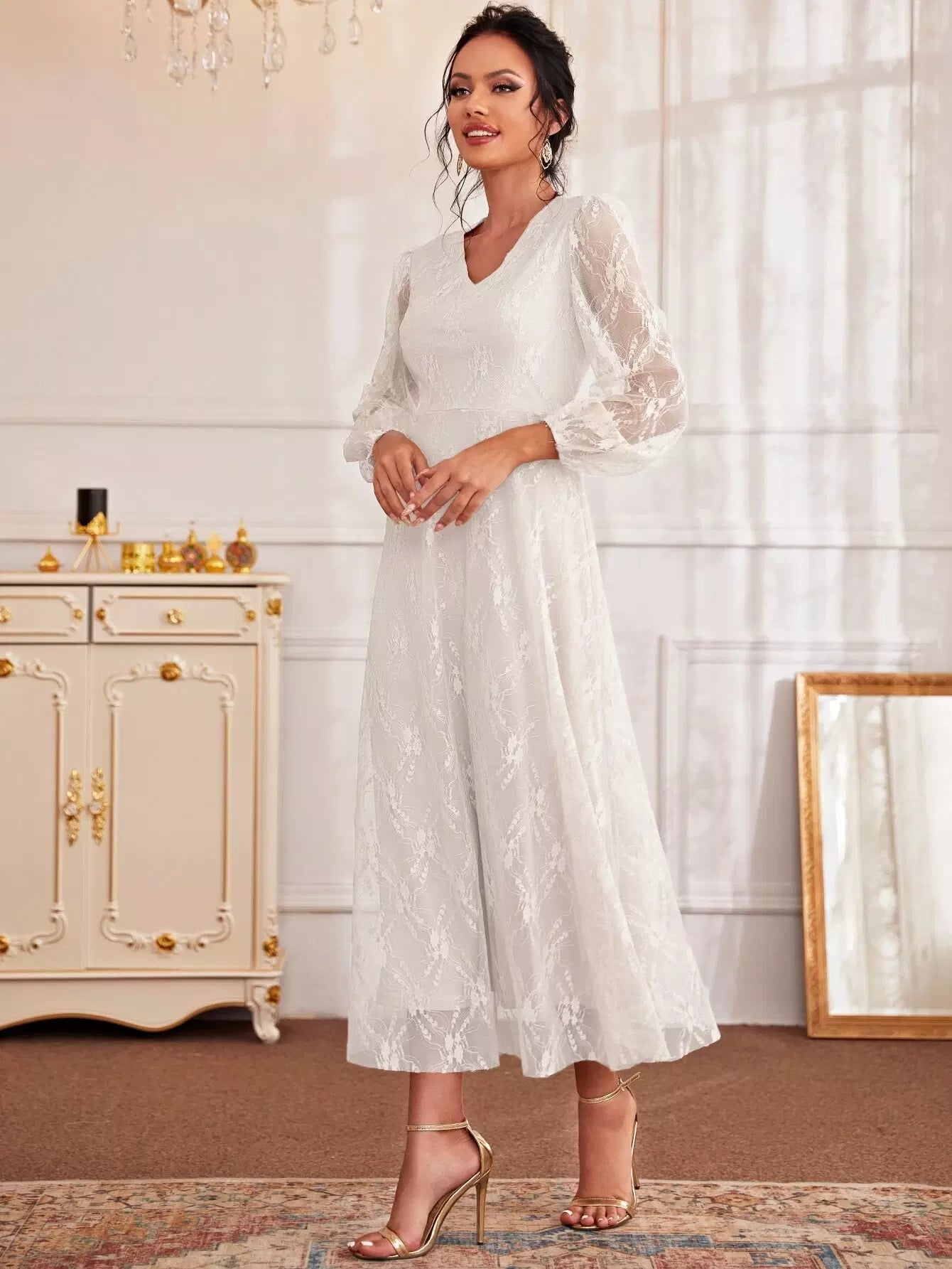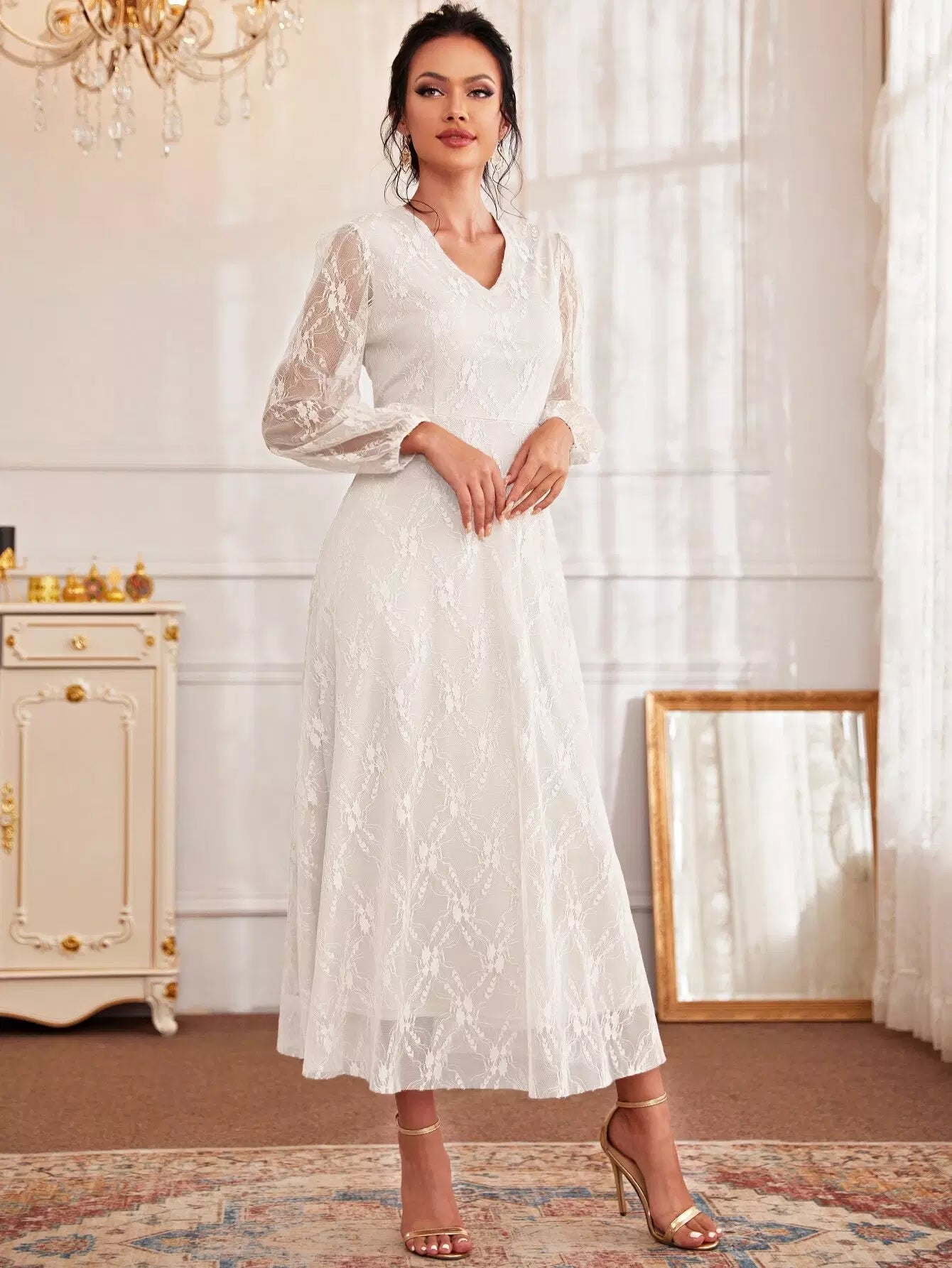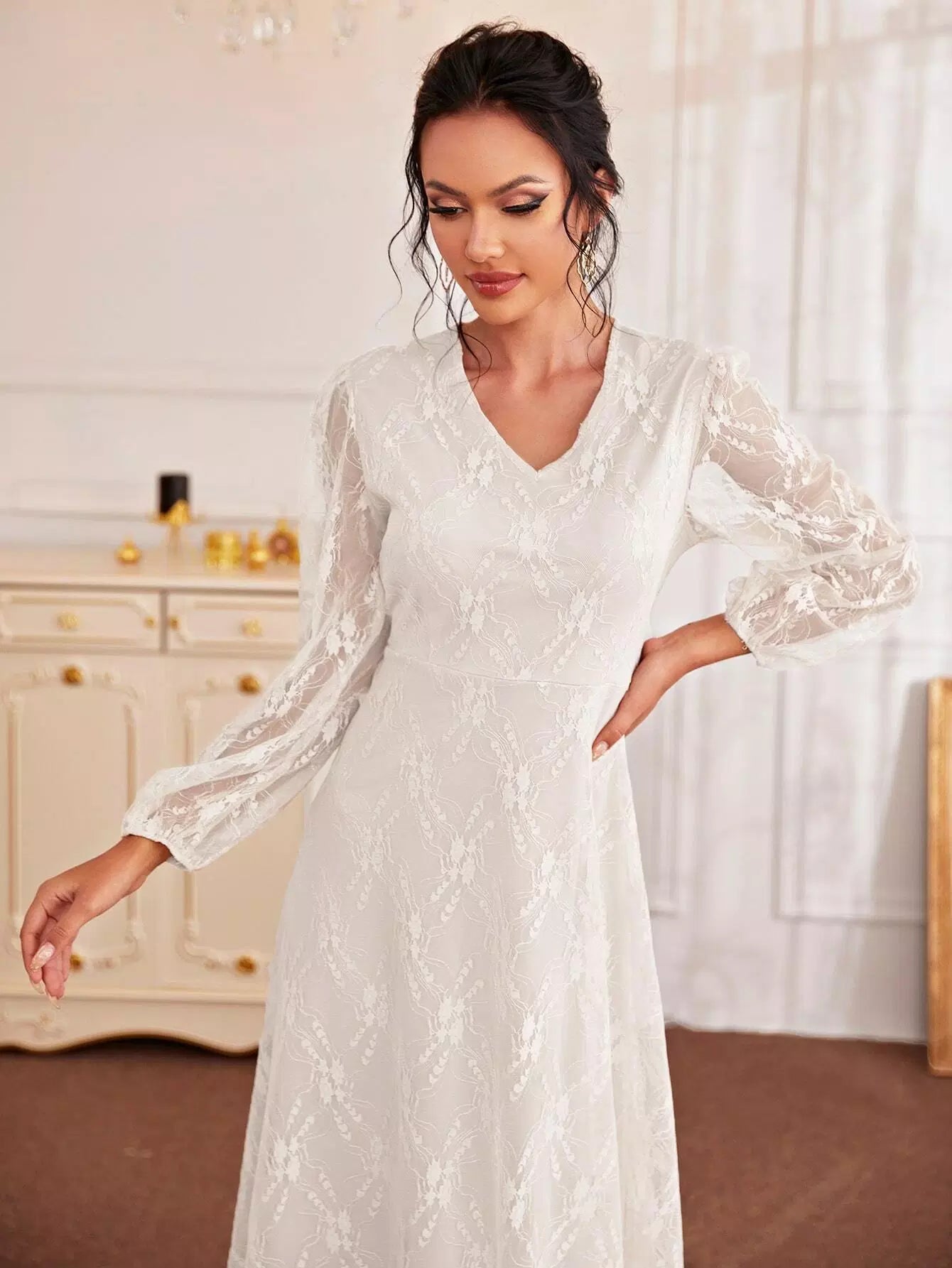 فستان بأكمام دانتيل متراكبة من الدانتيل بأكمام أسقف على شكل حرف A