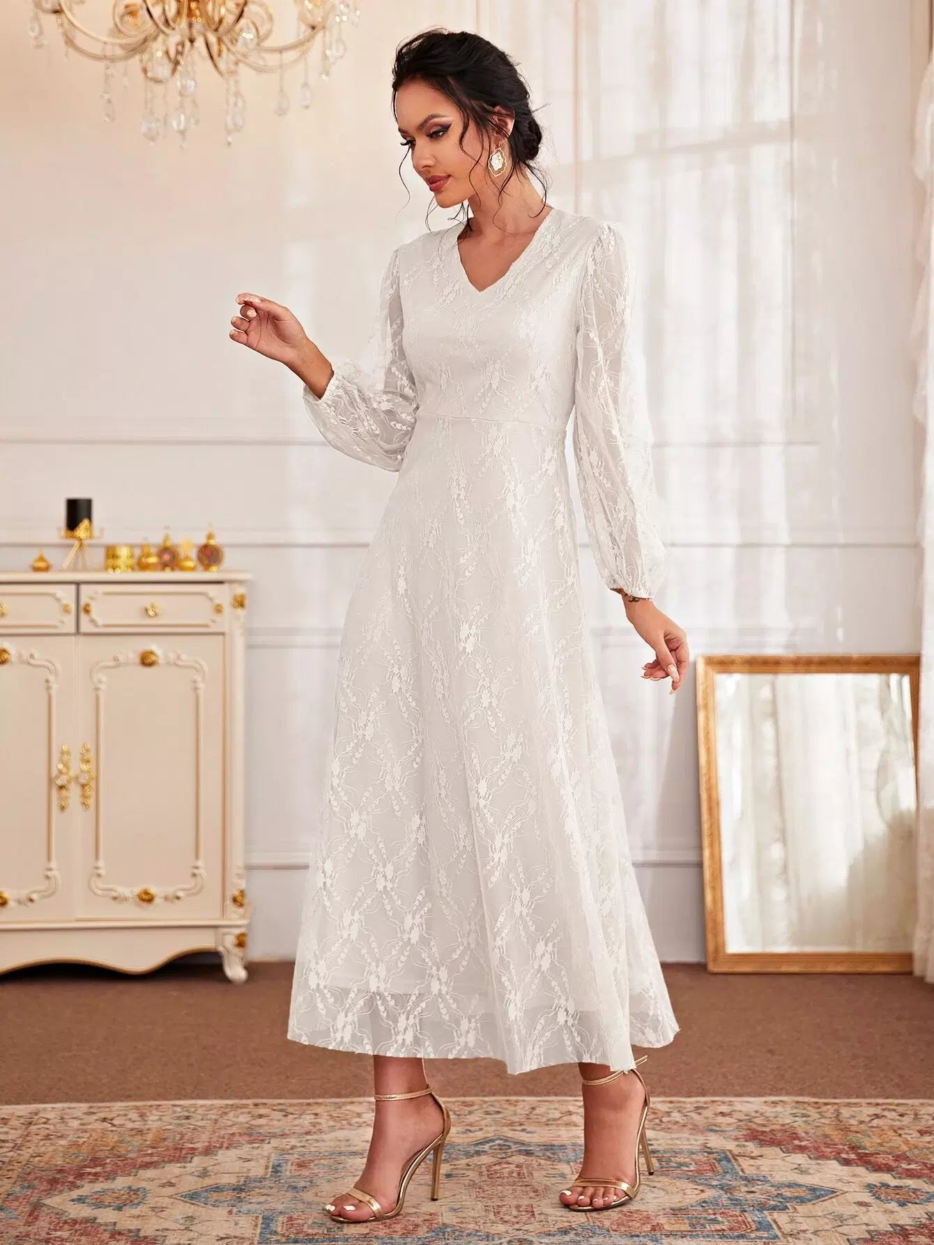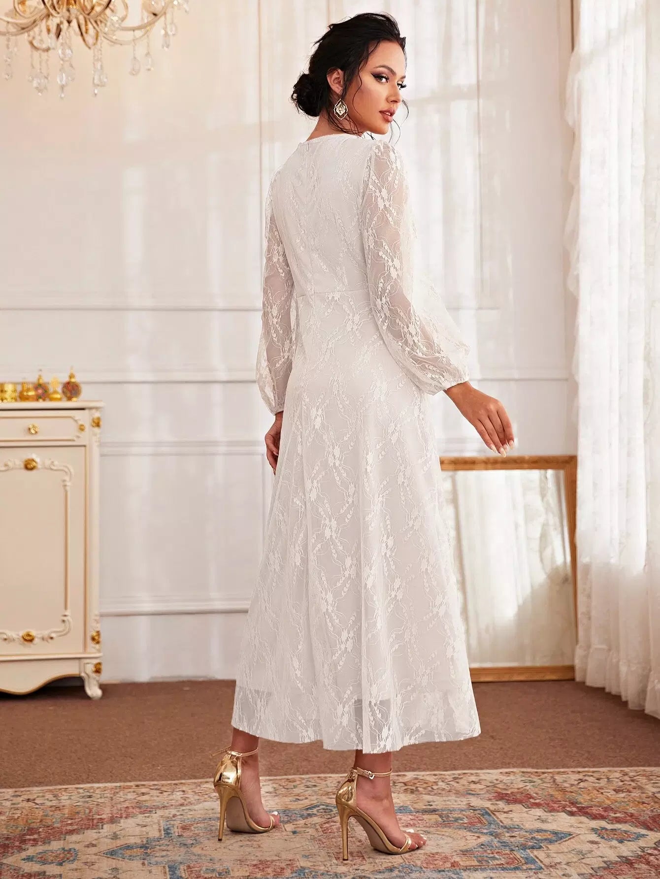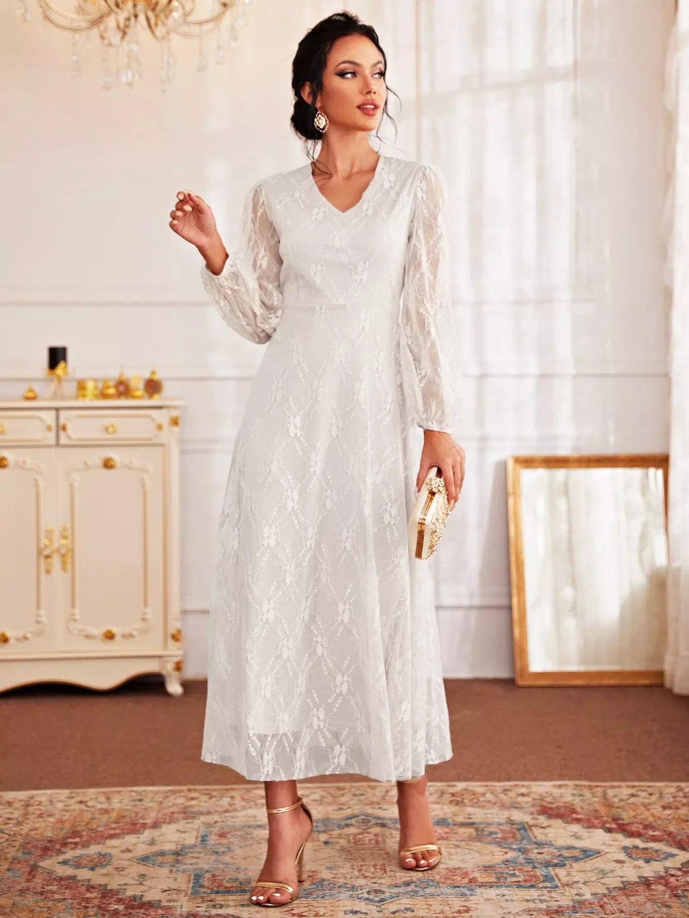 فستان بأكمام دانتيل متراكبة من الدانتيل بأكمام أسقف على شكل حرف A