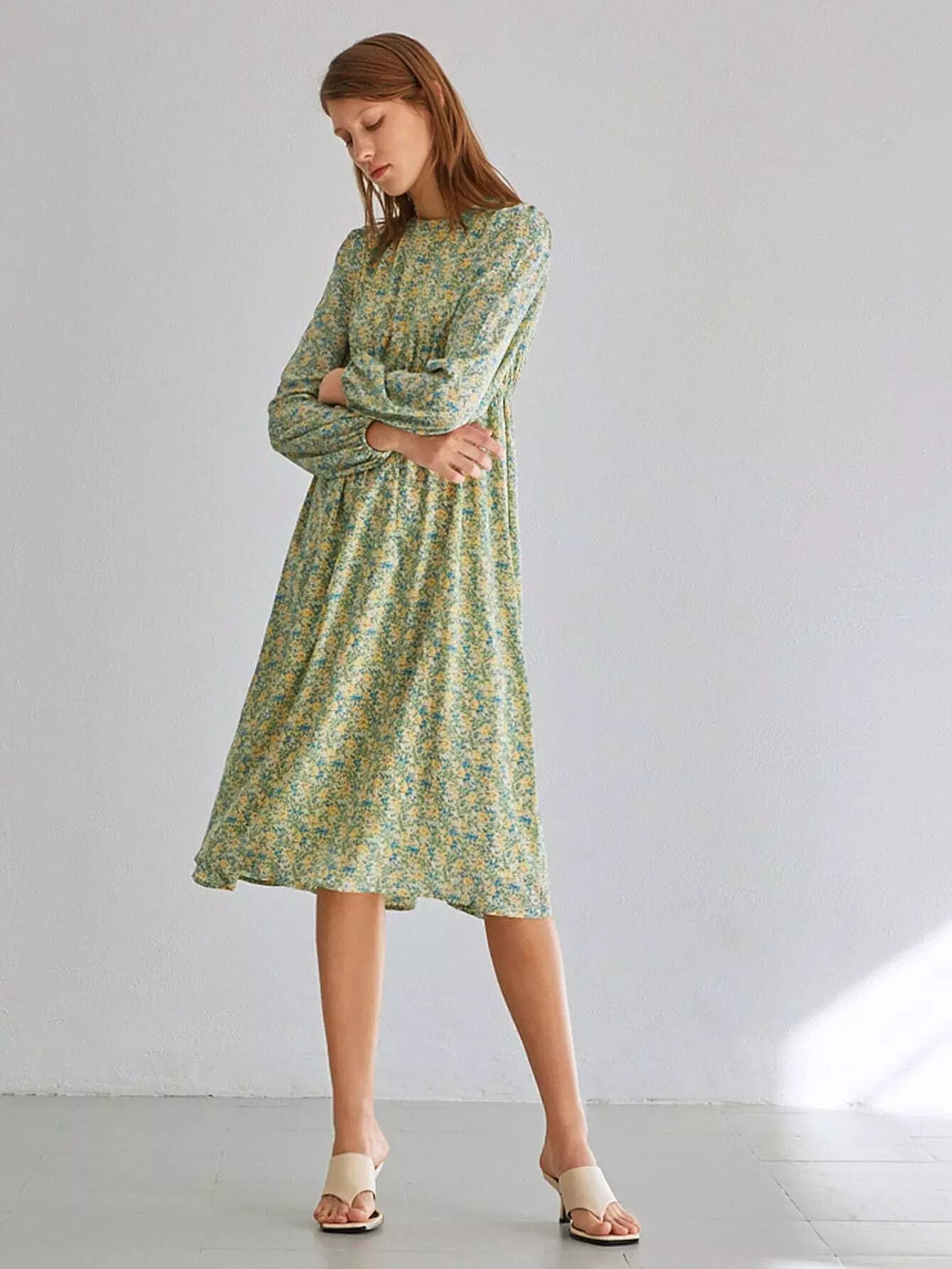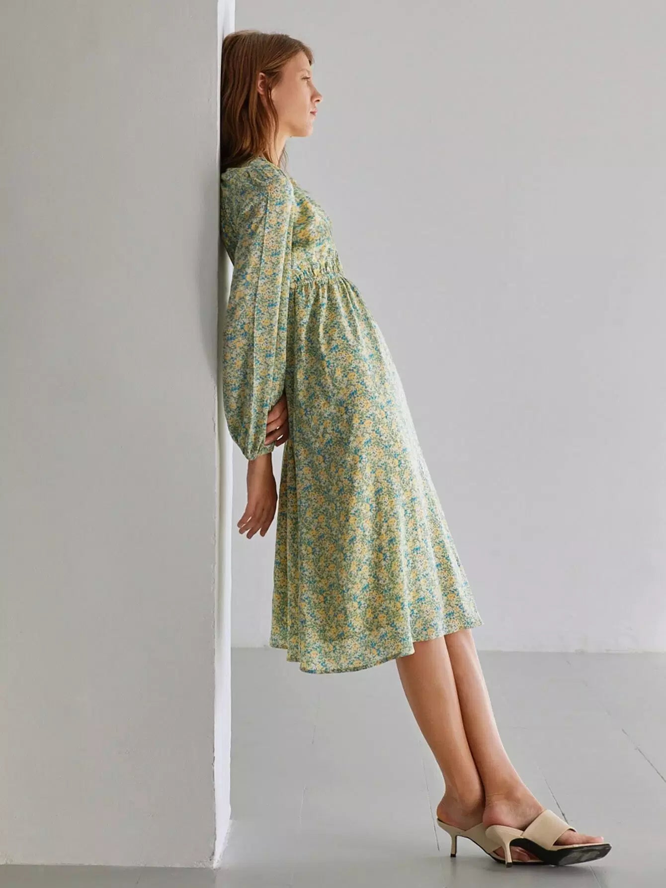 فستان بأكمام فانوس بأزهار ديتسي