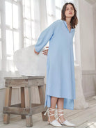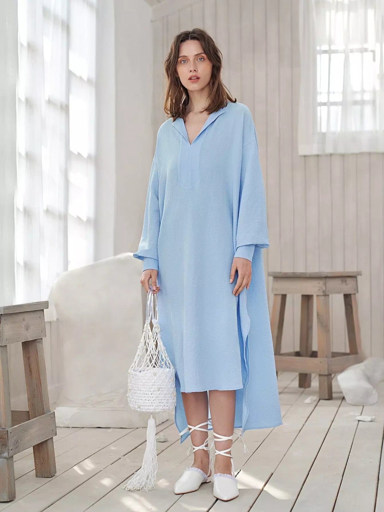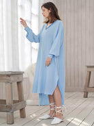فستان بأكمام فانوس بأكمام منخفضة عالية الحافة