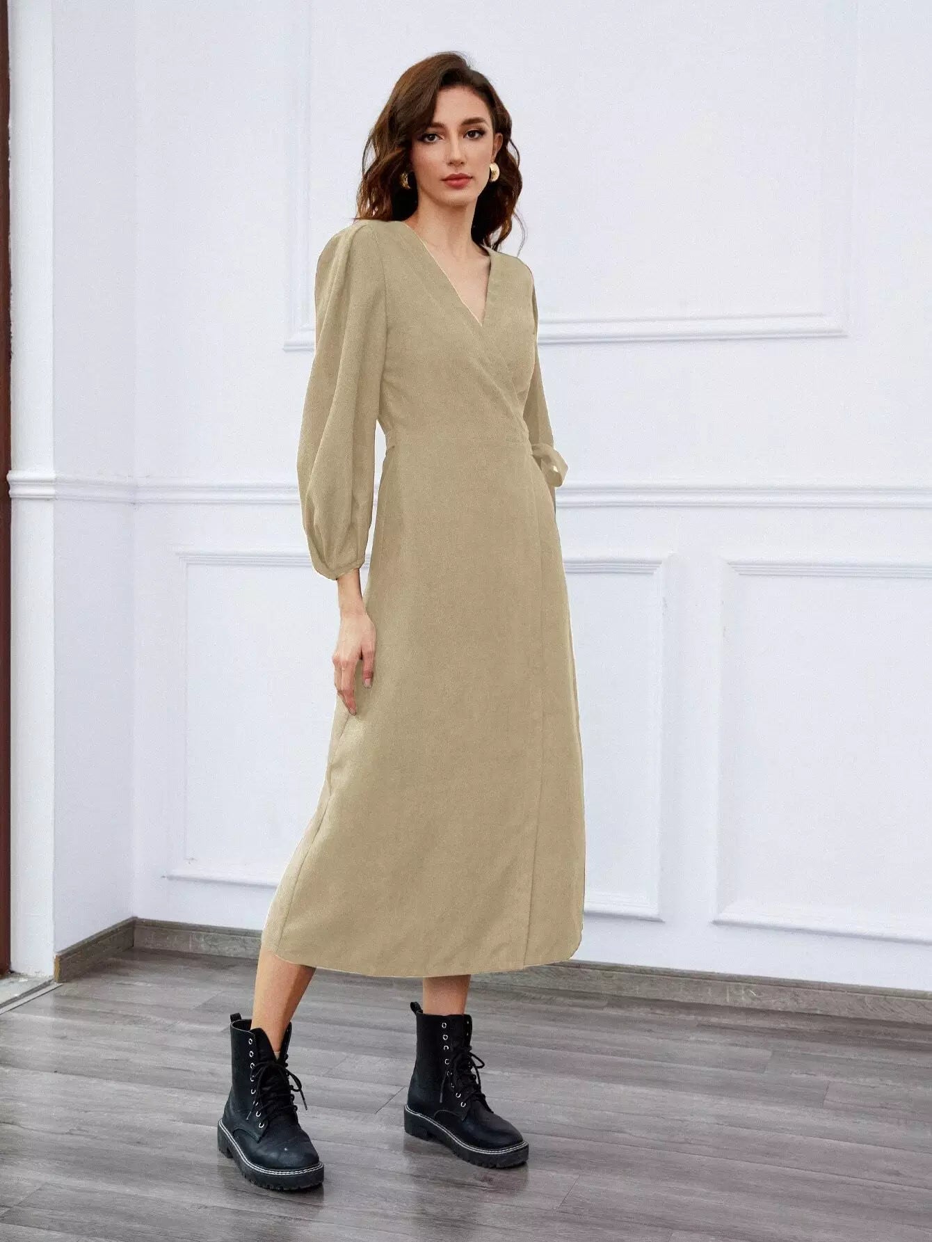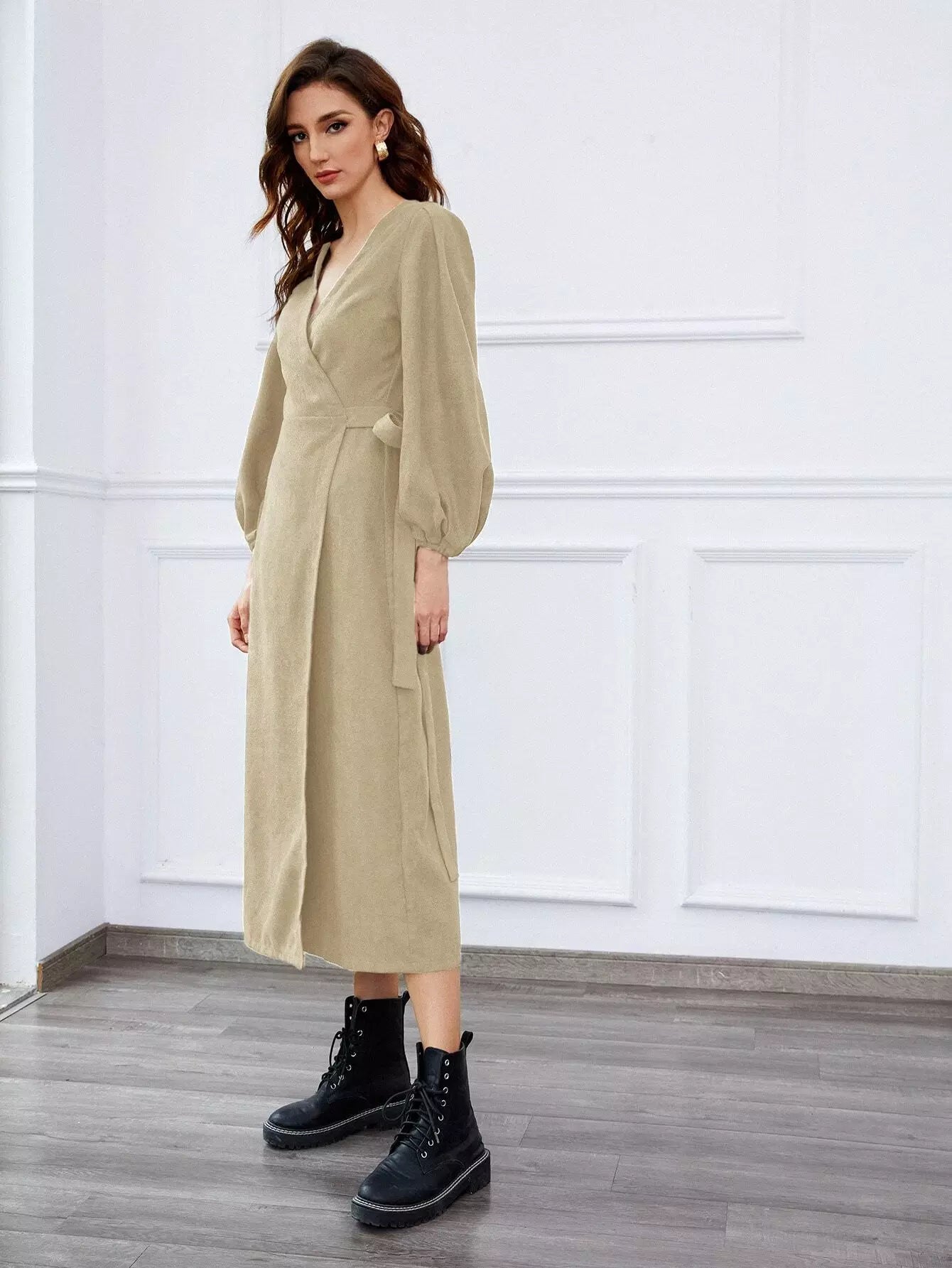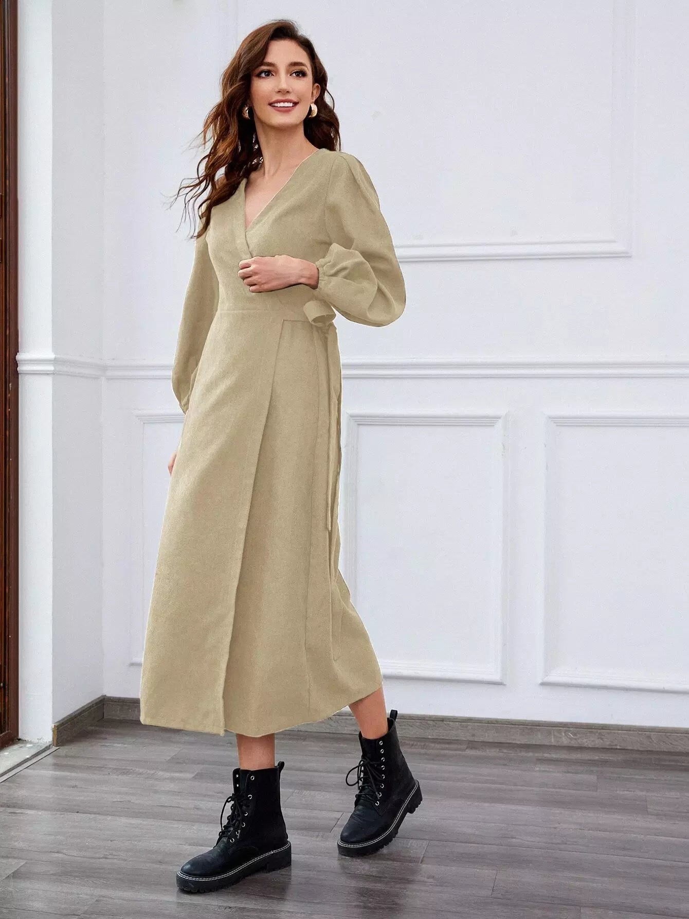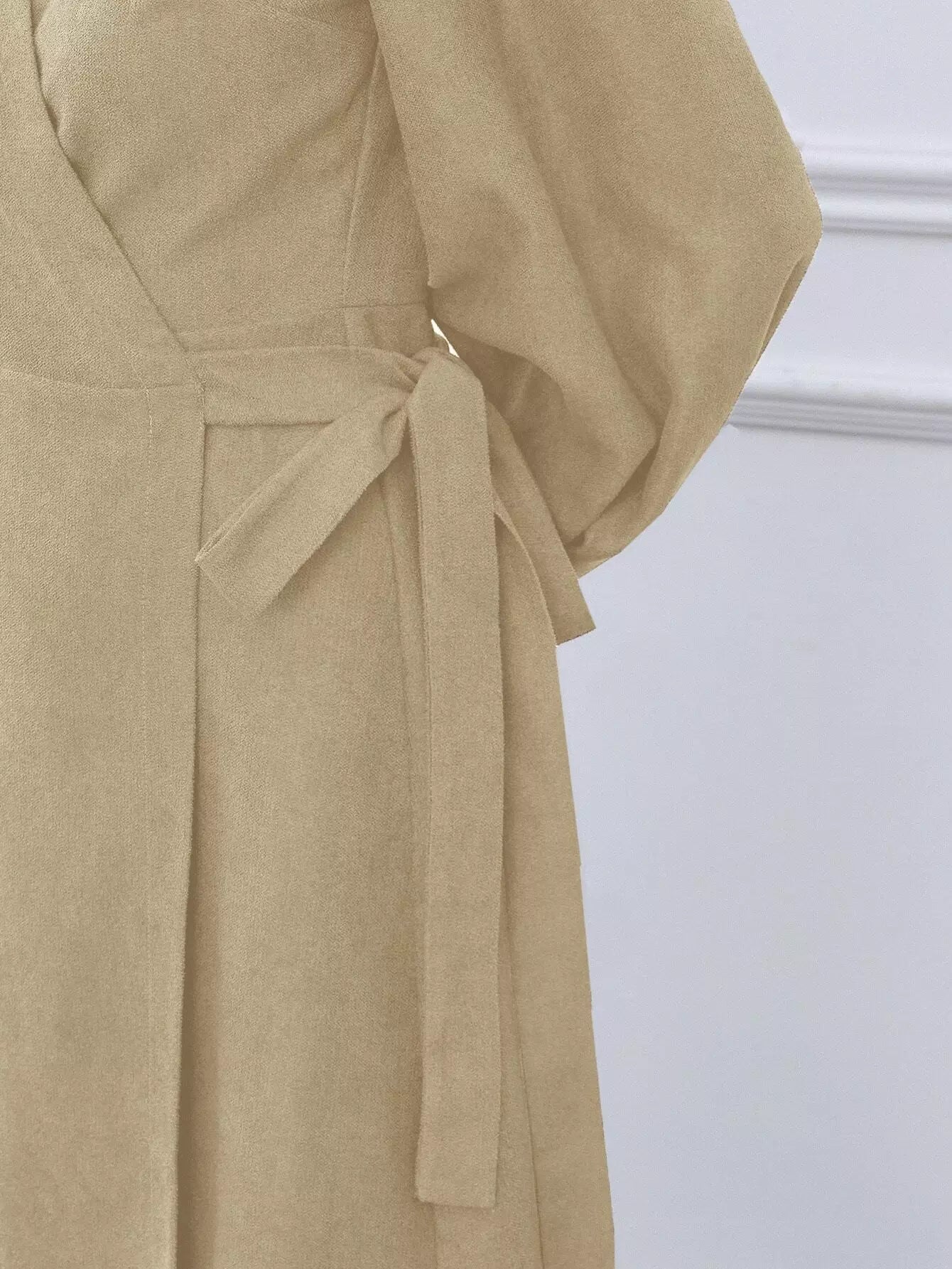 فستان سوربليس بأكمام فانوس وعقدة جانبية