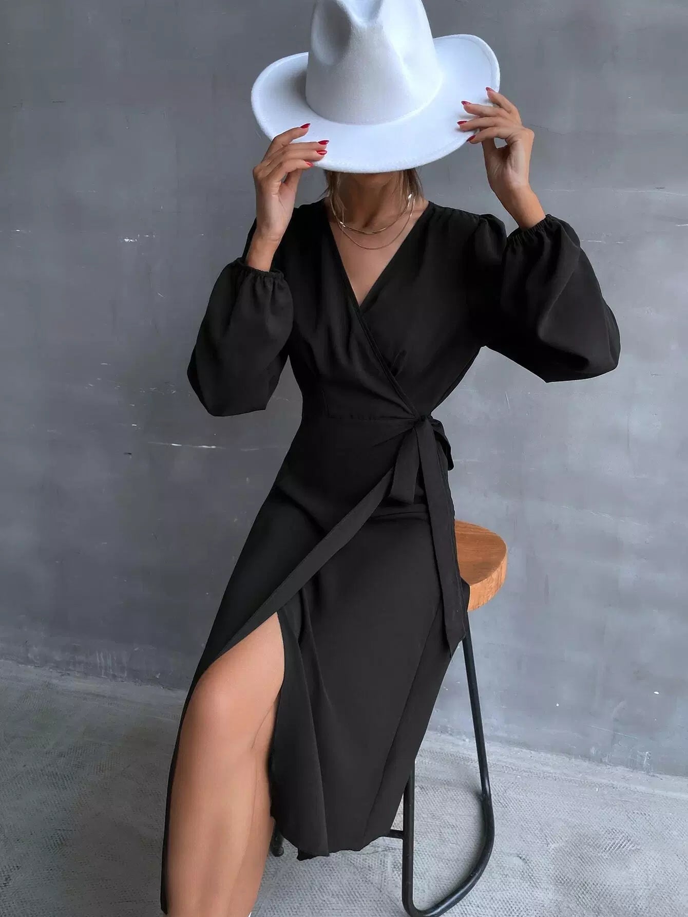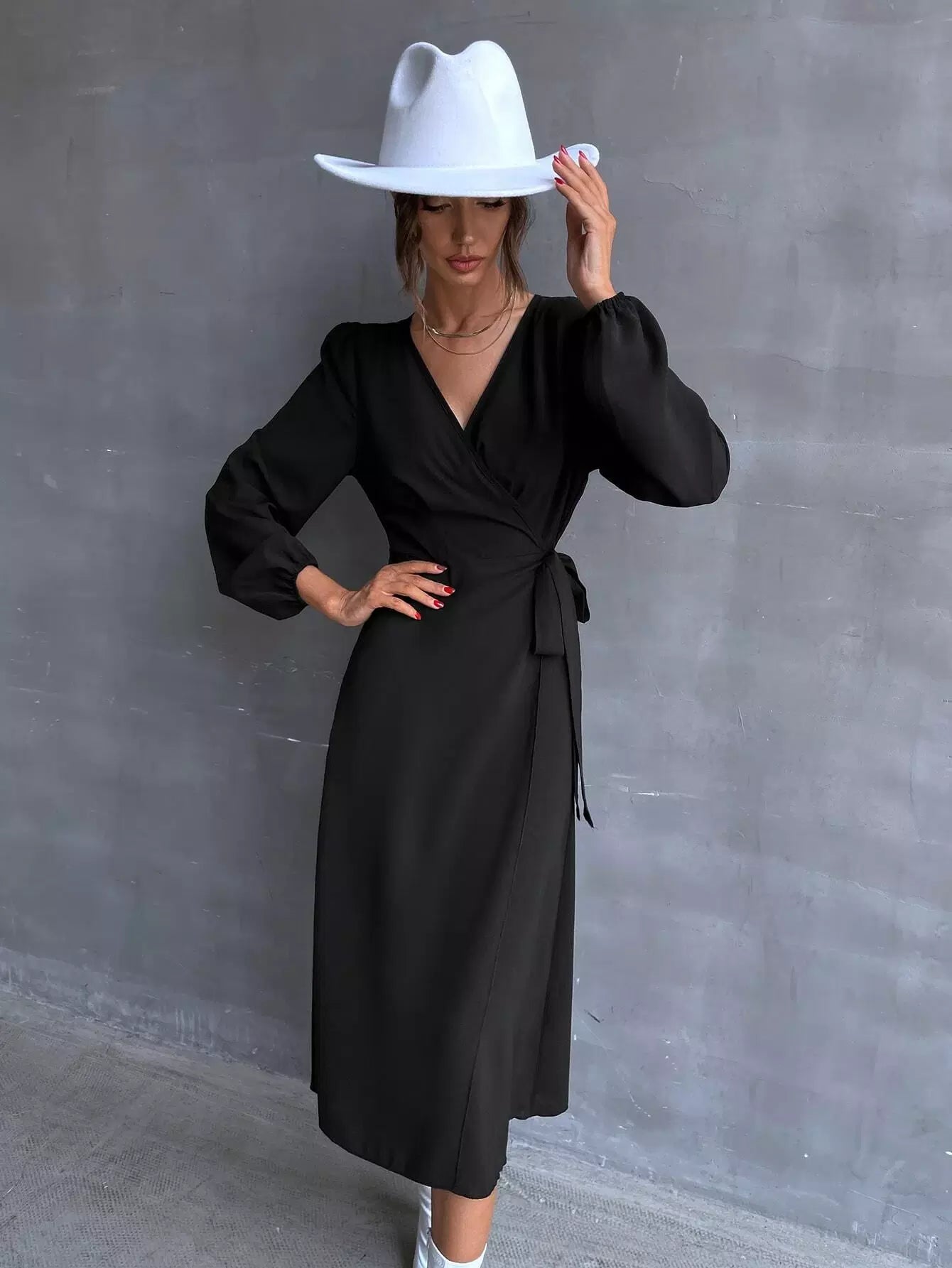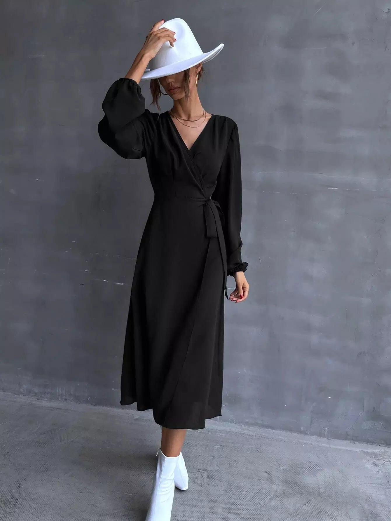 فستان بأكمام فانوس بأربطة جانبية ملفوفة بربطة عنق