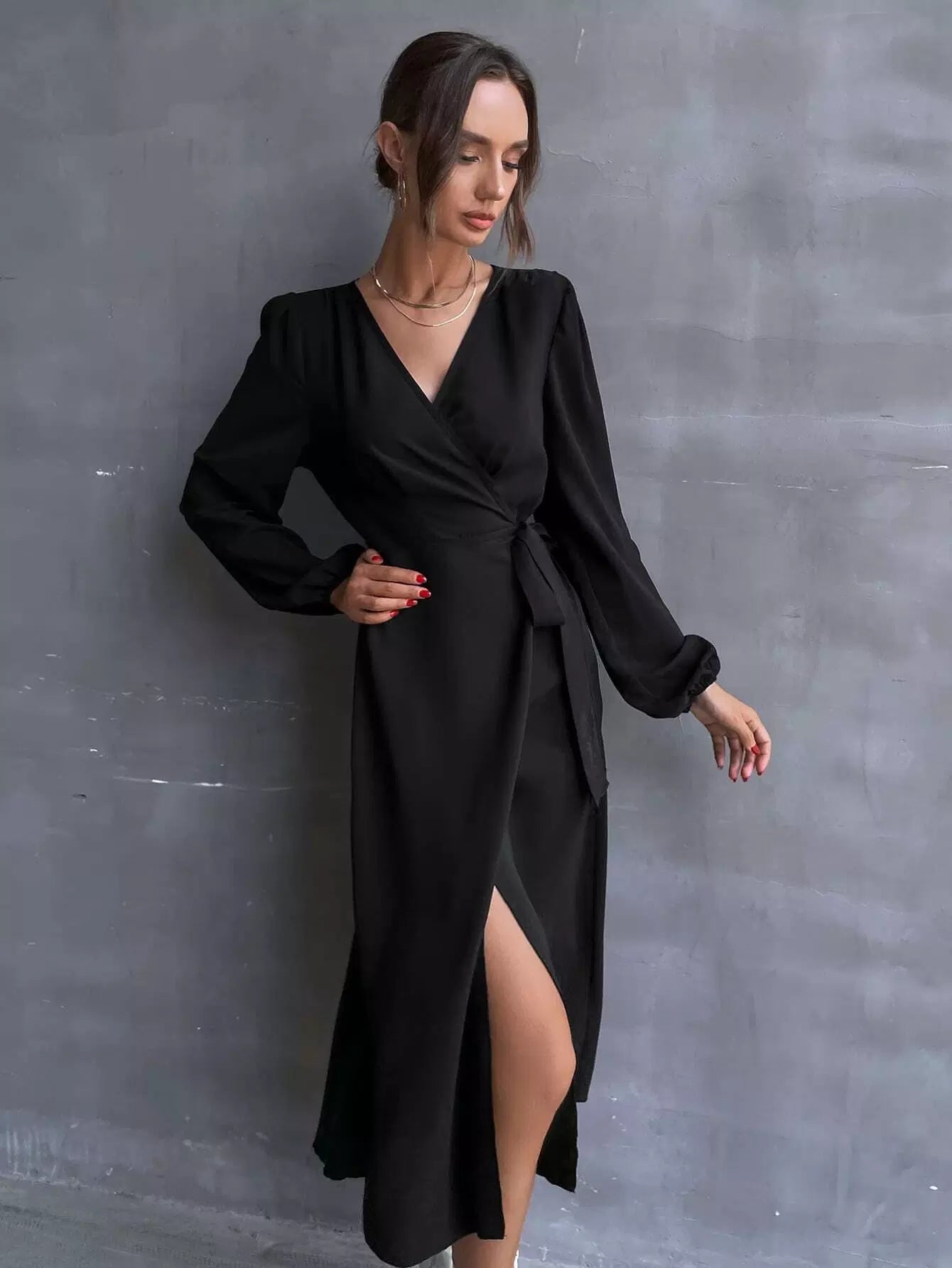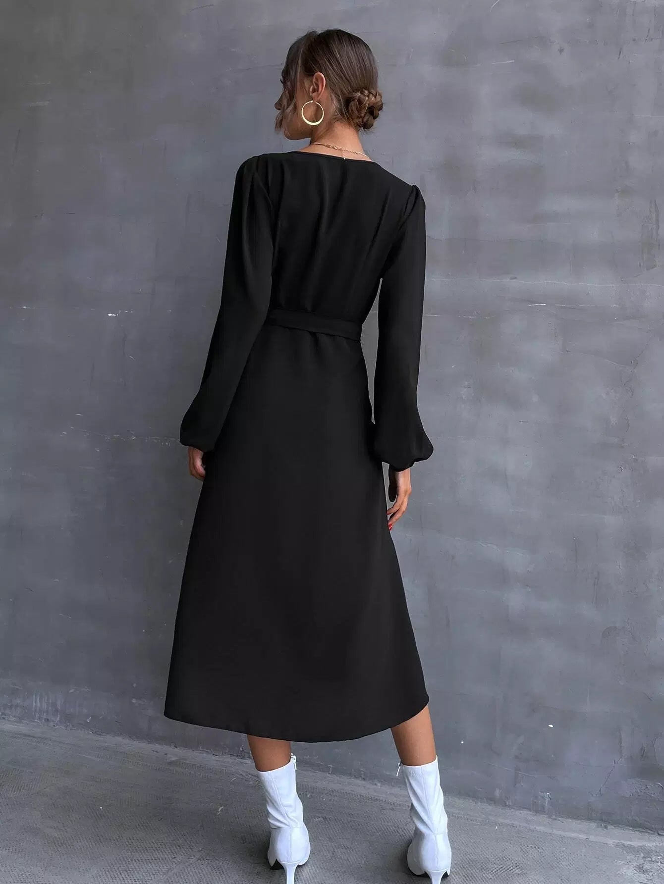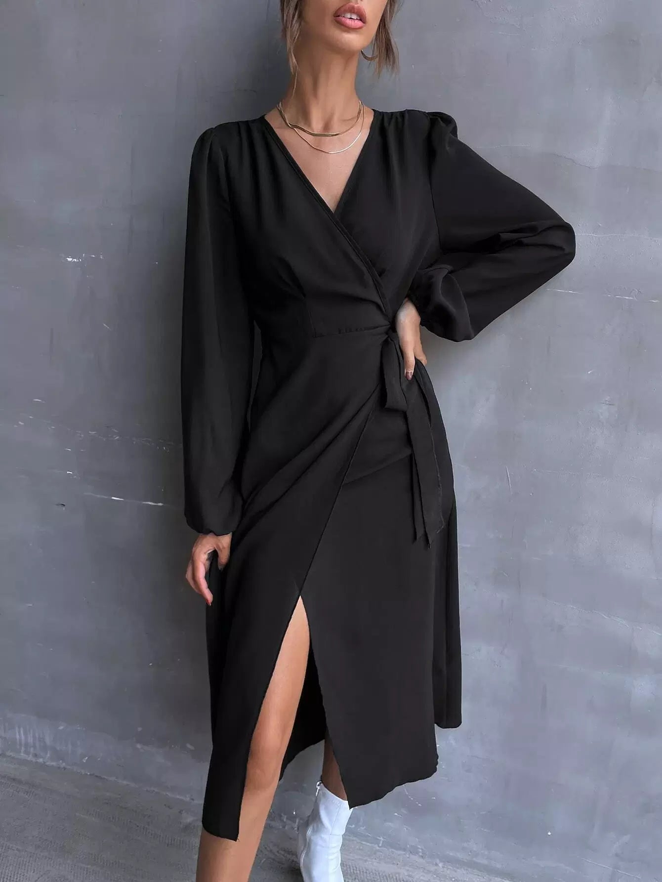 فستان بأكمام فانوس بأربطة جانبية ملفوفة بربطة عنق