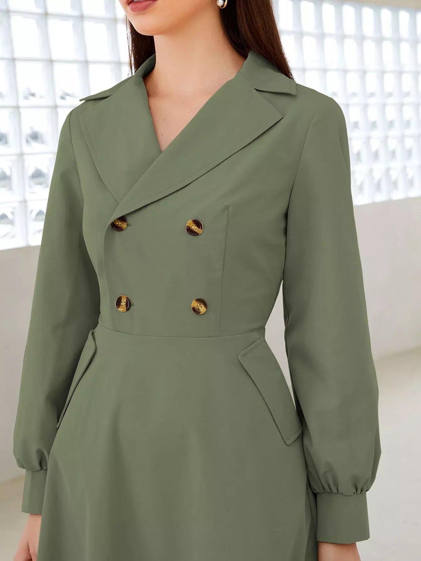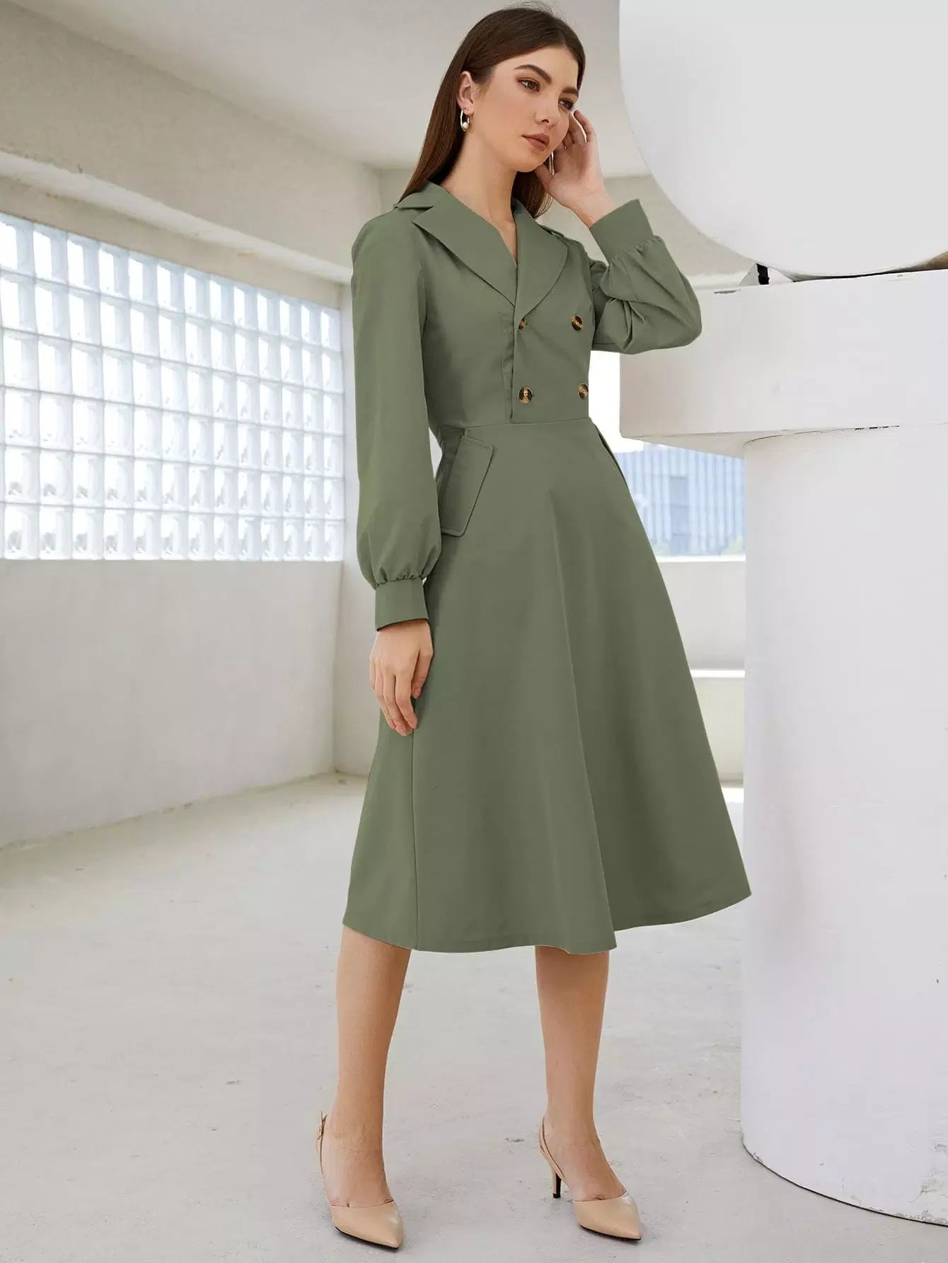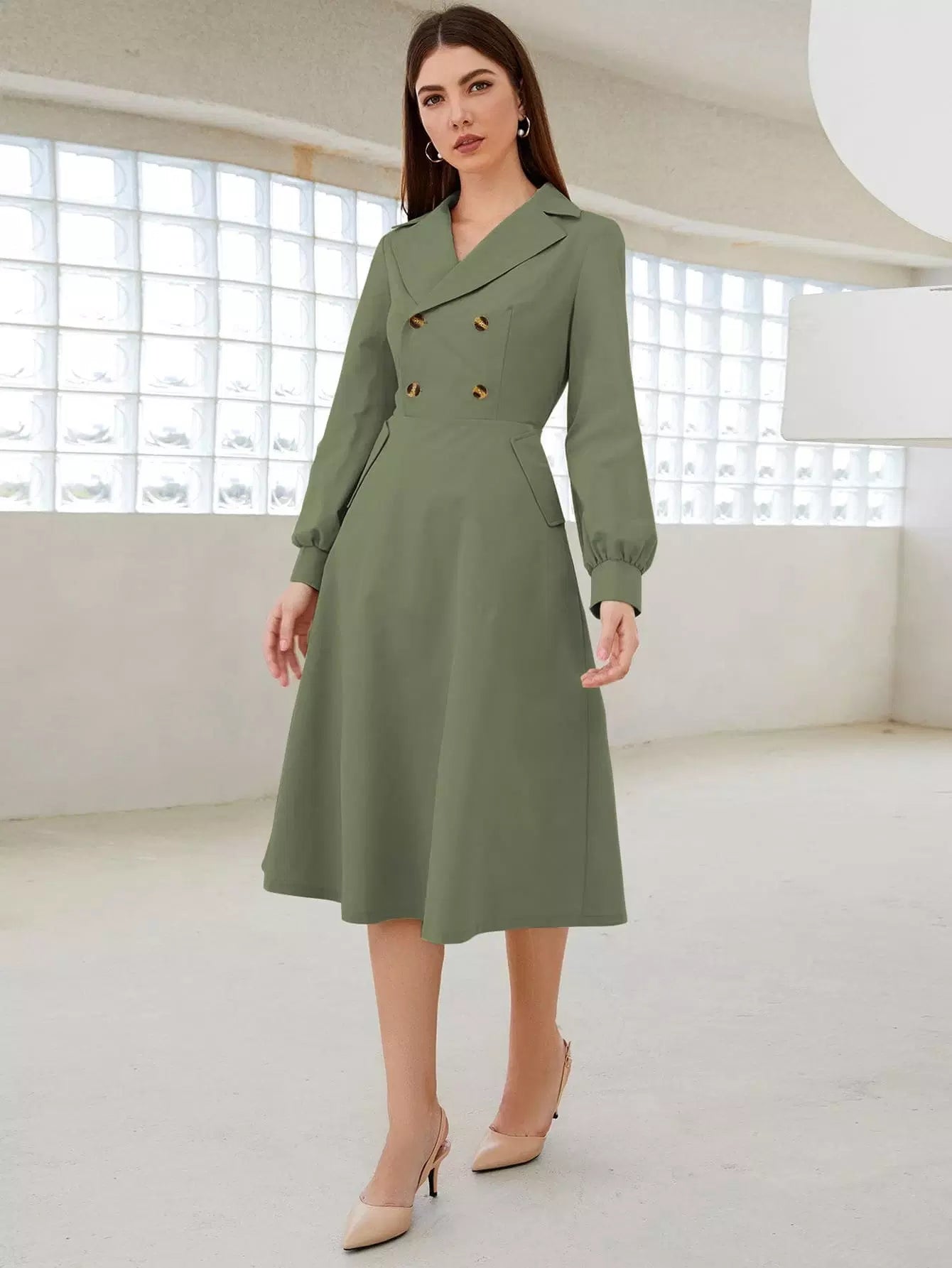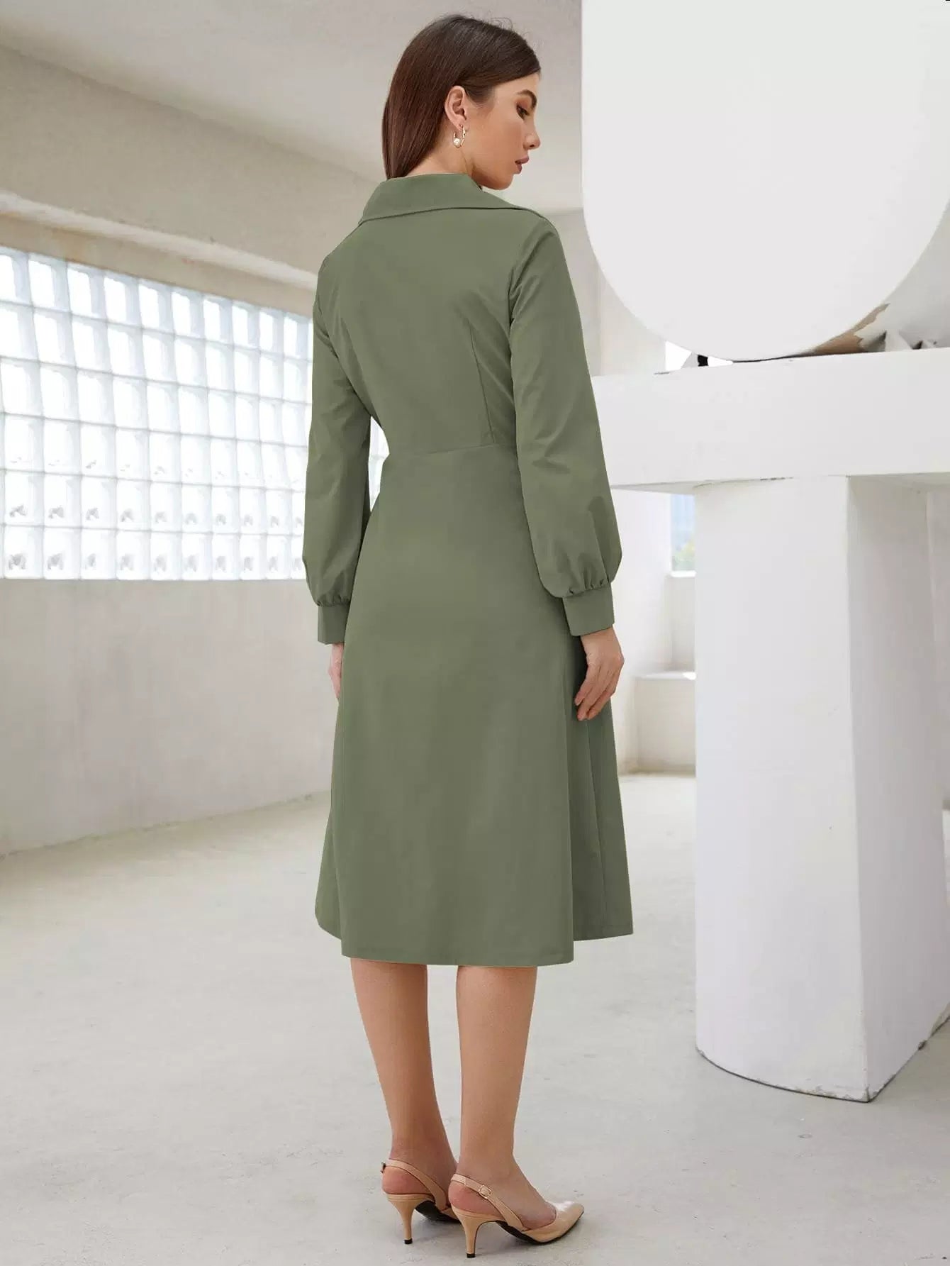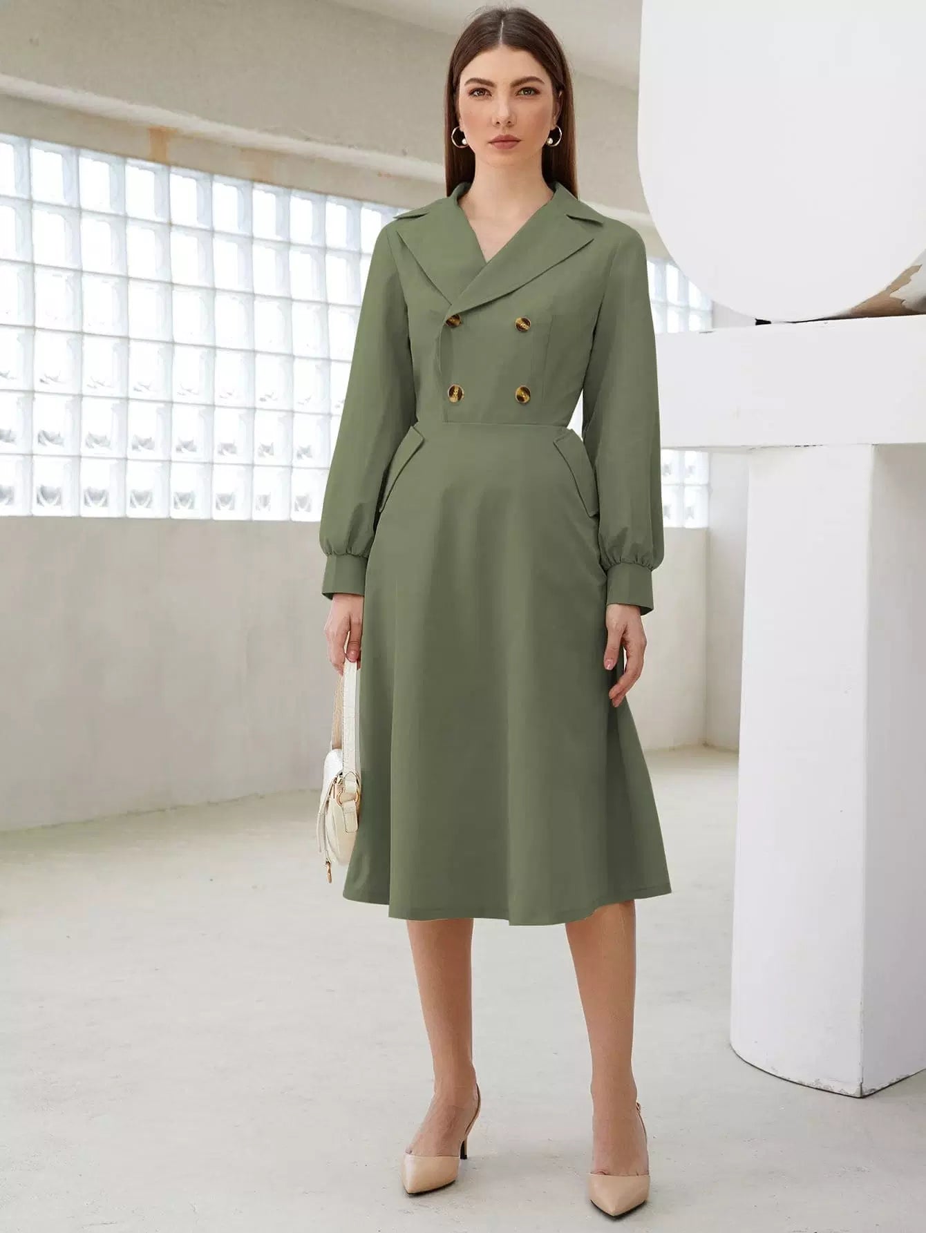 فستان قميص بياقة على الياقة مزدوج الصدر
