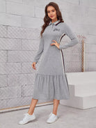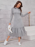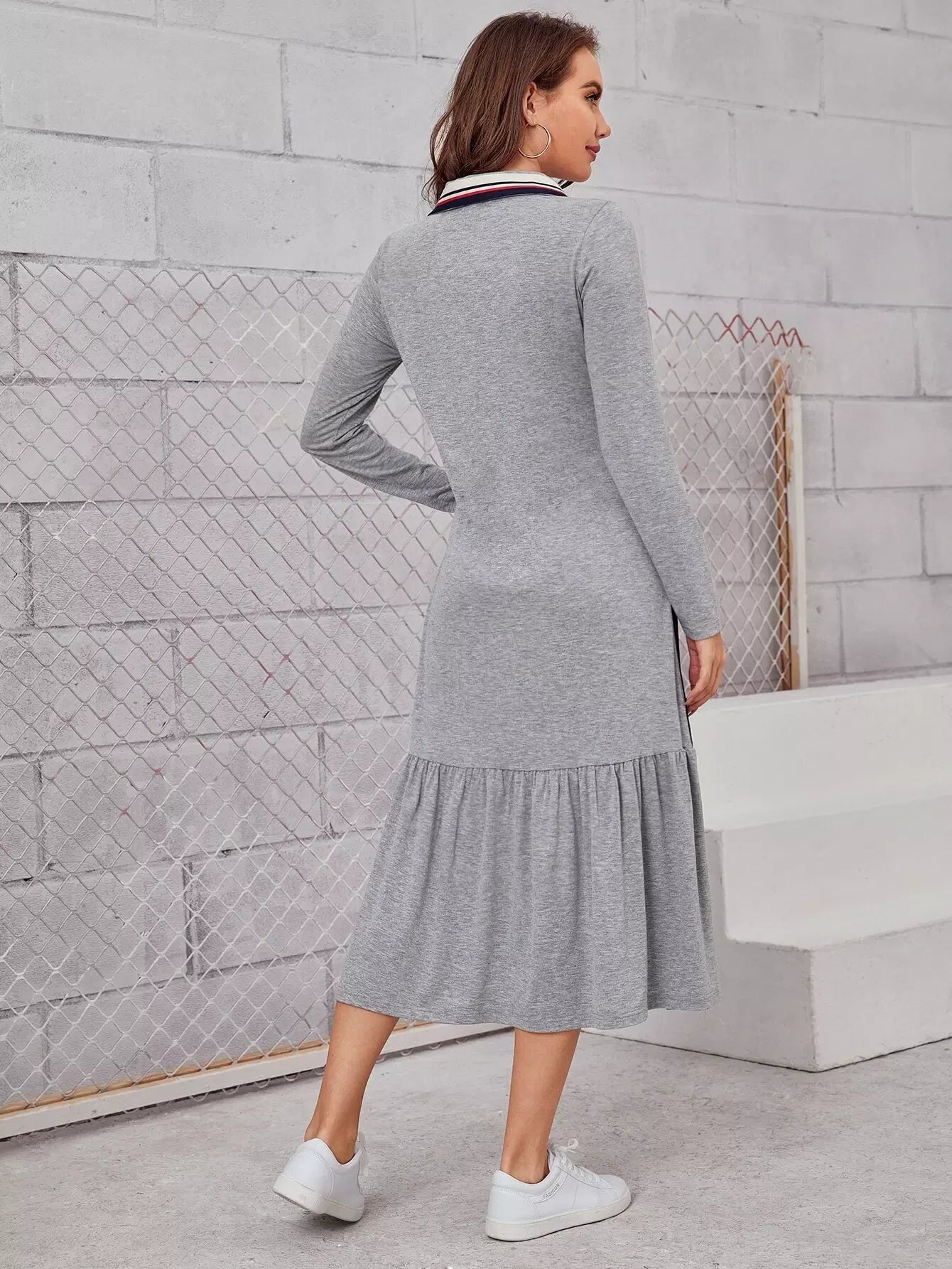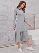 فستان مطرز بتطريز حروف جانبية مخططة على الحافة الكشكشة