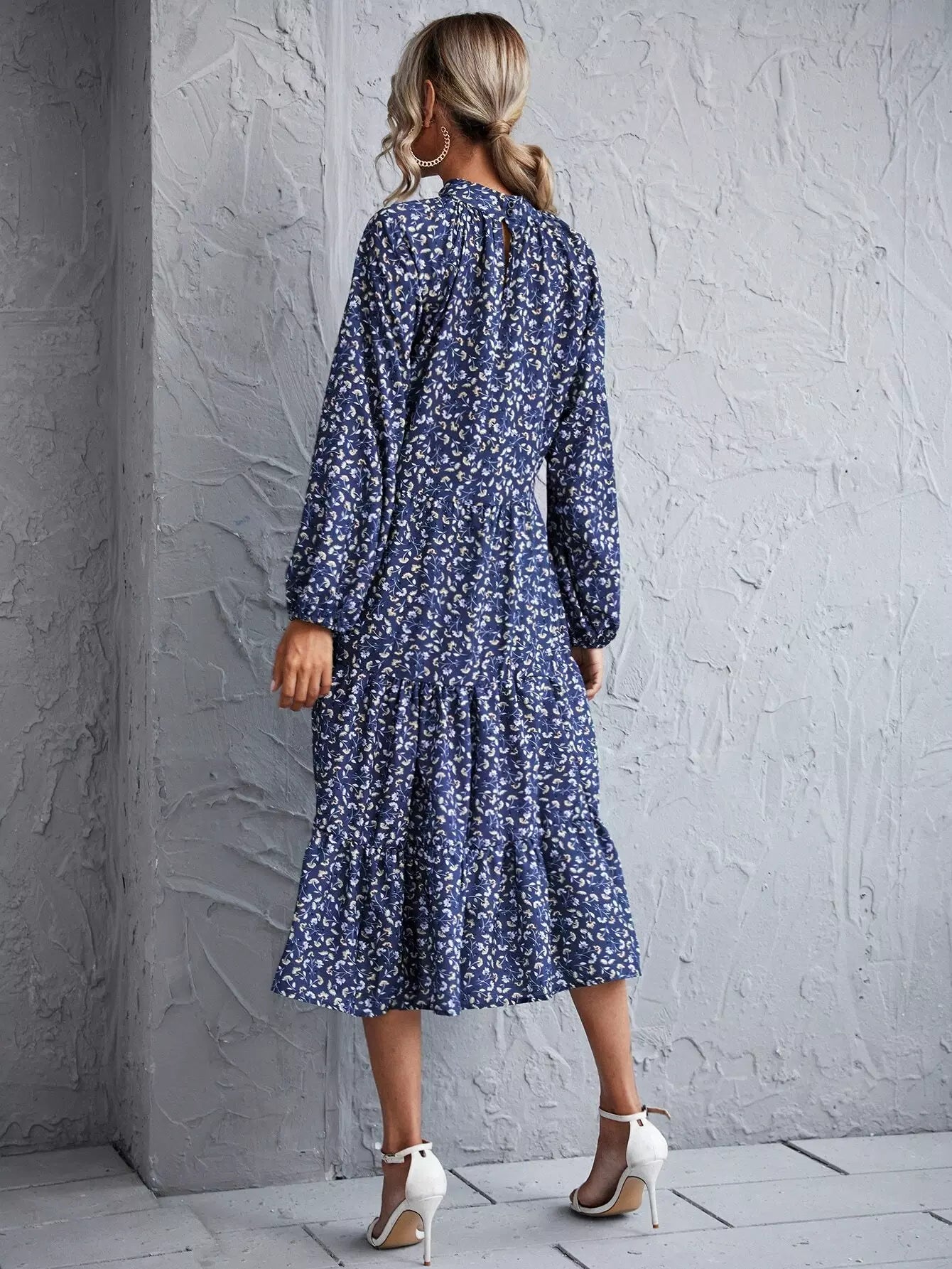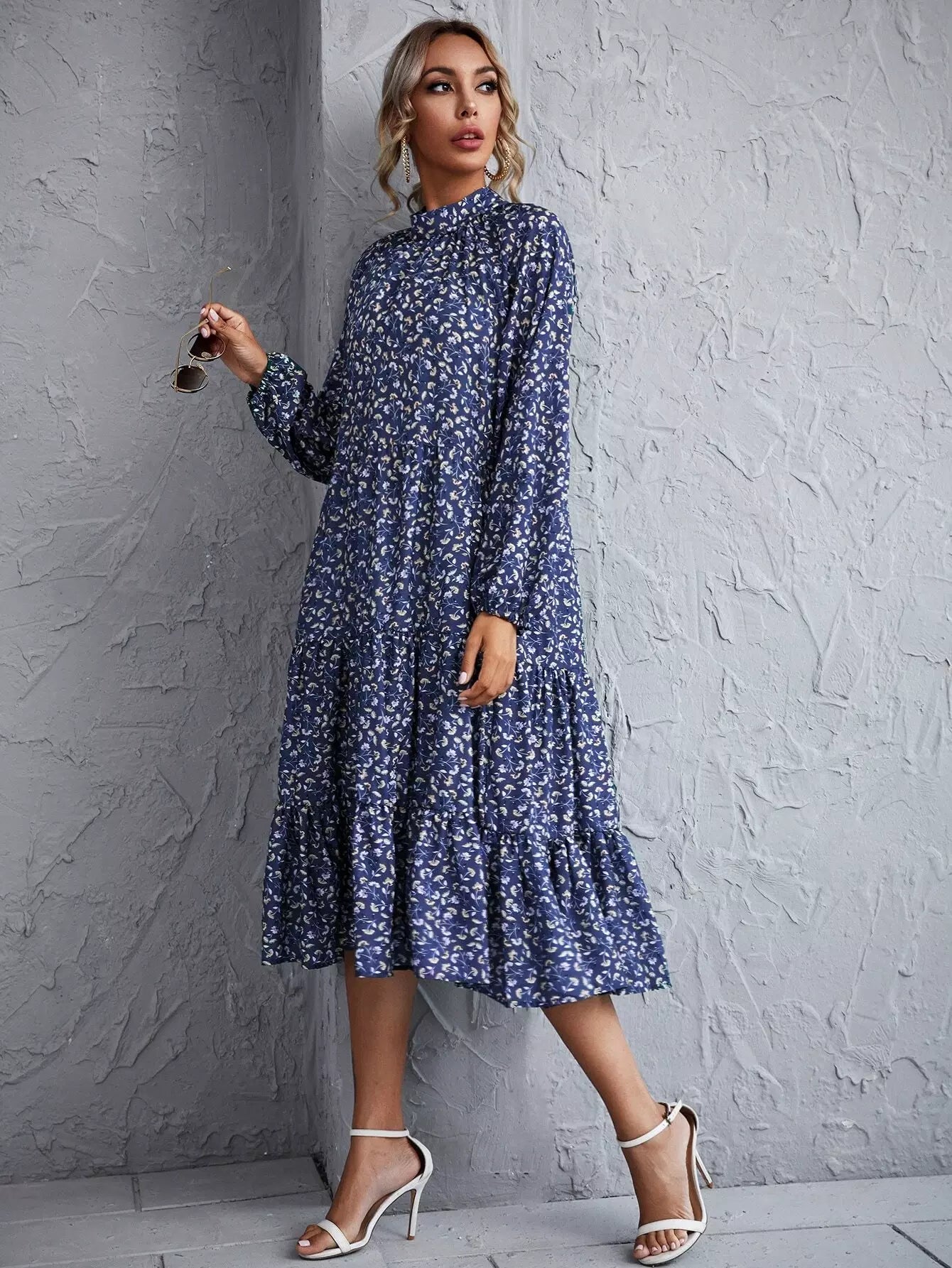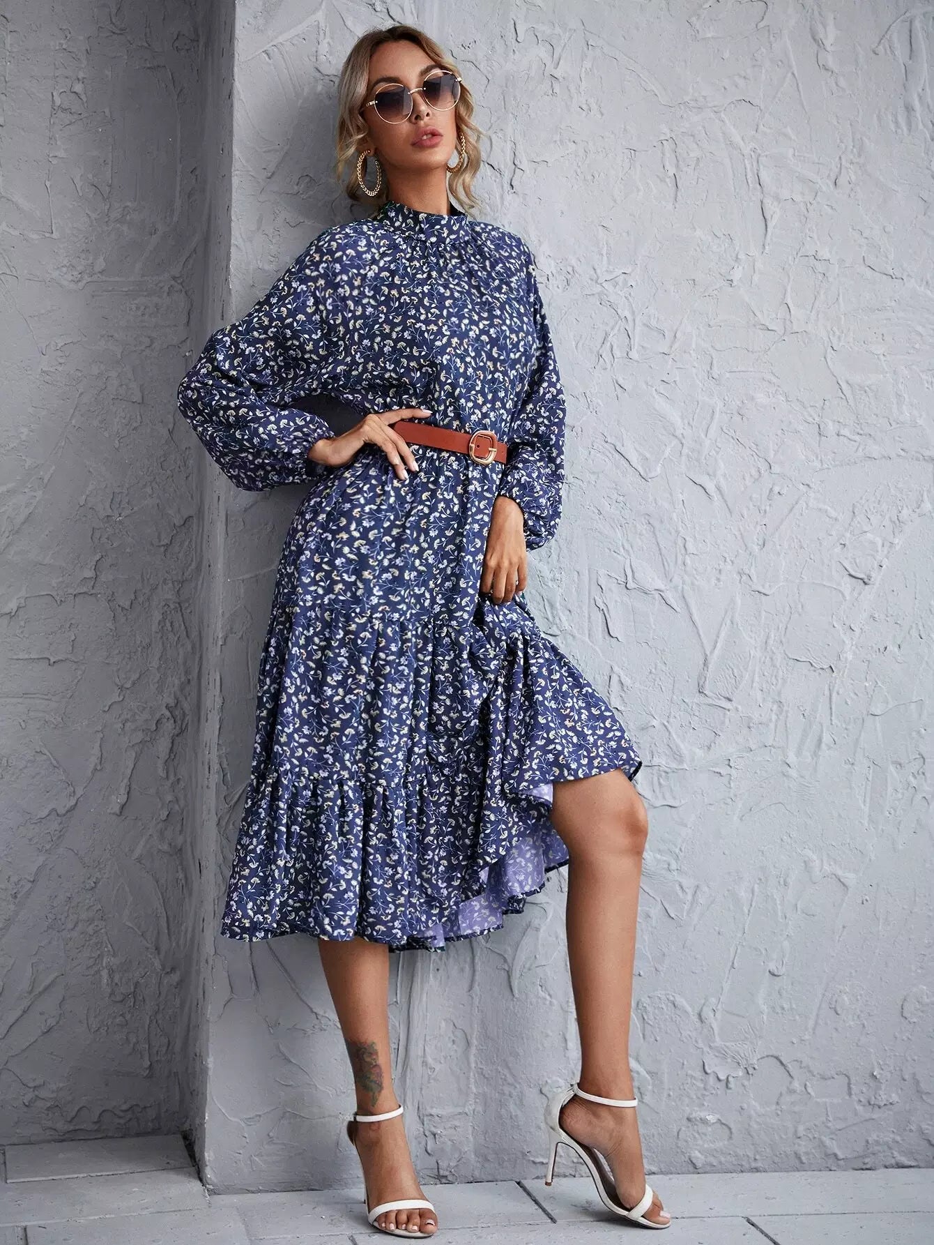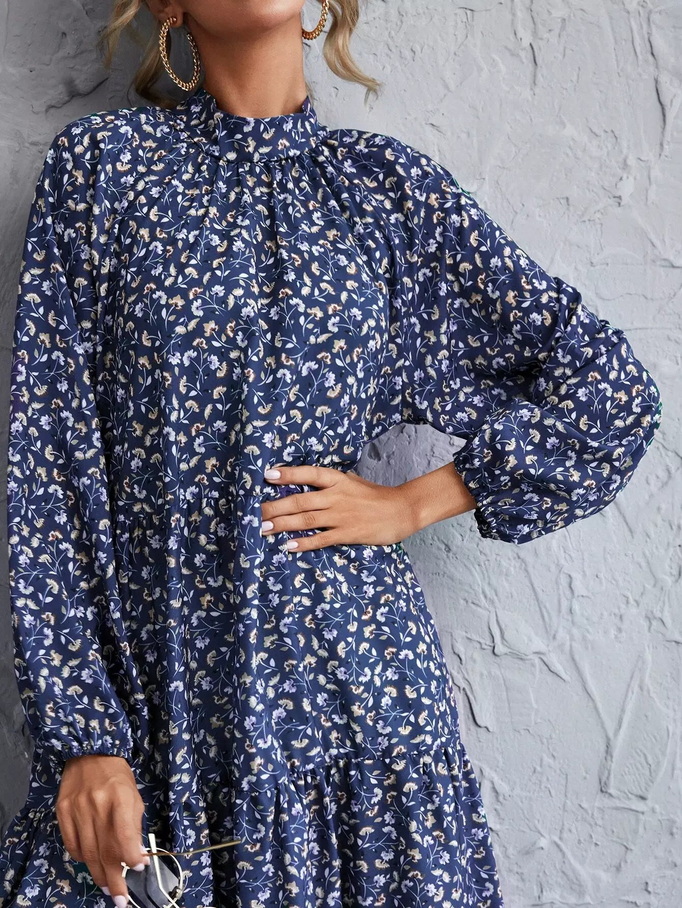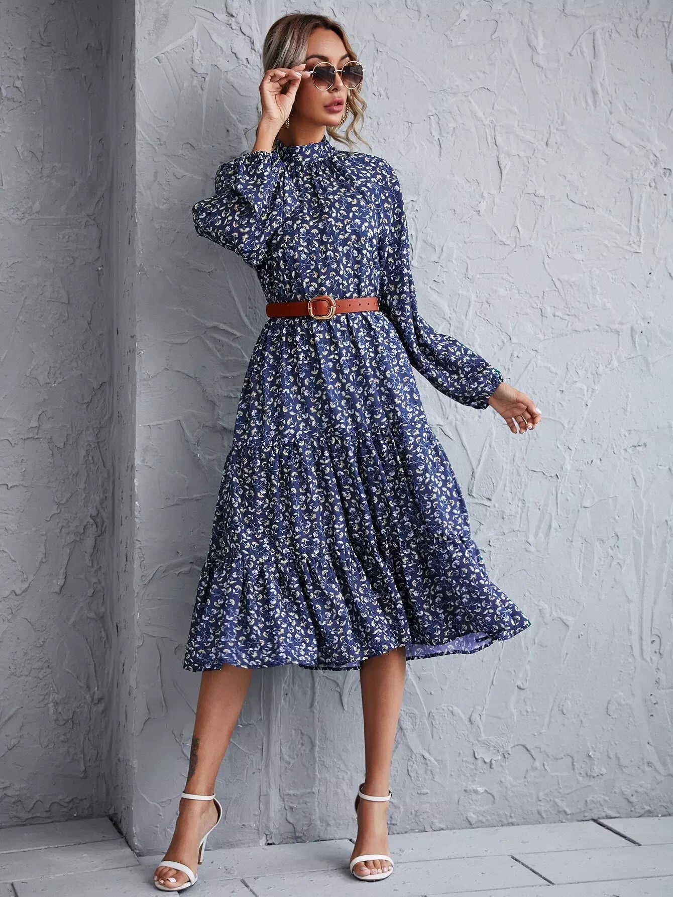 فستان قصير منقوش بالزهور الصغيرة بدون حزام