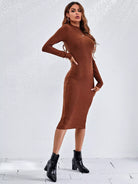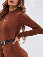 فستان برقبة وهمية محبوك على شكل ضلع محبوك بدون حزام