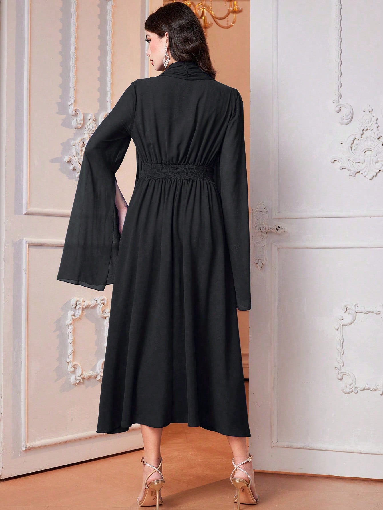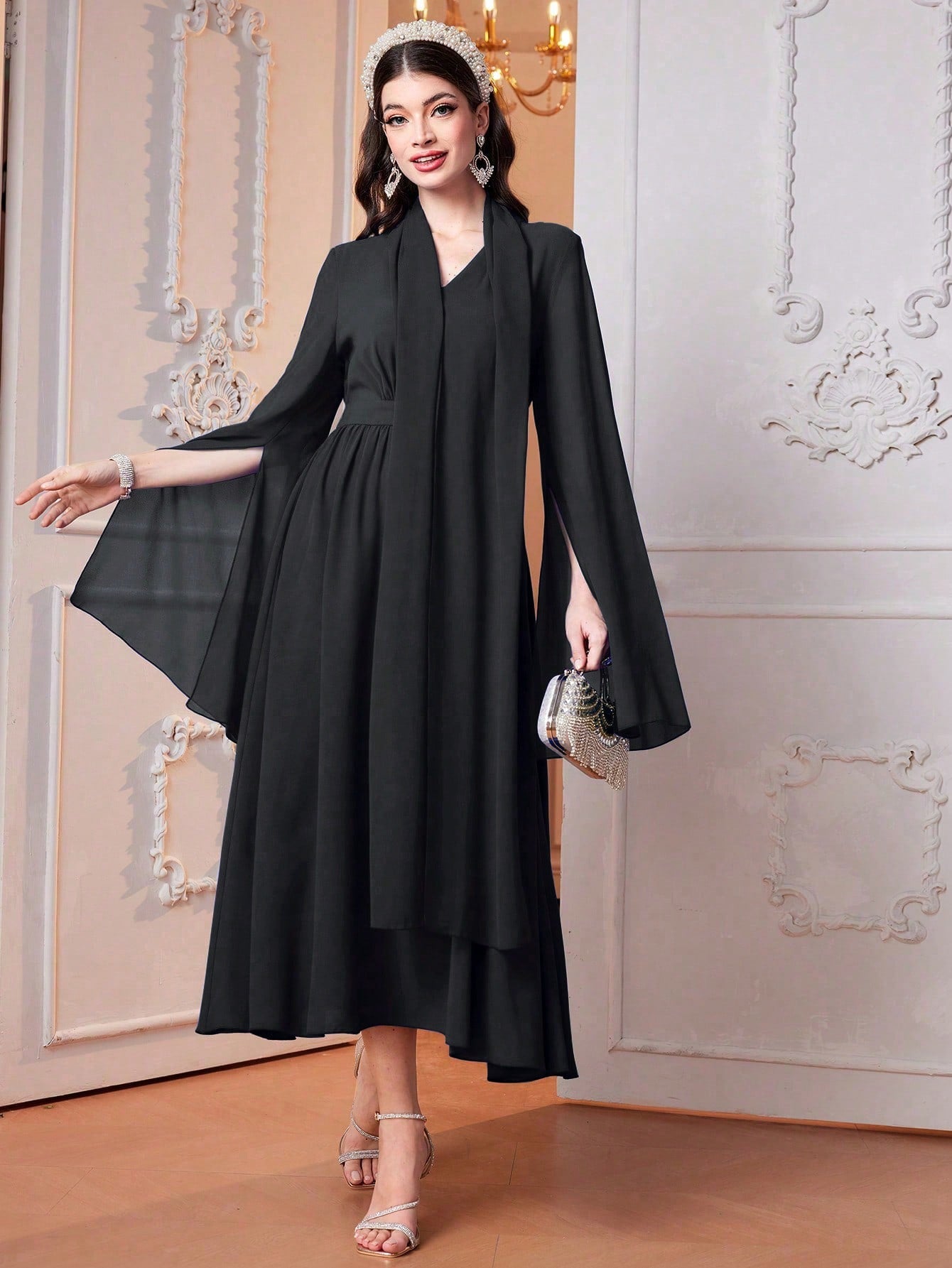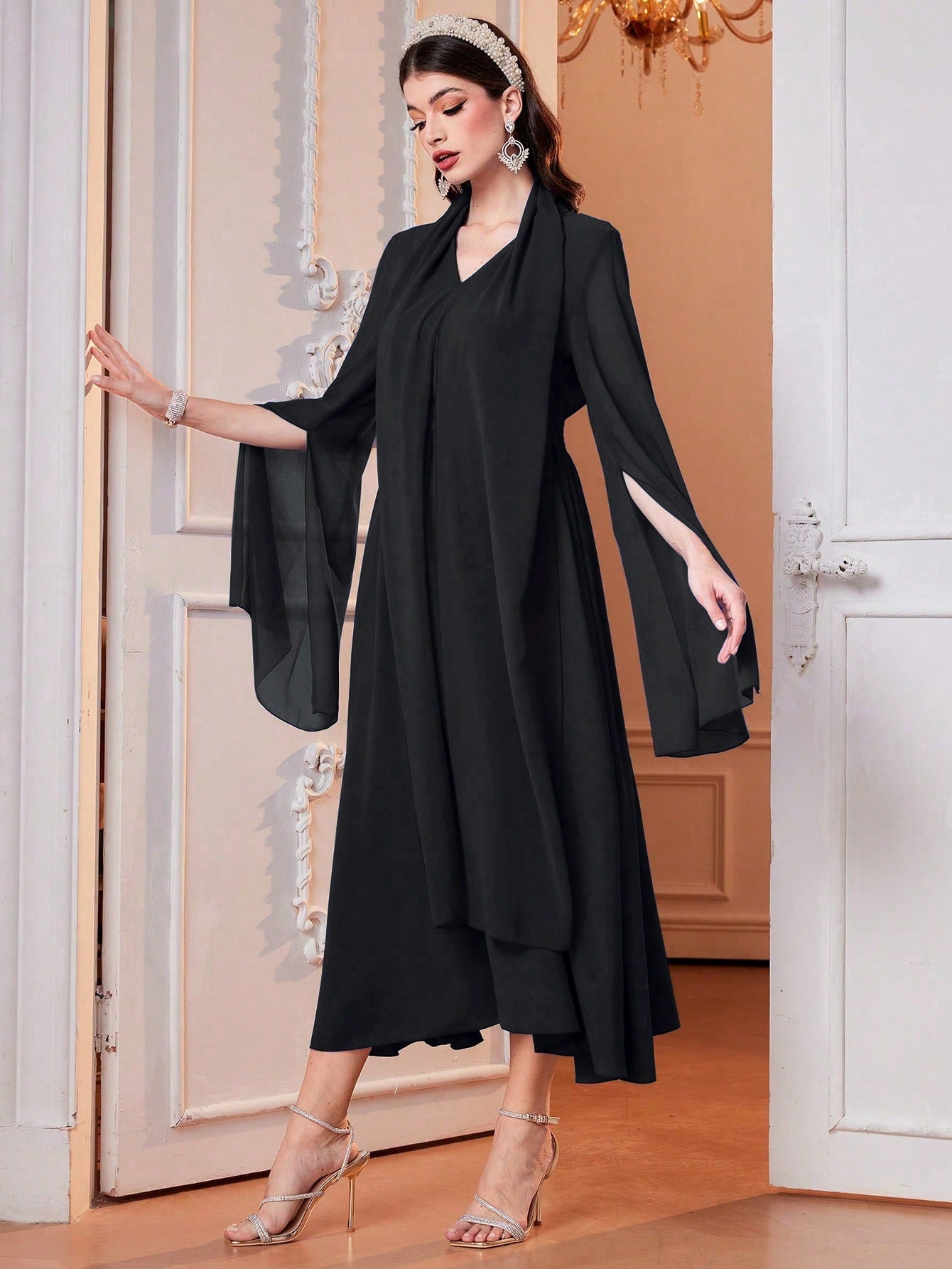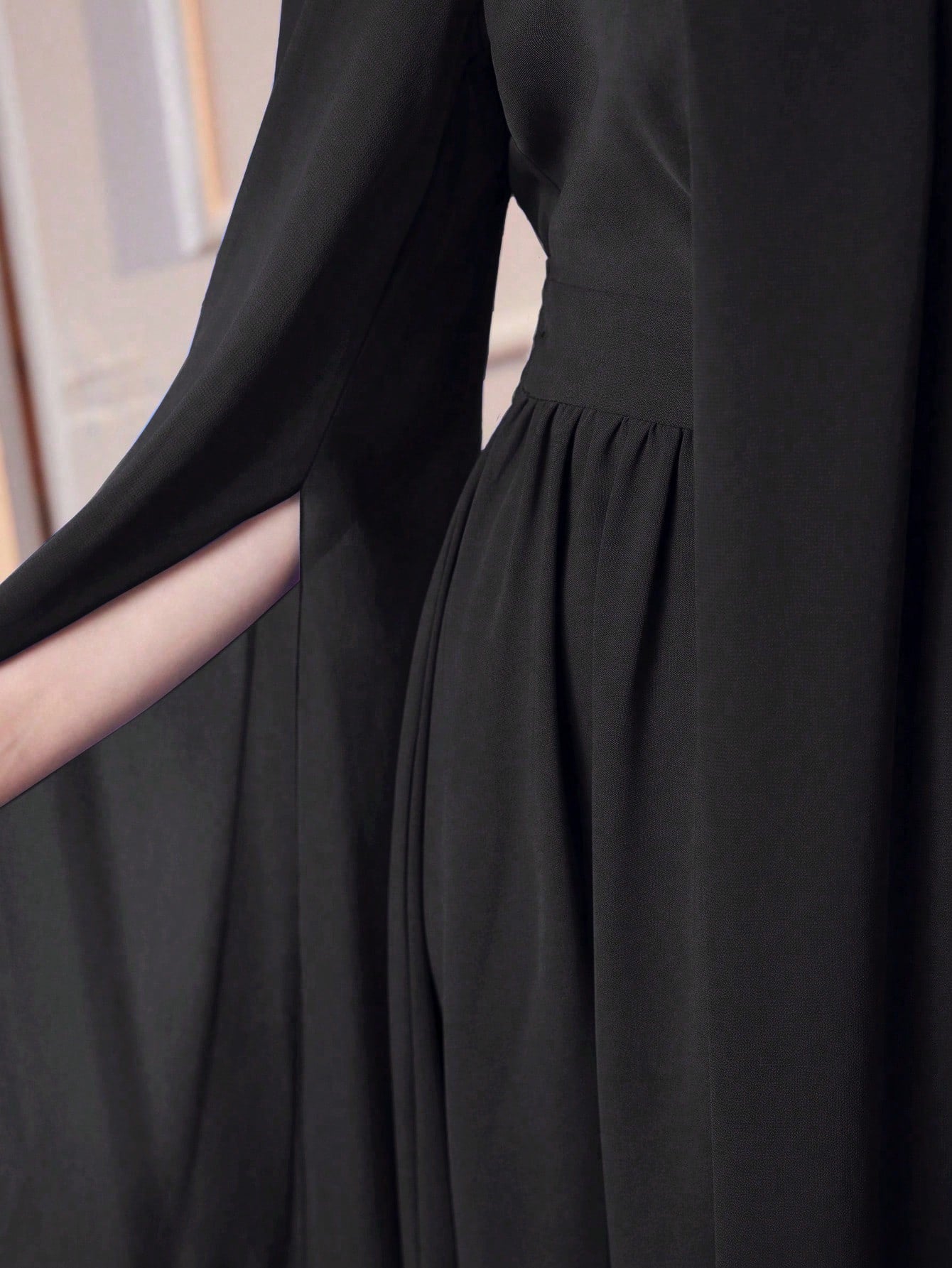 فستان موديلين نسائي بأكمام منقسمة ونمط فضفاض، فساتين سهرة طويلة، قماش خريفي للنساء