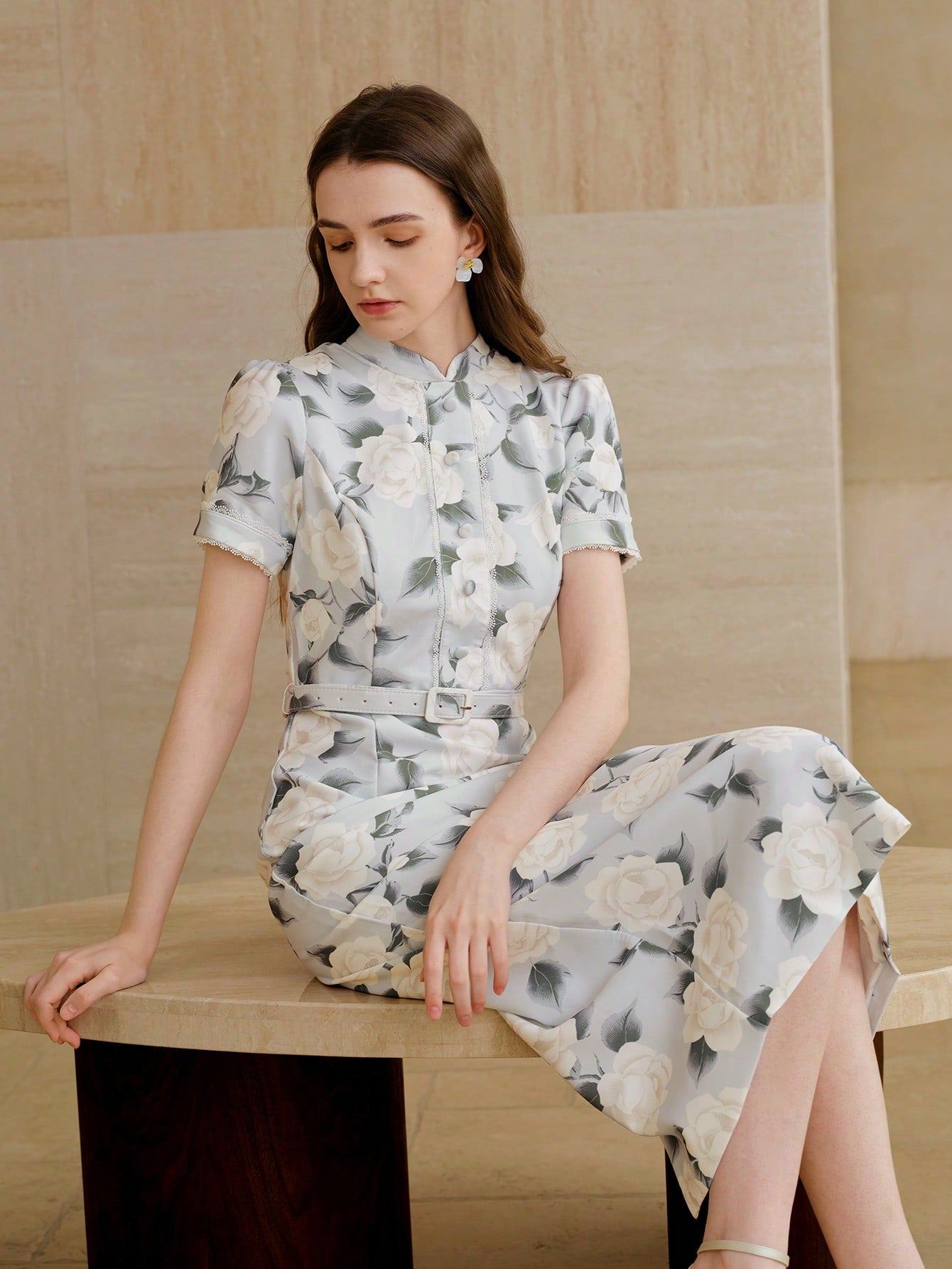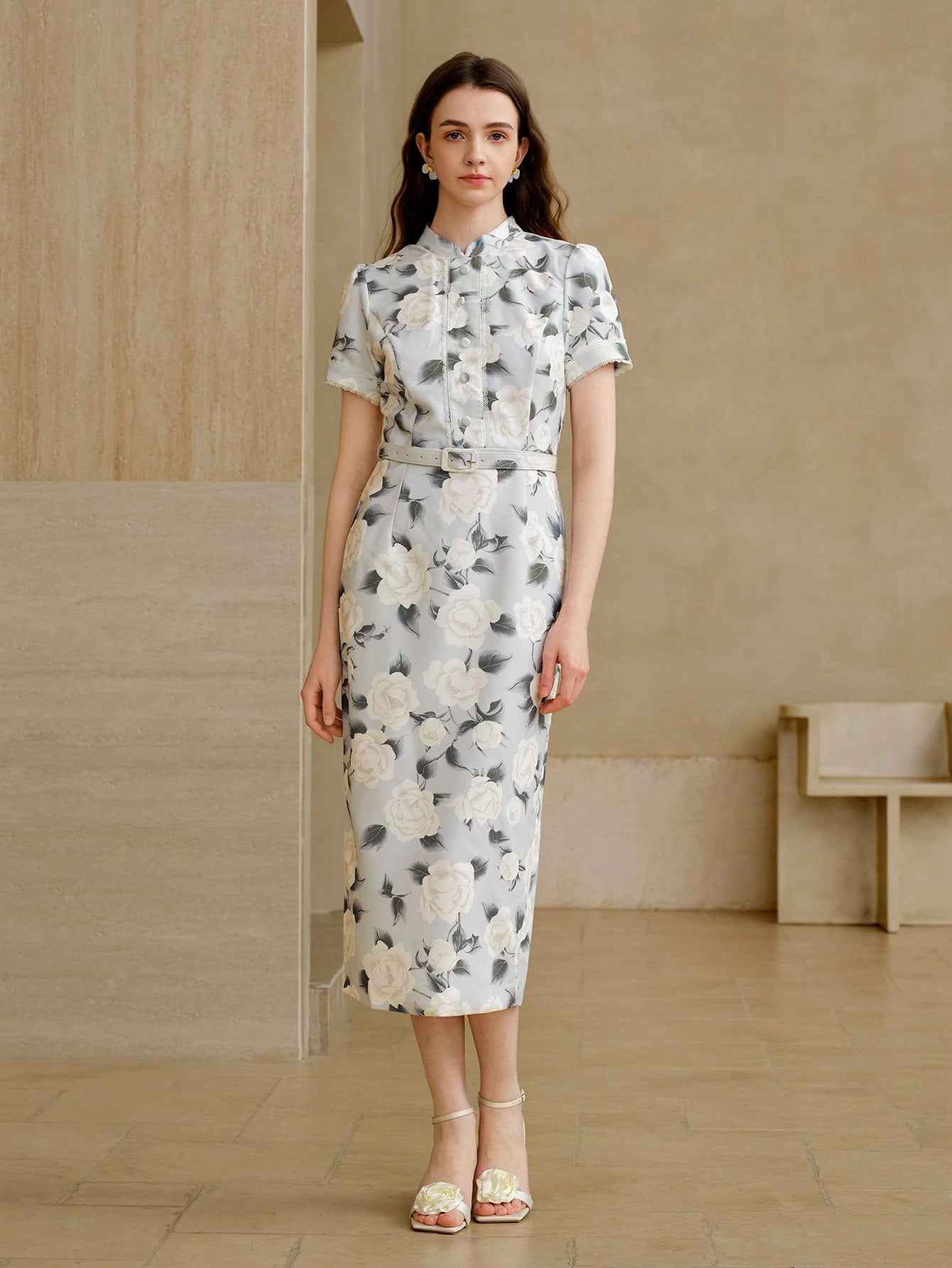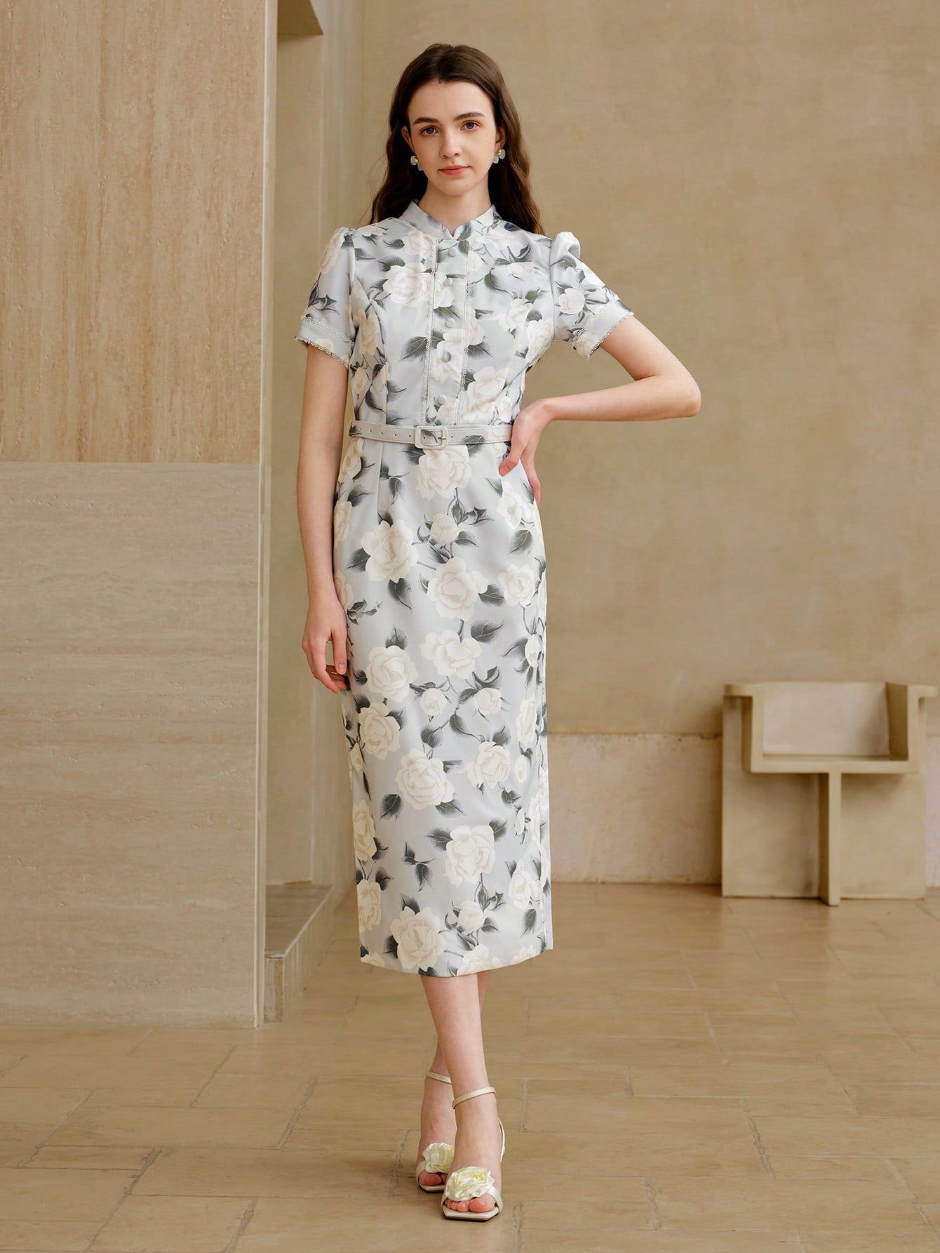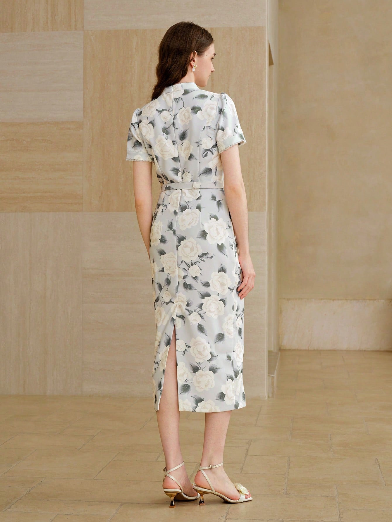 MOTF PREMIUM FLORAL PRINT SPLIT HEM DRESS