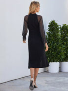 فستان بفتحة رقبة مشقوقة عند الفخذين بدون حقيبة