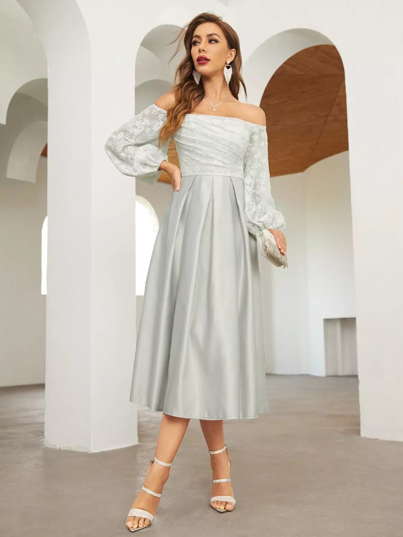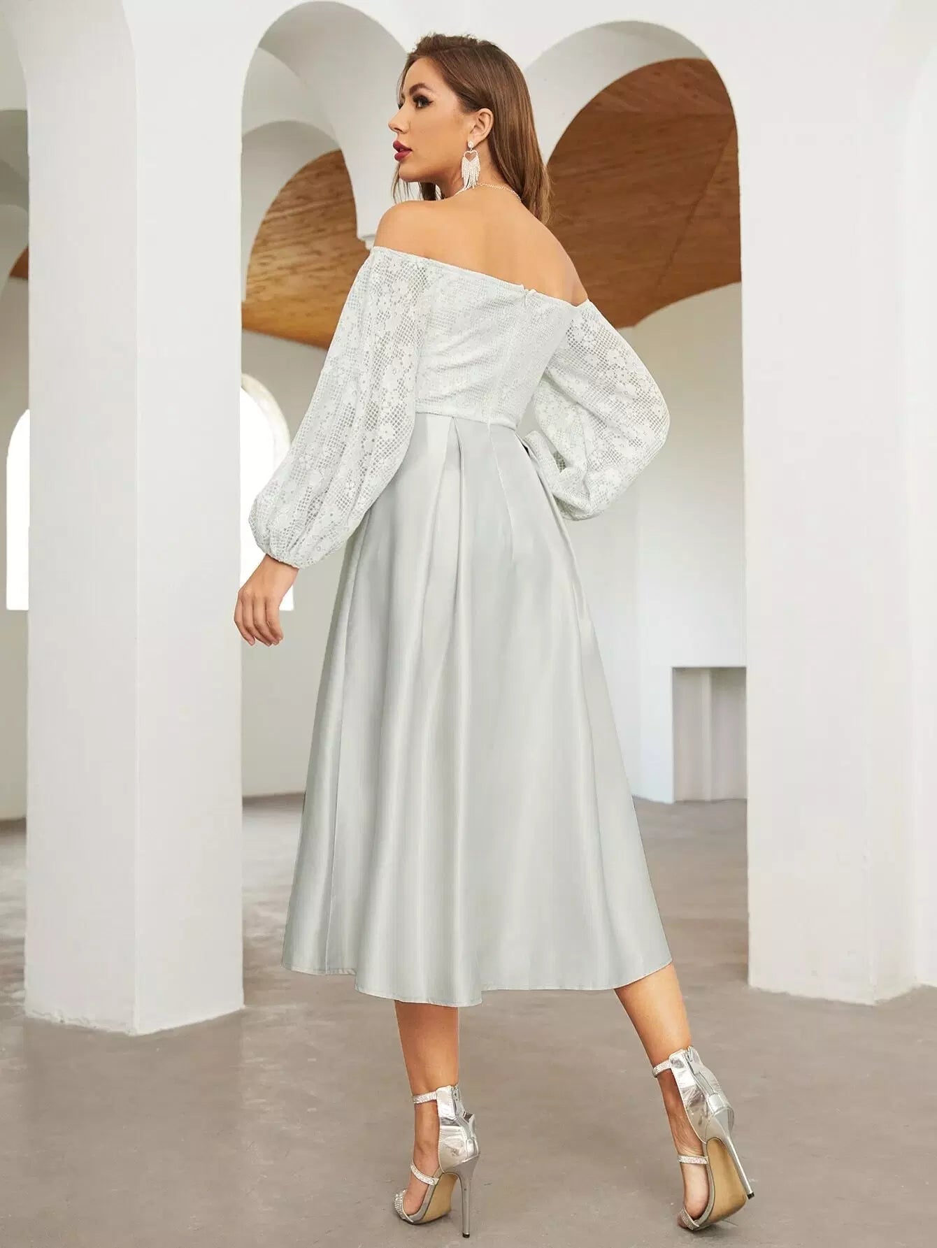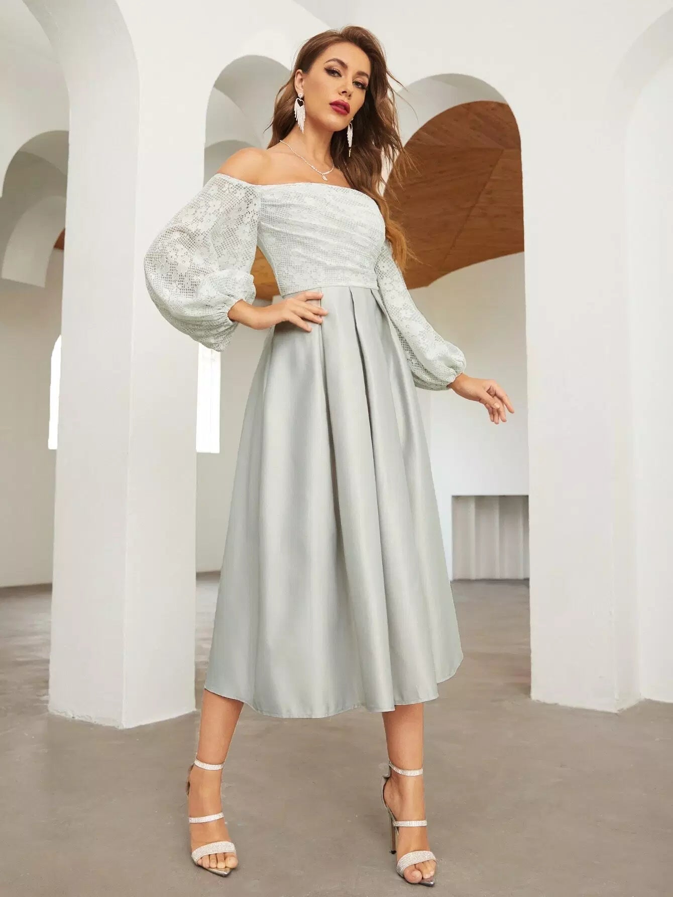 فستان بأكمام من الدانتيل من الدانتيل بدون أكتاف بأكمام من الدانتيل