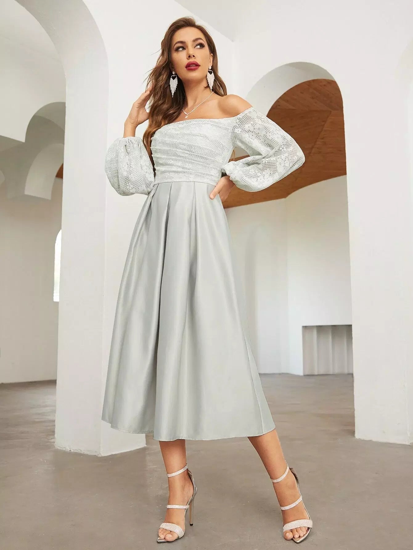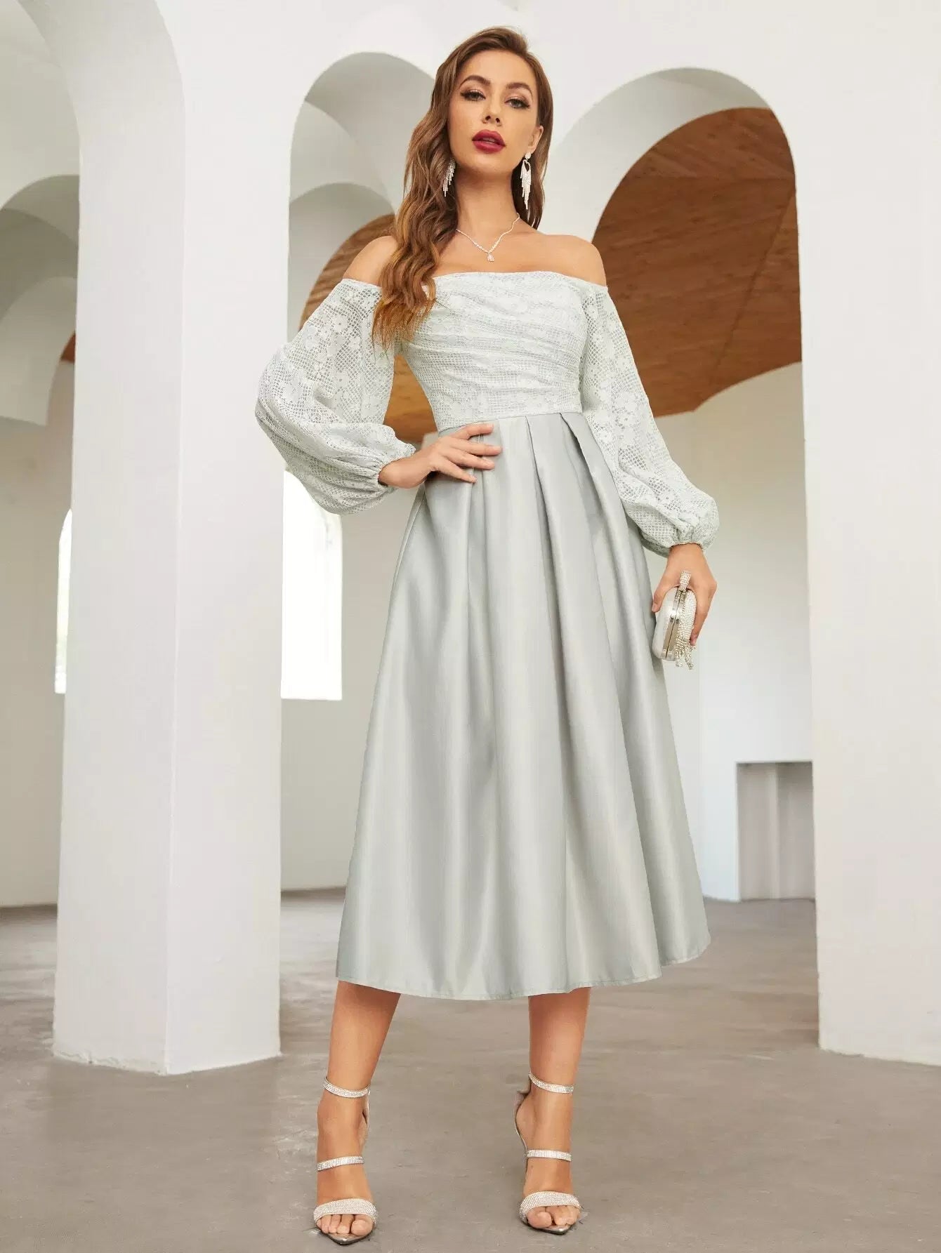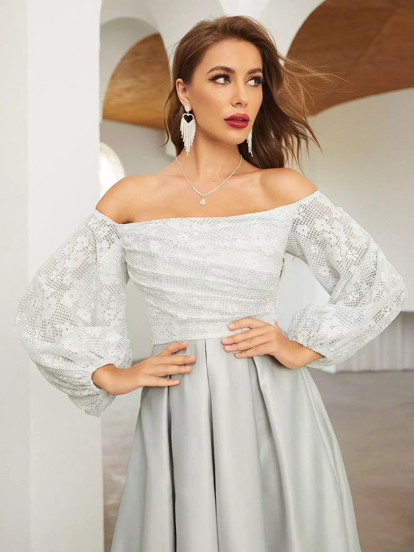 فستان بأكمام من الدانتيل من الدانتيل بدون أكتاف بأكمام من الدانتيل