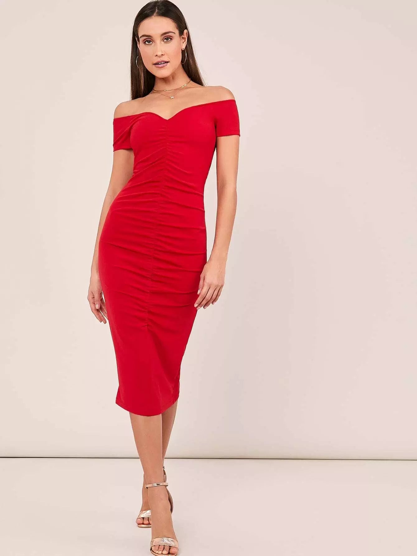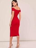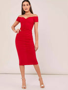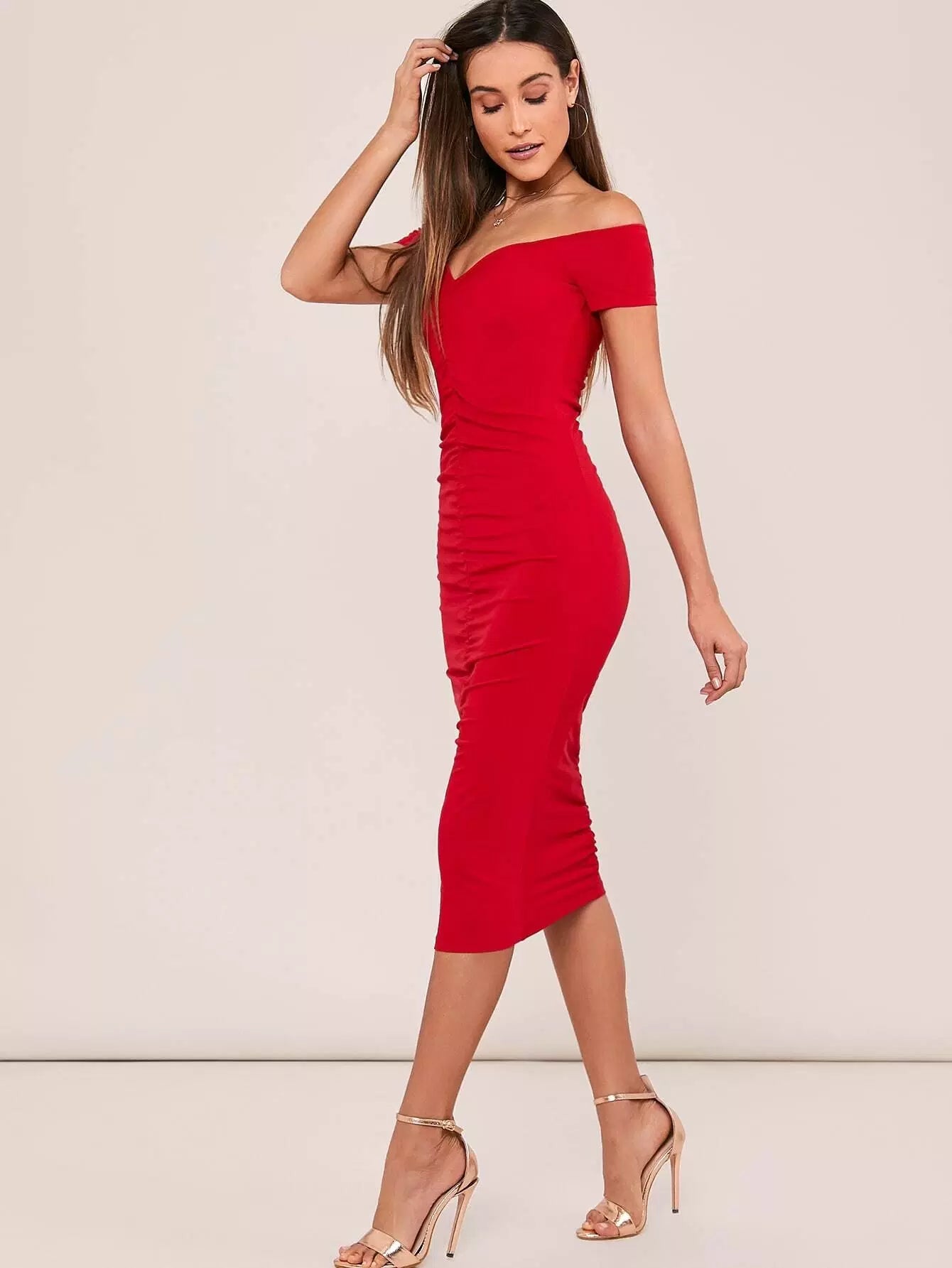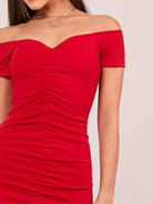 فستان مكشوف الأكتاف مكشكش من الأمام