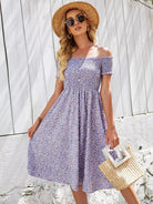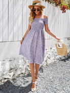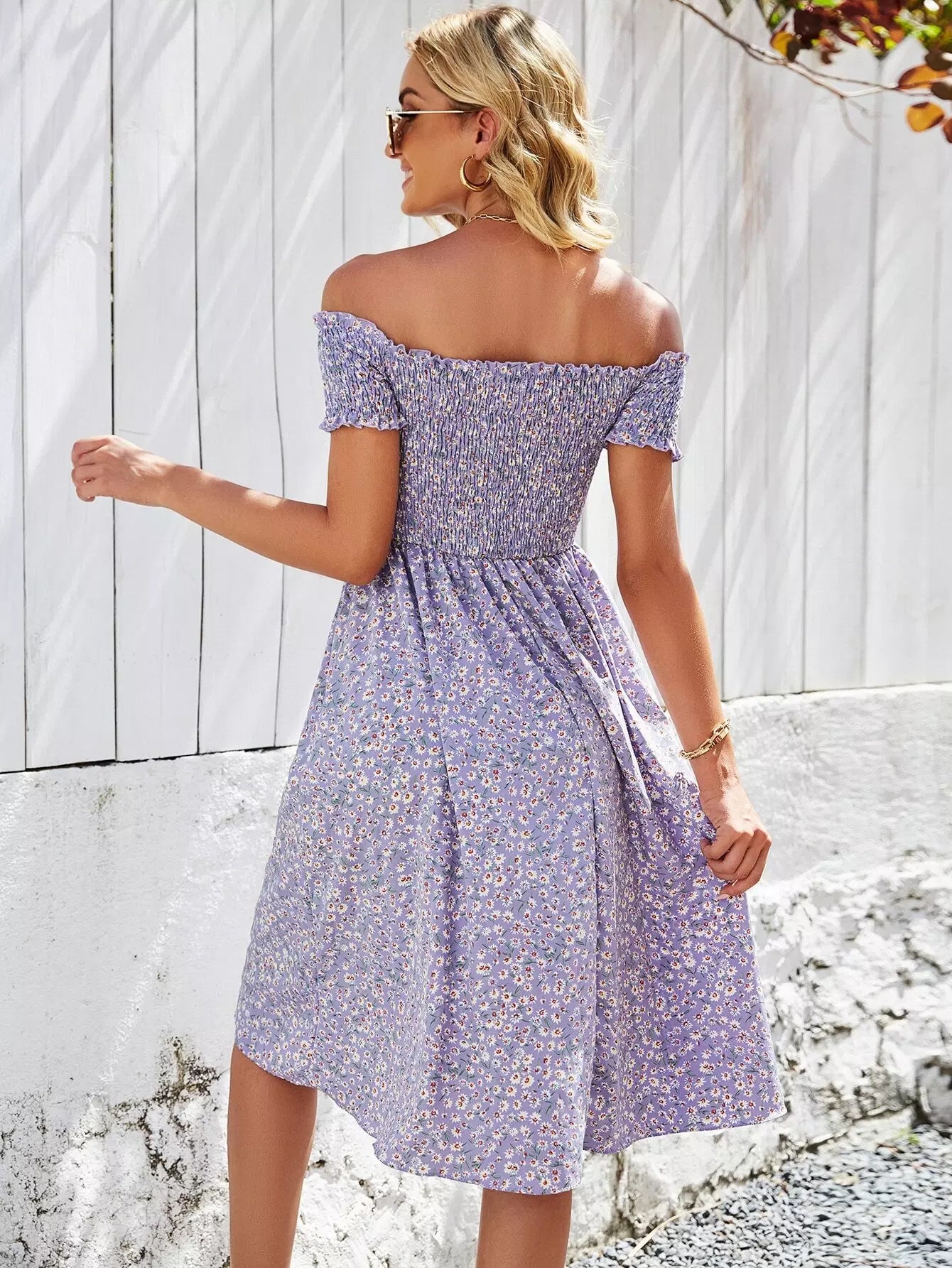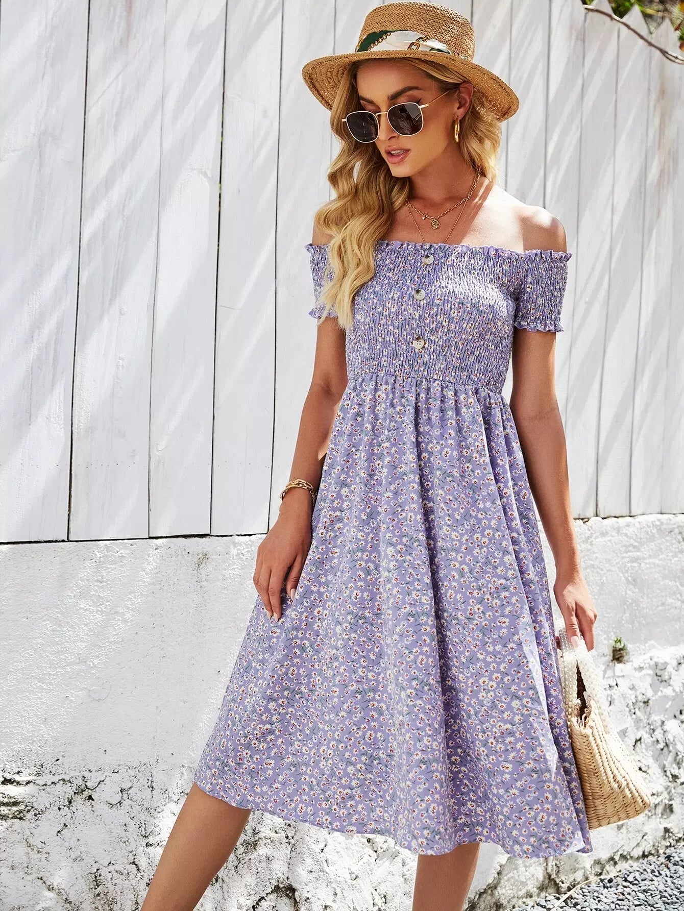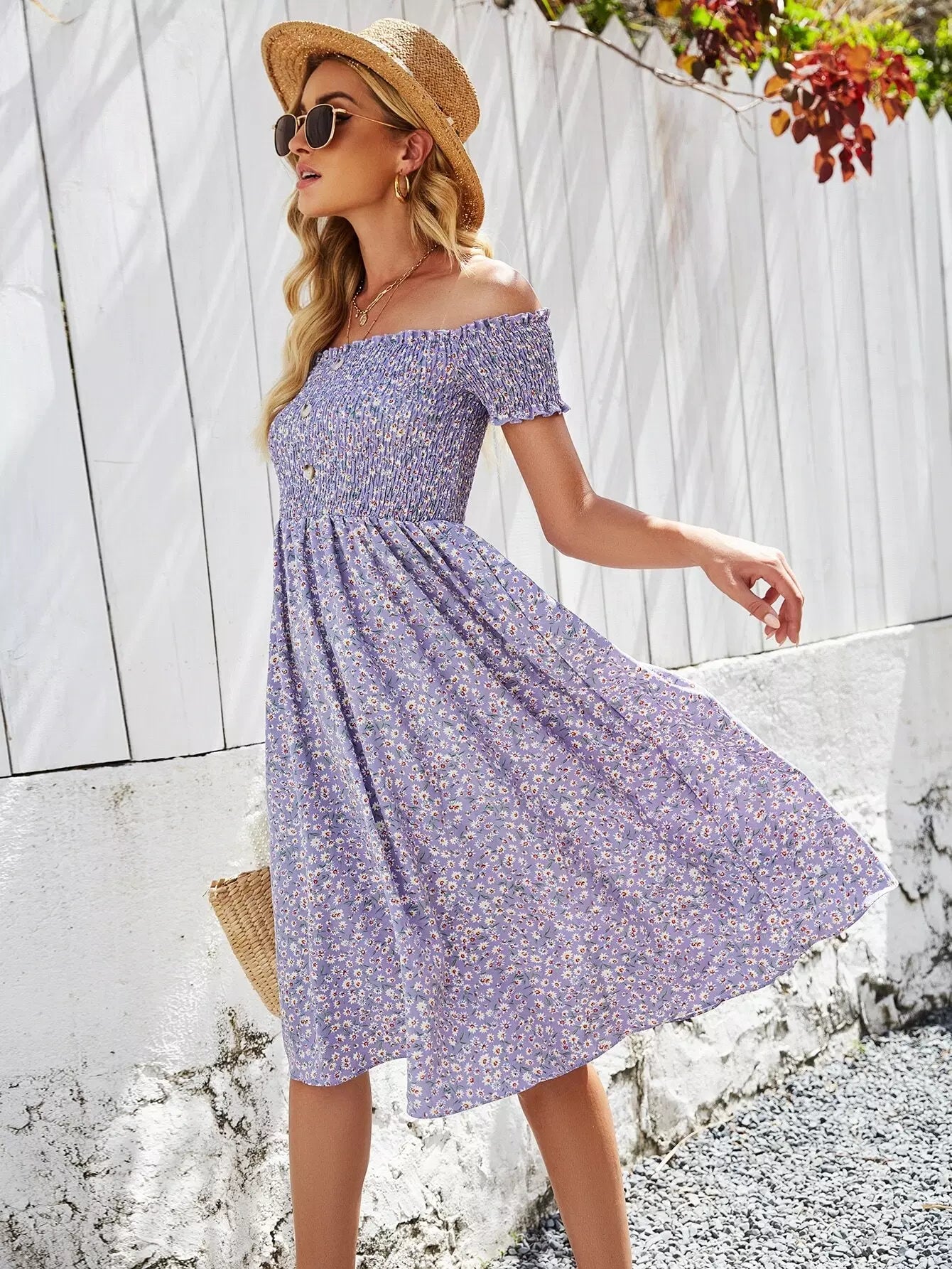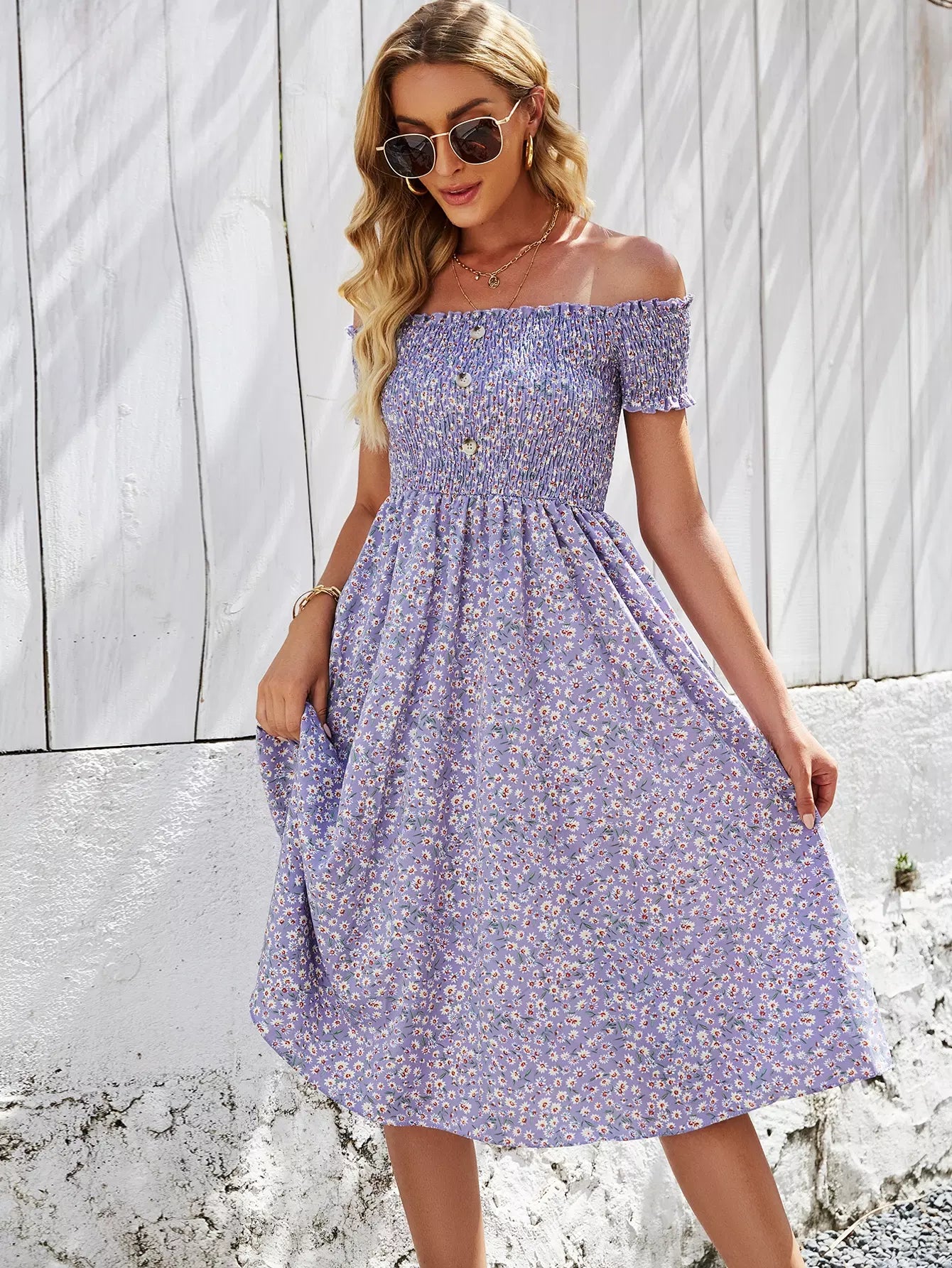 فستان مكشوف الأكتاف مزين بطبعات زهور ديتسي