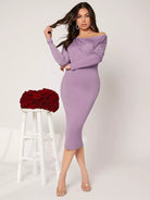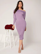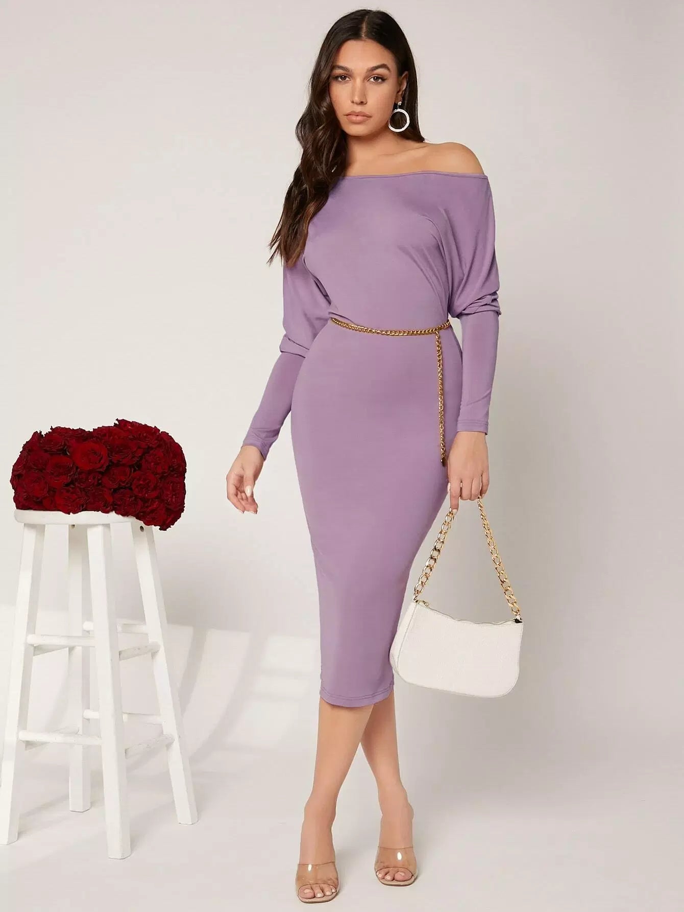 فستان بأكمام كتف واحد بأكمام باتوينغ بدون حزام