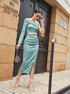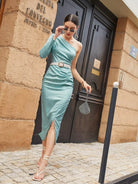 فستان بحافة منقسمة على كتف واحد من دون حزام