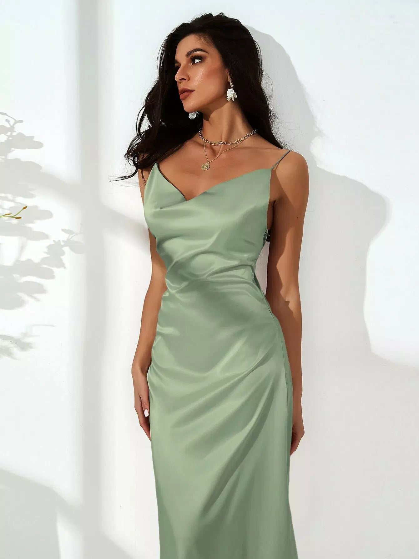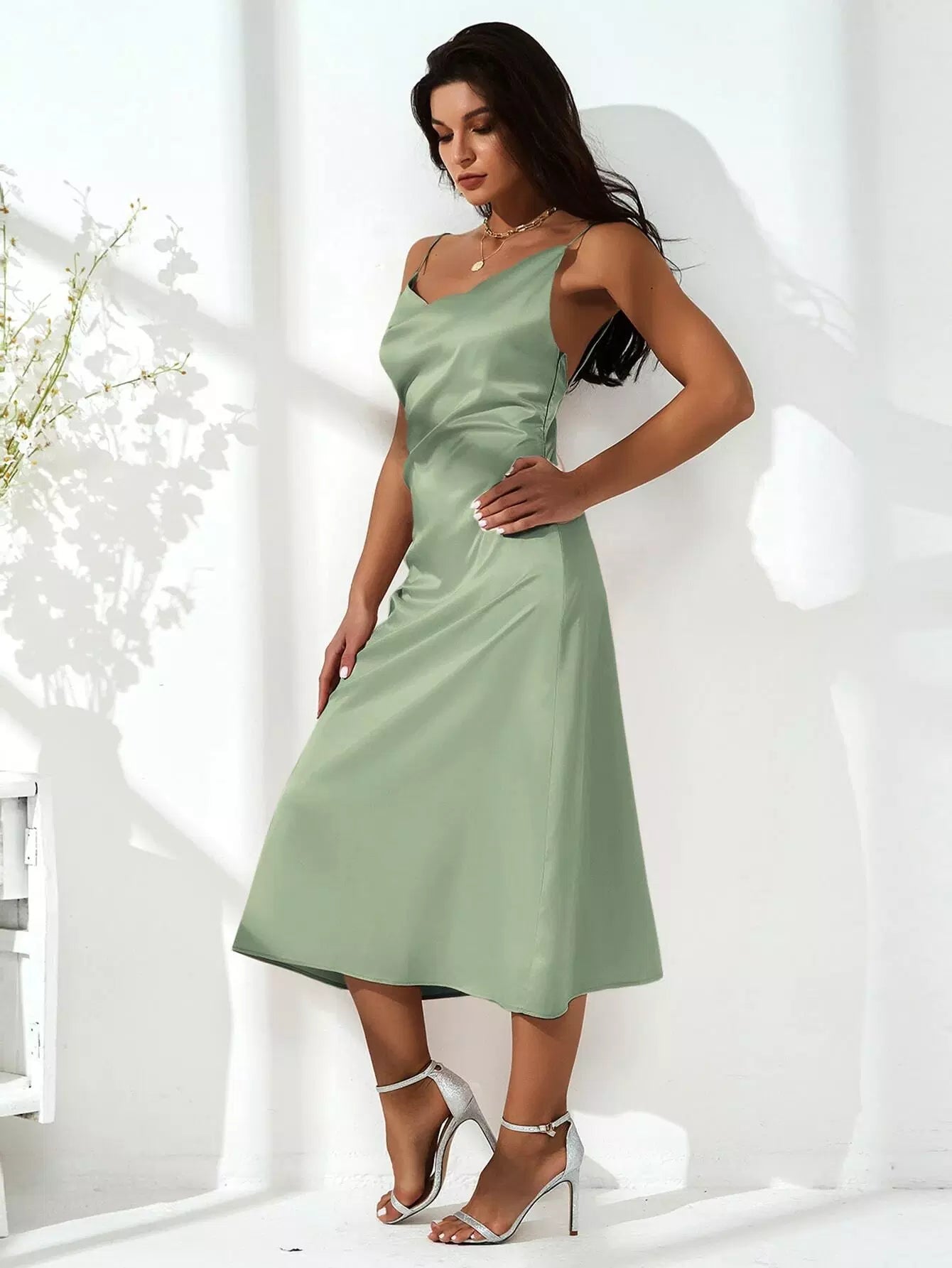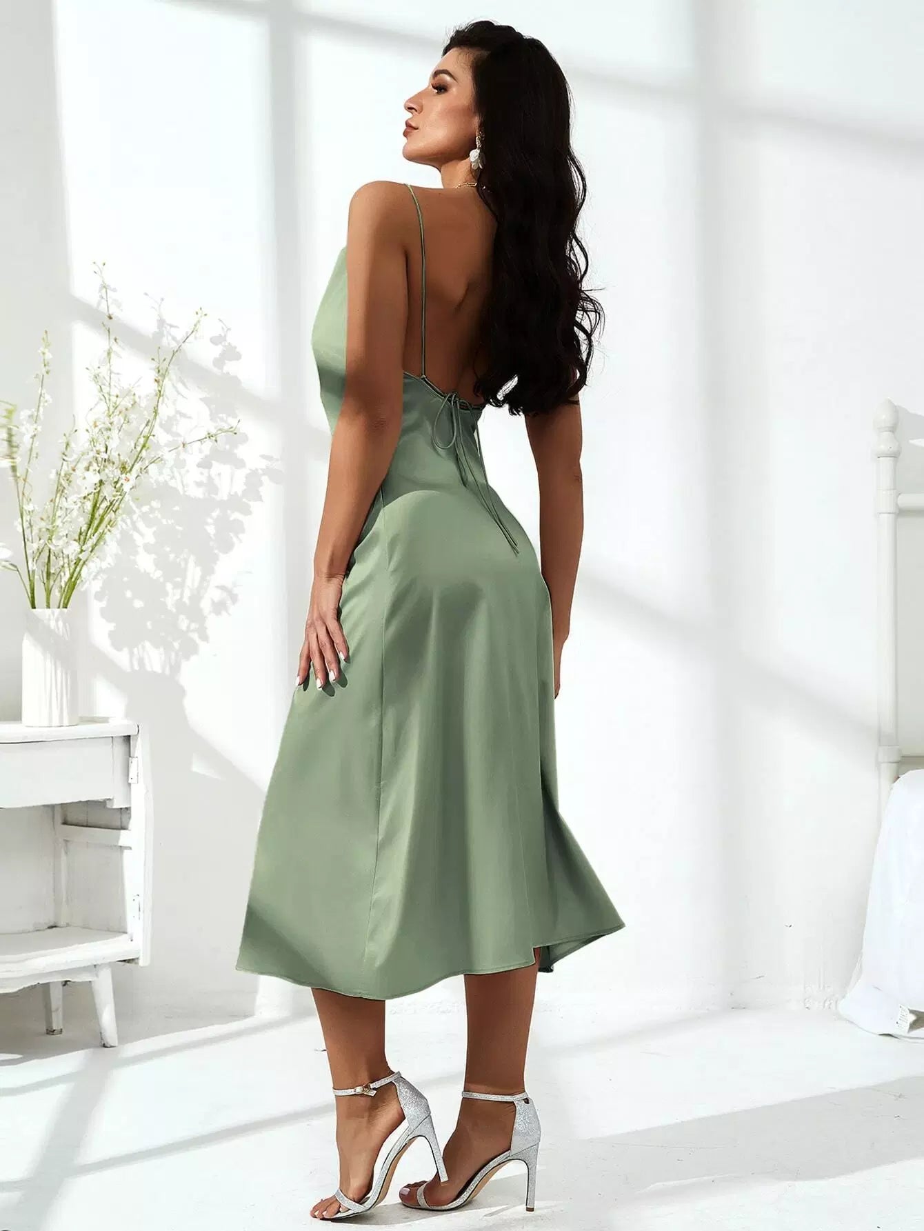 فستان ساتان كامي مفتوح الظهر من الساتان