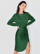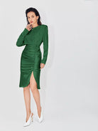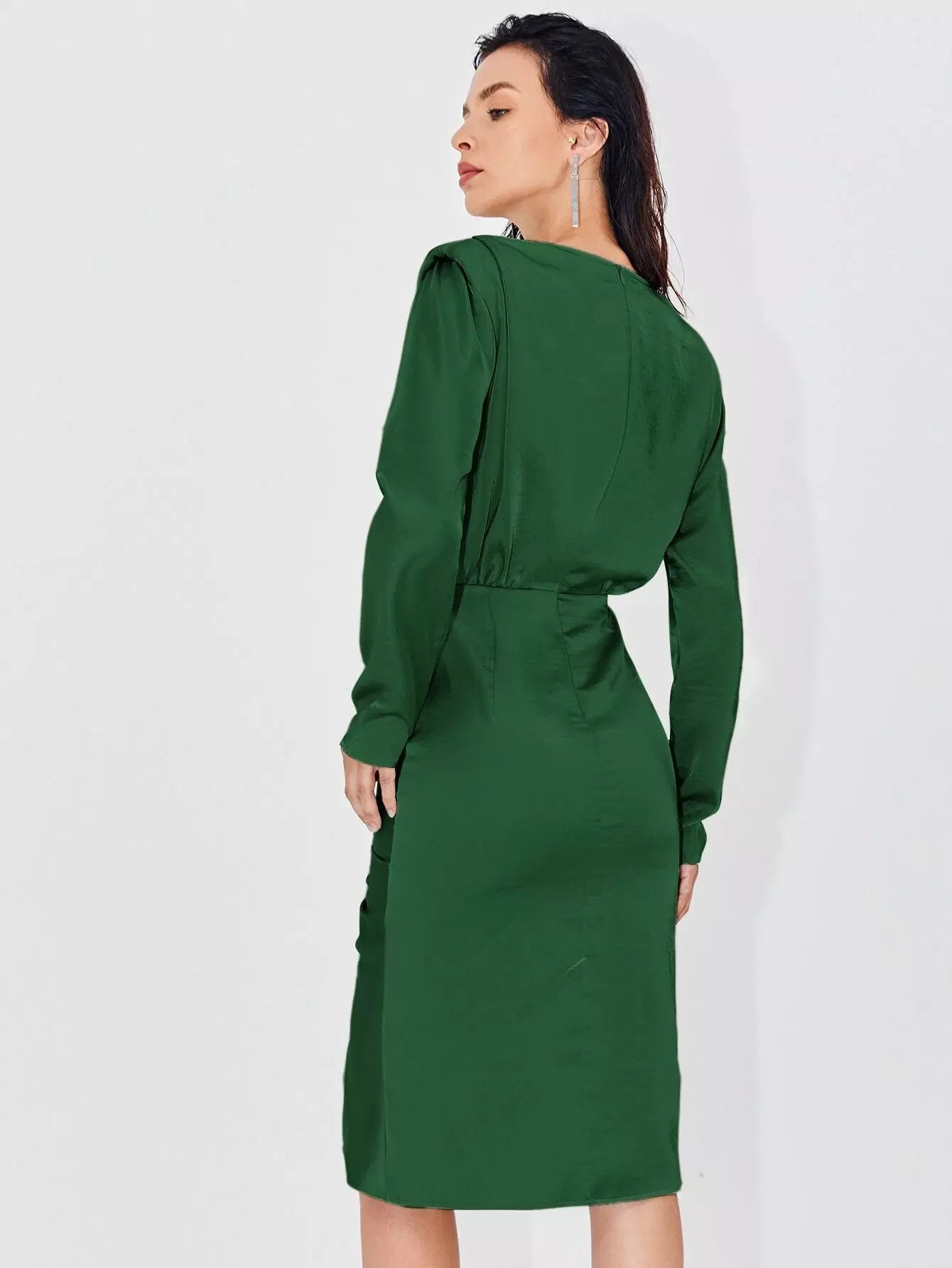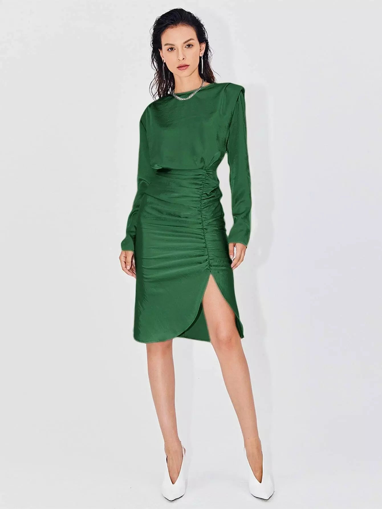 فستان مبطن الكتفين ومكشكش عند الفخذ