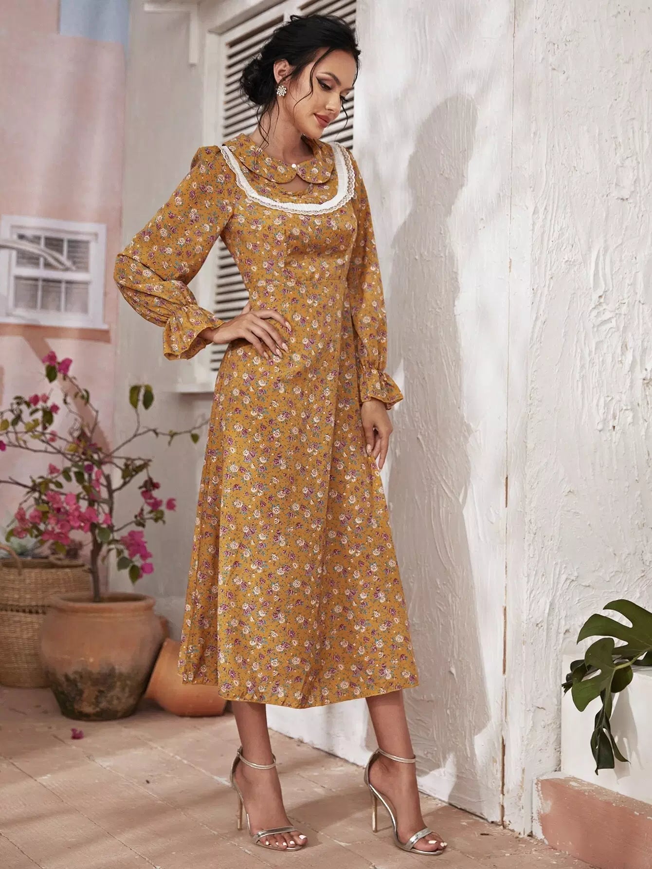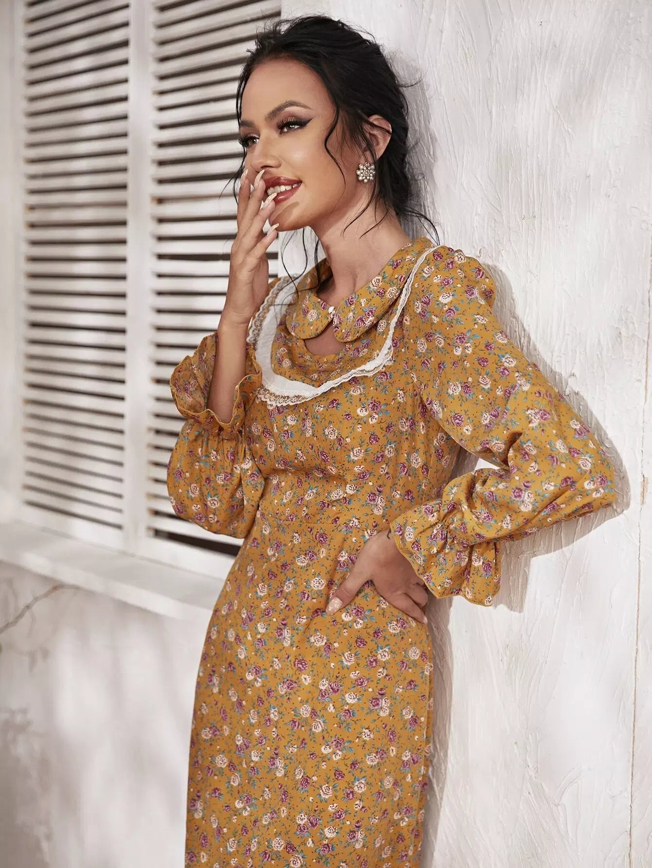 فستان بياقة بيتر بان بياقة بيتر بان مزين بزخارف من الدانتيل