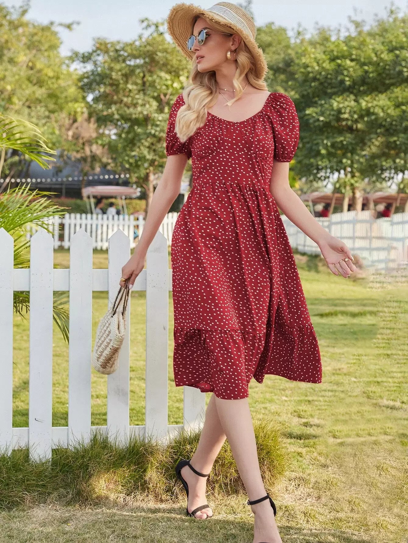 فستان منقّط من الكشكش بحافة كشكش على شكل حرف A