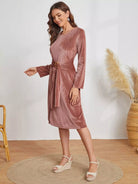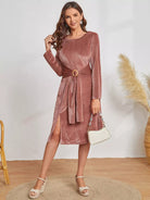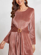 فستان مخملي بفتحة عند الفخذ وحلقات متصلة